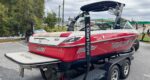 The 2008 Malibu 21 VLX is a 21-foot towboat known for its clean, well-shaped wakes for wakeboarding and wakesurfing. It features the patented Power Wedge and a ballast system to customize the wake. Powered by a Malibu Monsoon engine, the boat offers a spacious interior with seating for 11 and an open bow. The 21 VLX is a great option for riders of all skill levels.
