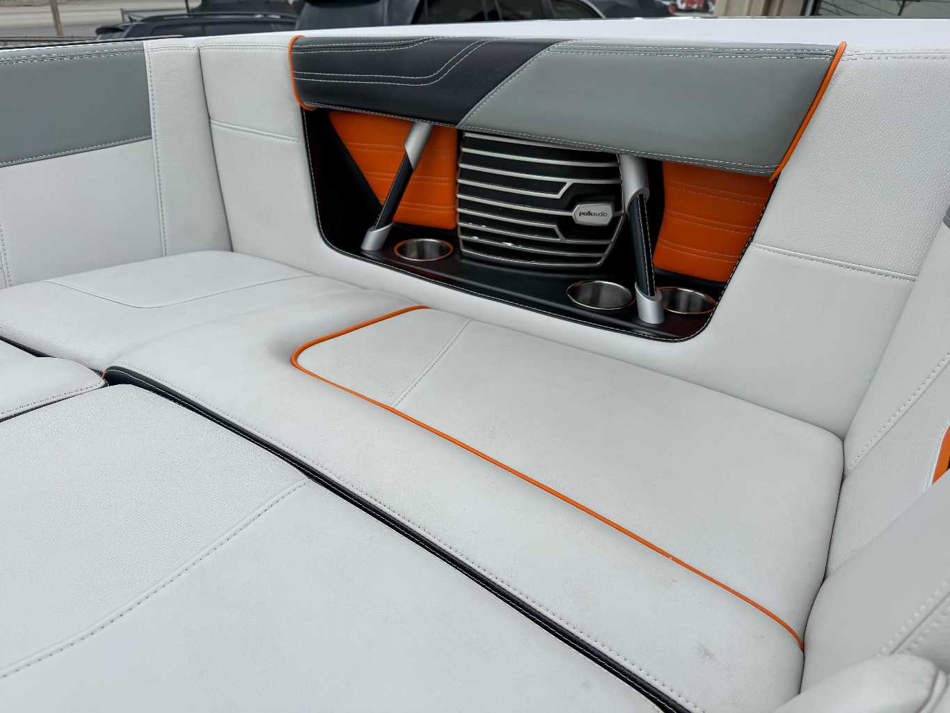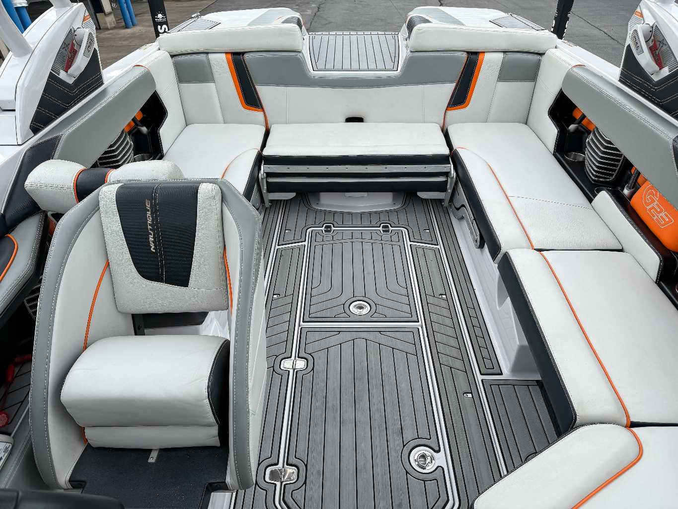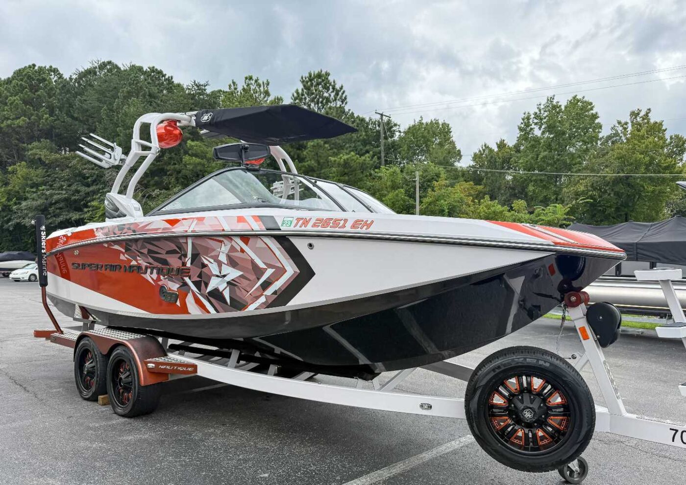 The 2015 Nautique G23 is a 23-foot flagship wakeboard and wakesurf boat renowned for its powerful performance and massive, customizable waves. Key features include the Nautique Surf System (NSS) with Waveplate technology and an integrated sub-floor ballast system (2,850 lbs) for effortless wake shaping. It offers a spacious, premium interior with seating for 16, a LINC touchscreen helm control center, and an upgraded JL audio system, making it a luxurious and high-performing option for watersports enthusia