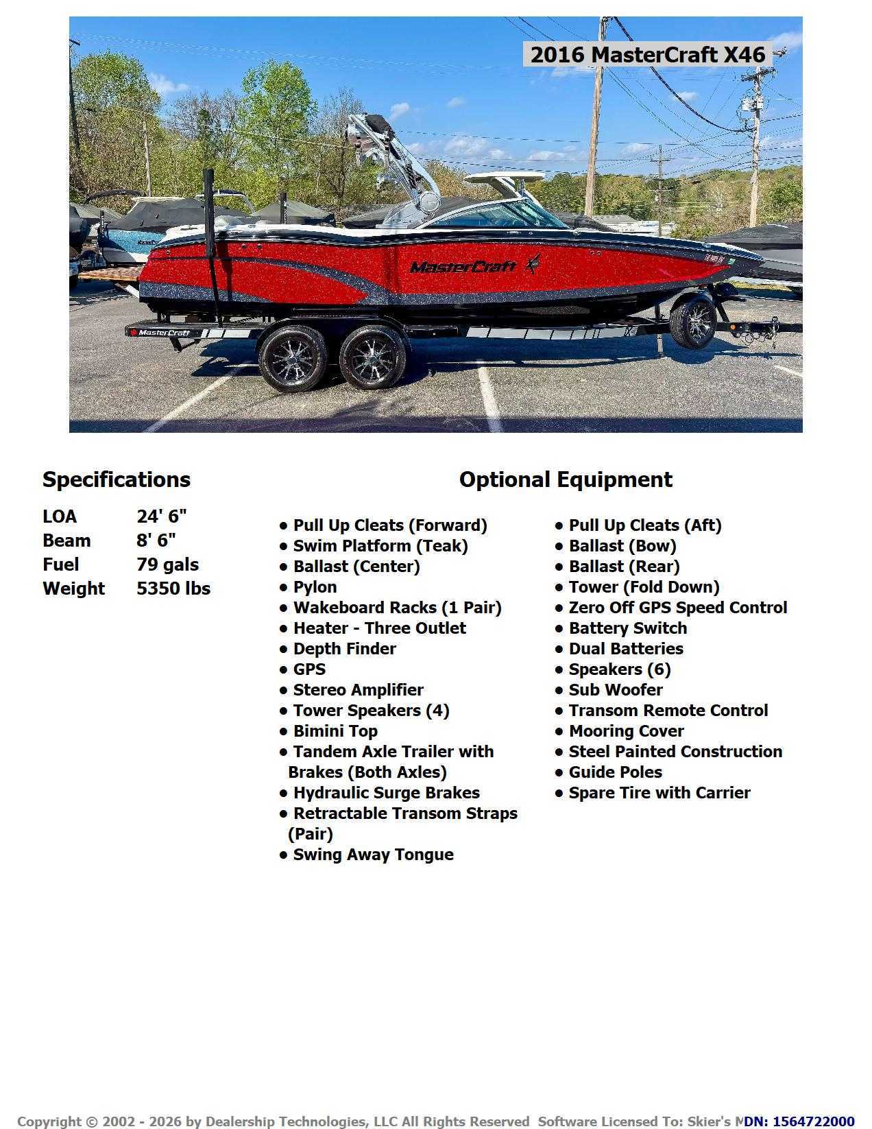 he 2016 MasterCraft X46 is a top-tier choice for families seeking a 24.5-foot, high-performance wakeboat. It comfortably seats 15 people, making it perfect for large groups. It features the Gen 2 Surf System for incredible wakesurf waves. Known for its robust Ilmor engine, superior build quality, and immense storage, it blends luxury with functionality. It handles rough water well while offering a spacious, user-friendly layout. Its an ideal, versatile "do-it-all" boat.