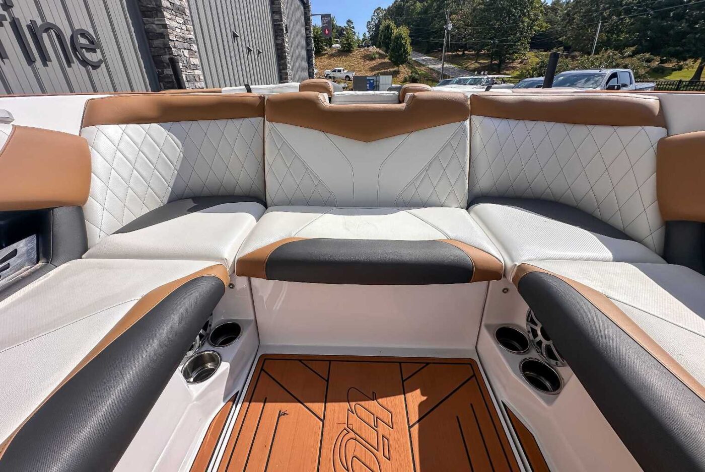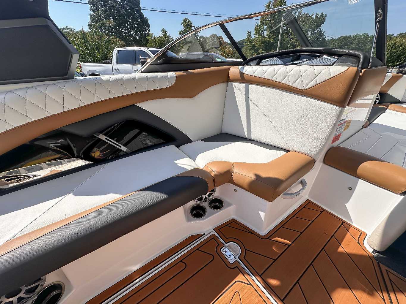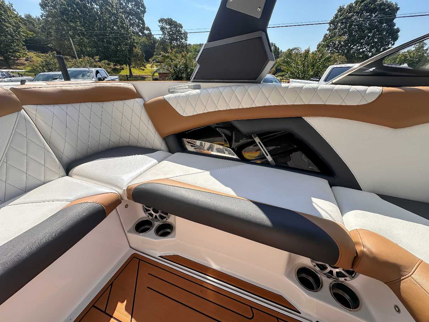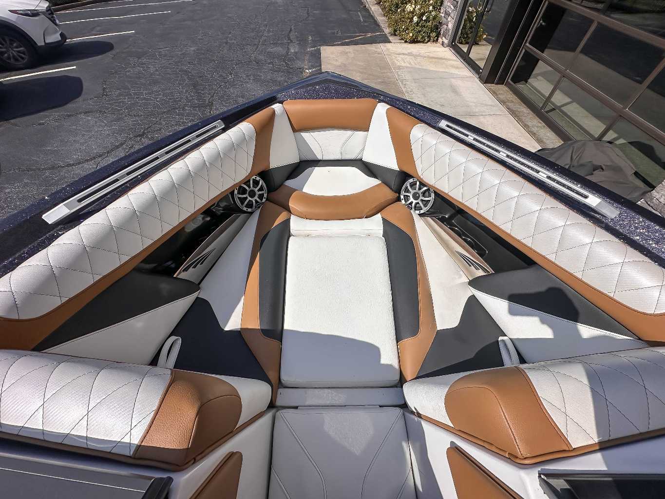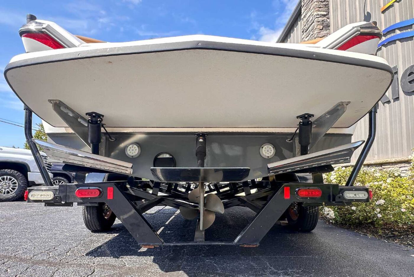The 2017 Tige Z1 is a versatile 21.5-foot (6.5-meter) towboat known for packing performance into a compact size. Powered by the Indmar Raptor series engine, it utilizes the Convex V hull and TAPS 3 Surf System to produce customizable wakes and "ocean-worthy" surf waves, making it ideal for a range of water sports from wakeboarding to slalom skiing. The Z1 offers a spacious interior with seating for up to 14 people and advanced features such as a touchscreen control system and an optional Alpha Z or E2 powe
