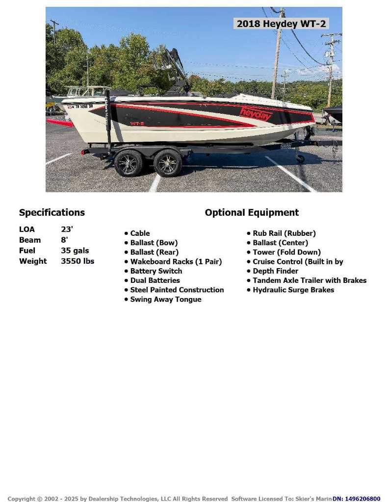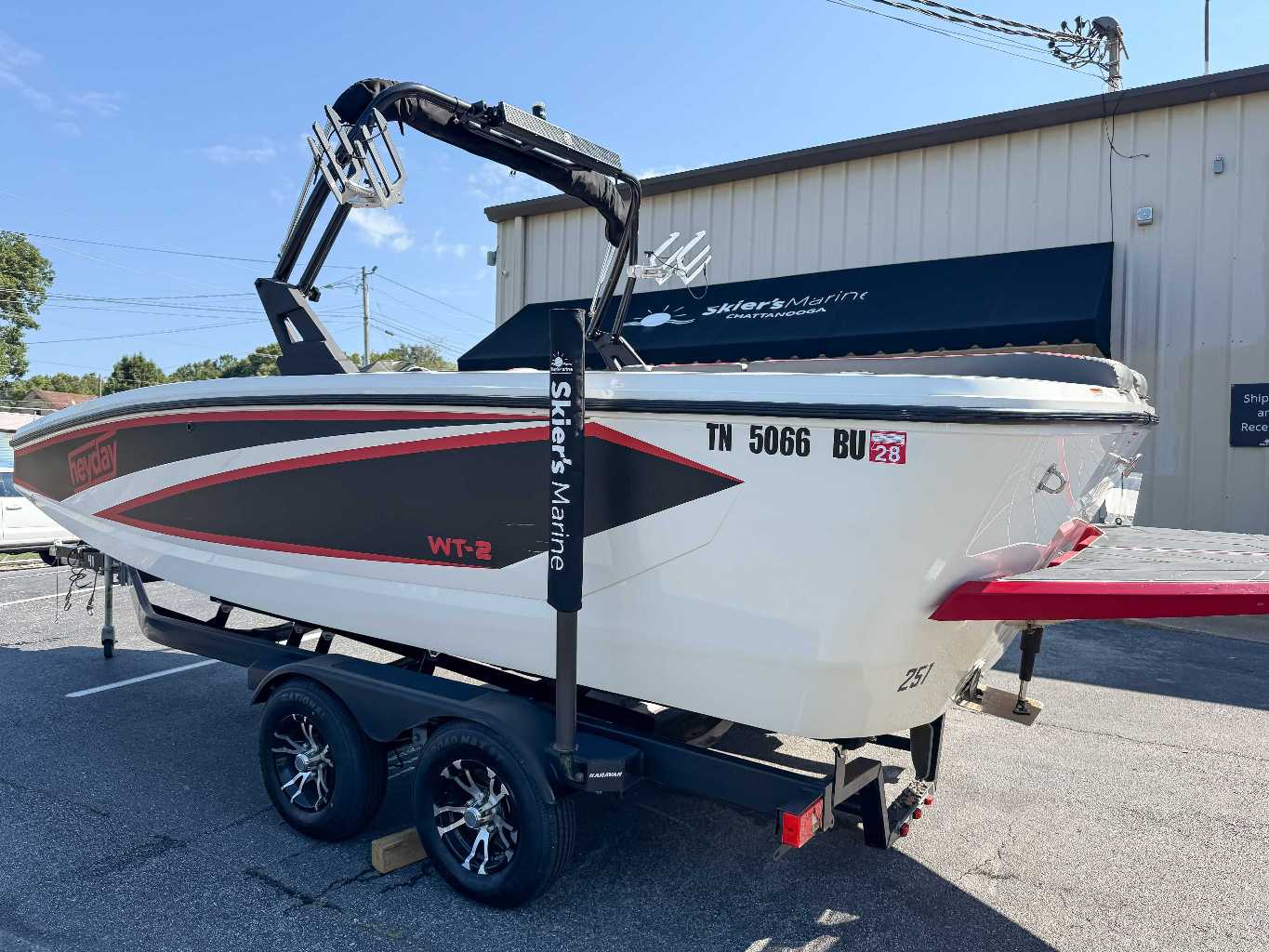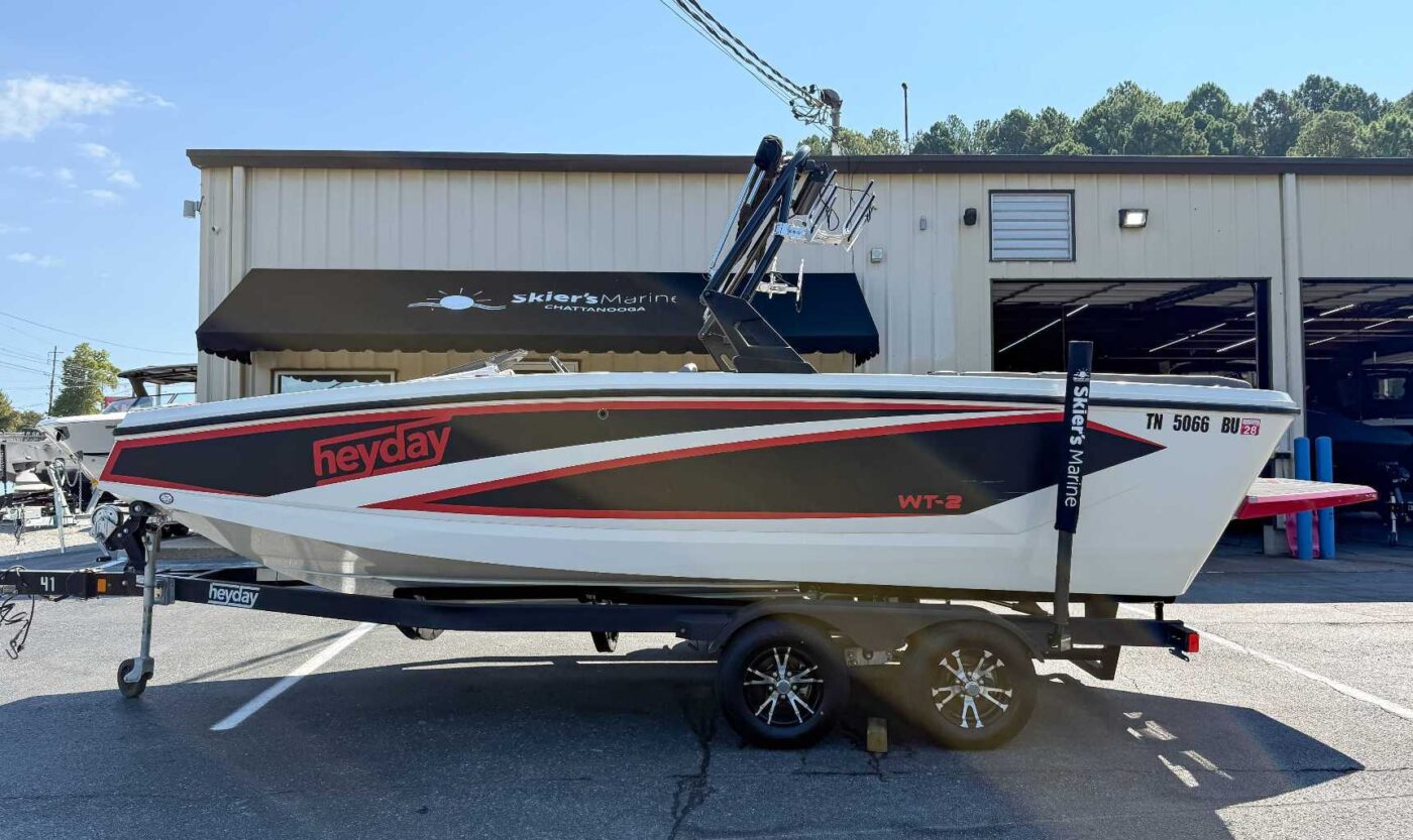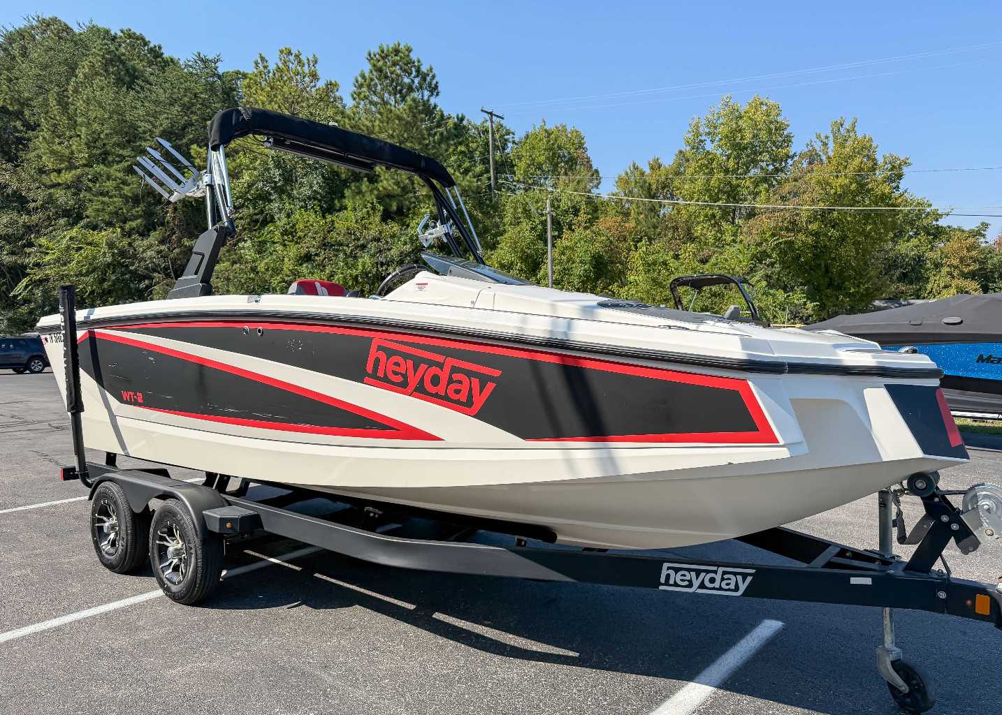 The 2018 Heyday WT-2 is a purpose-built, 22.9-foot wake boat designed to offer maximum wakesports performance at an affordable price. It features a unique hull design with a 117-degree transom angle that creates a powerful, surf-ready wake without the need for complex tabs or gates.