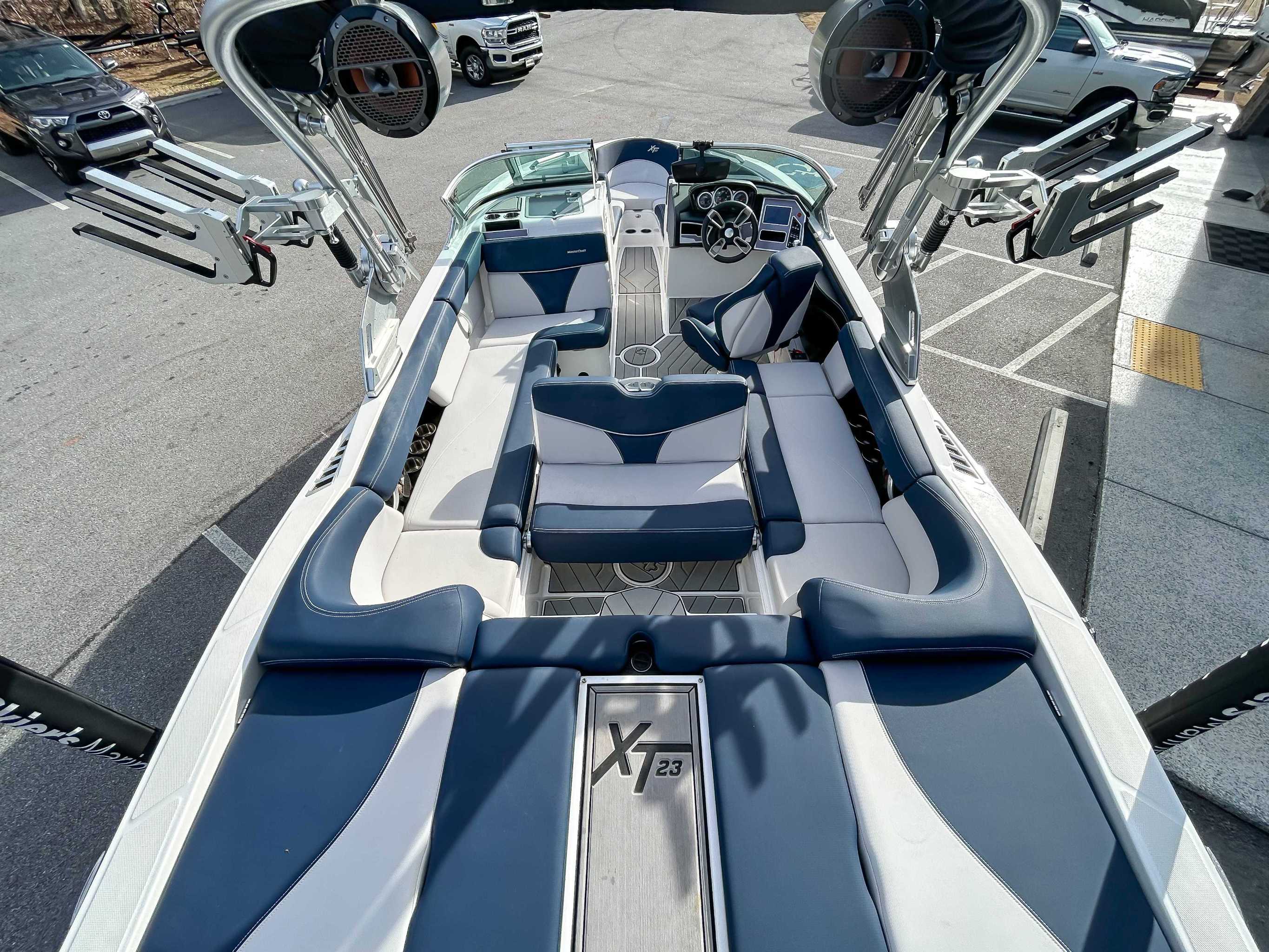 The 2020 MasterCraft XT23 is a premier 23-foot crossover boat balancing luxury, 16-person capacity, and elite versatile performance for surfing, wakeboarding, and skiing. With a standard Ilmor engine, 3,300 lbs of ballast, and user-friendly 7-inch touch-screen helm, it delivers top-tier, customizable waves without needing excessive, complex upgrades