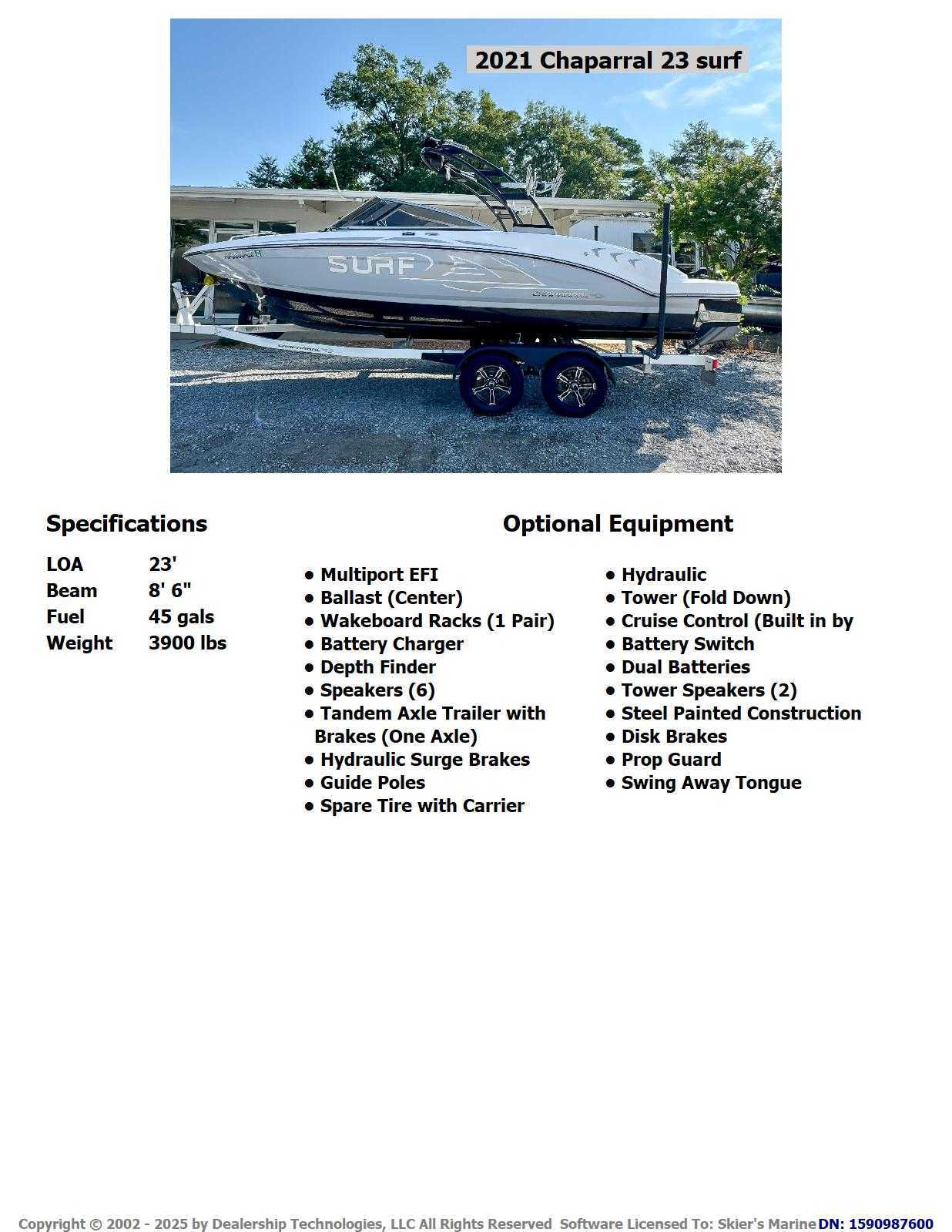 Skier's Marine is an award-winning ski boat, pontoon boat, and runabout sport boat dealer for brands like MasterCraft, Supra, Moomba, Chaparral, Harris, Premier, and Boston Whaler. We are not responsible for any pricing, options, specifications, or other listing errors on our site. Please contact us to confirm all details.