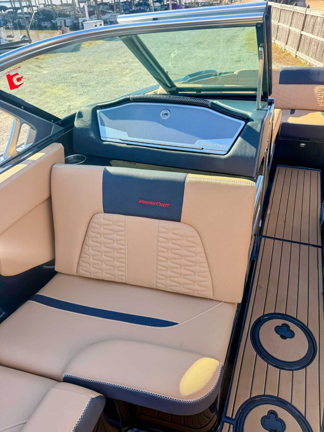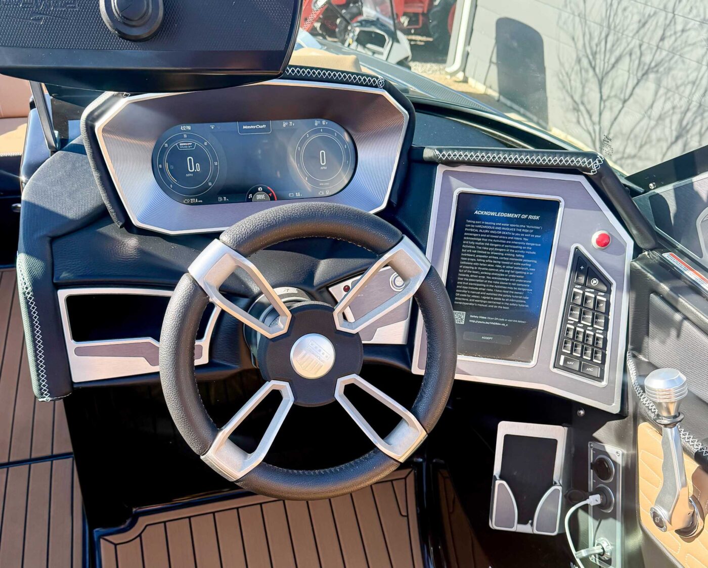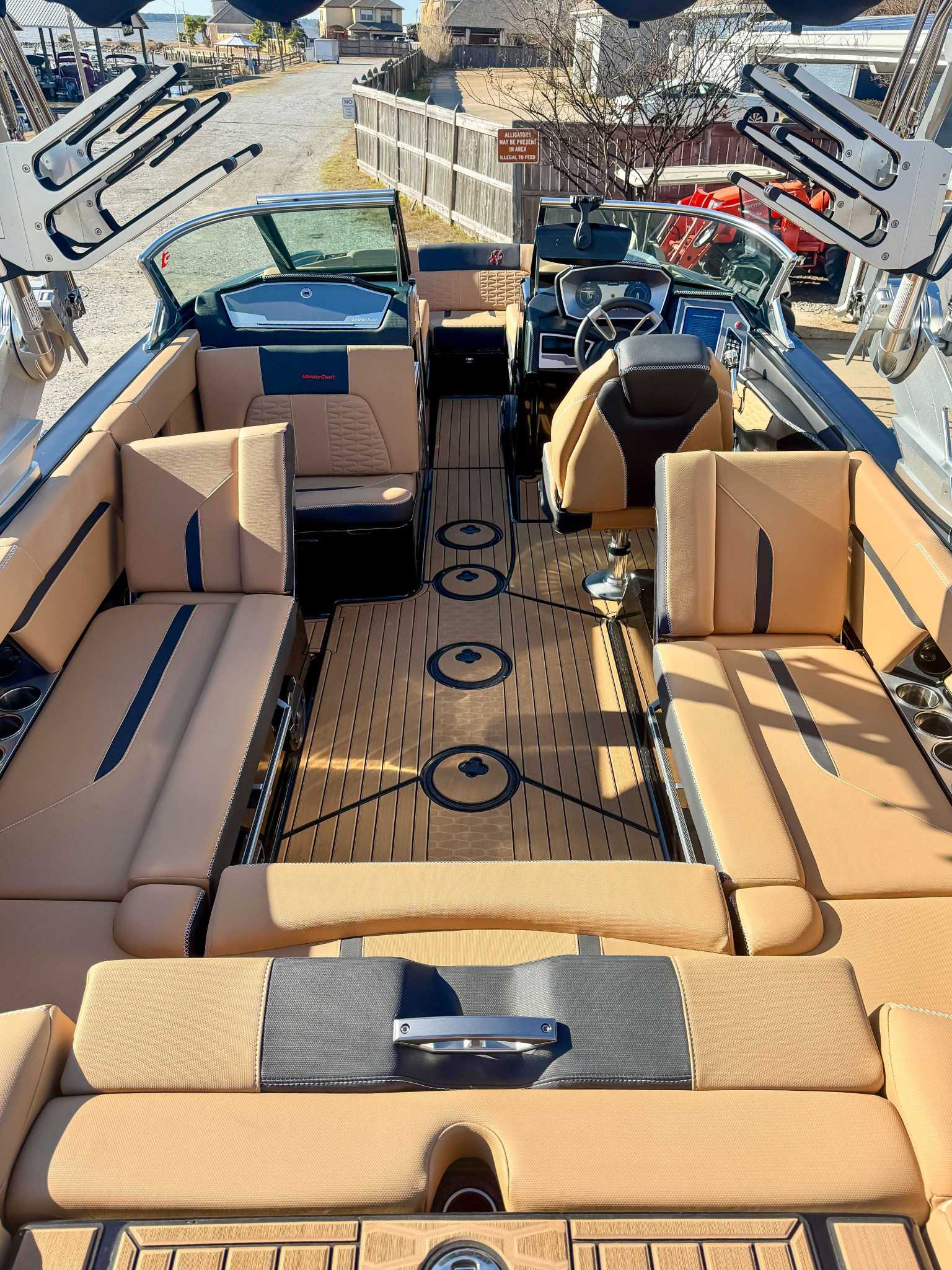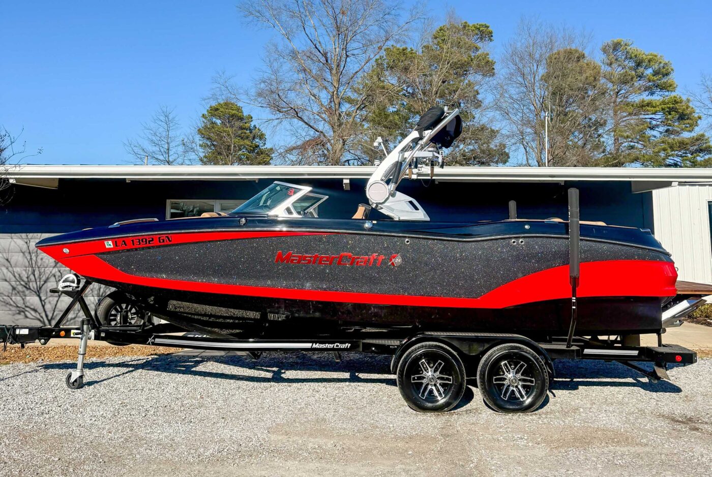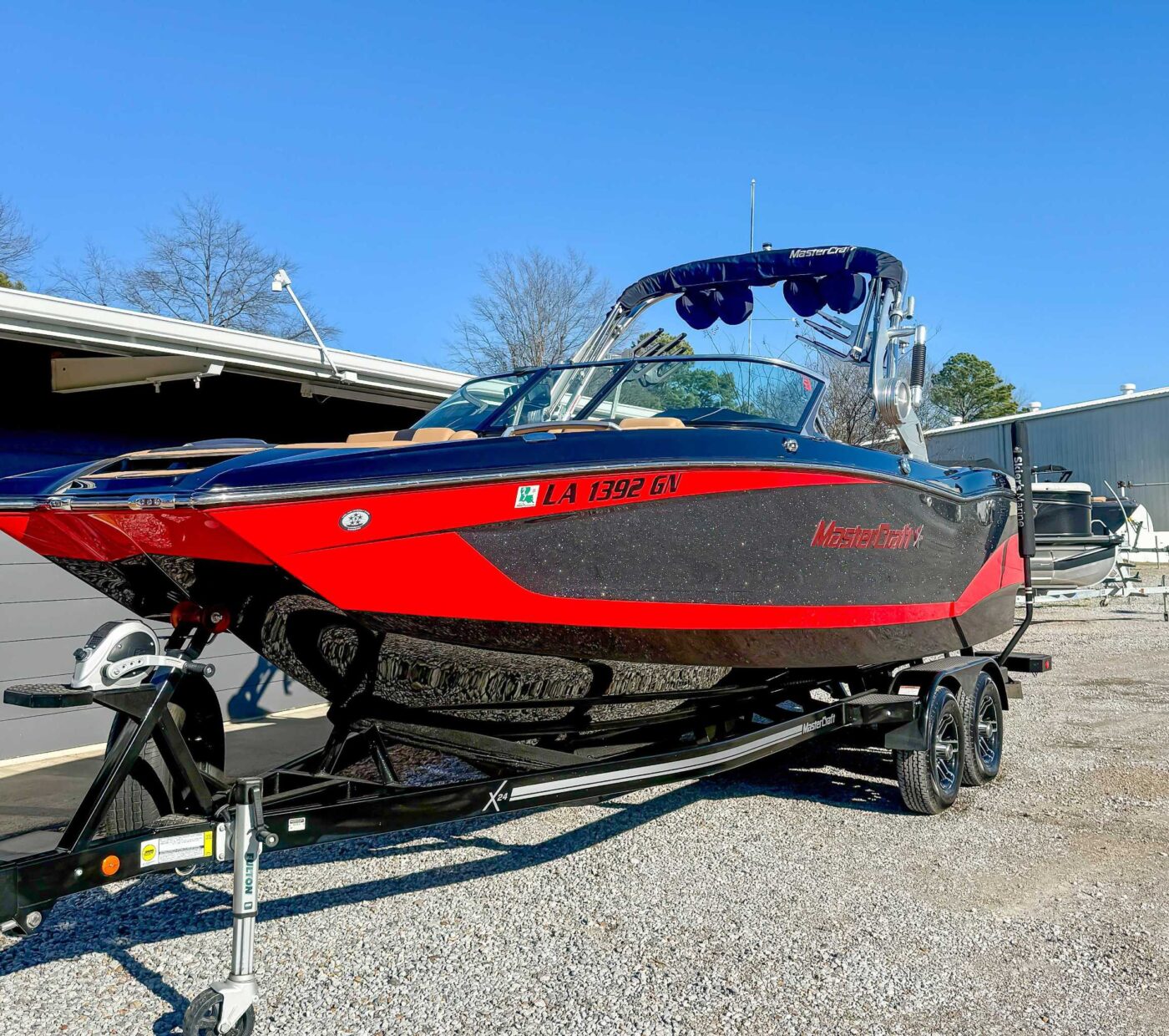 The 2021 MasterCraft X24 is an award-winning 24-foot (7.4 m) luxury towboat celebrated for its world-class wakes and waves. It features the innovative SurfStar system and a massive 4,300 lbs of ballast for easy wave customization. The spacious interior accommodates 18 people with premium amenities like CoolFeel vinyl, a powerful Klipsch audio system, dual-screen displays, and available heated seating and stern thruster options. Powered by an Ilmor 6.2L GDI engine (with an optional 7.4L or supercharged 6.2L