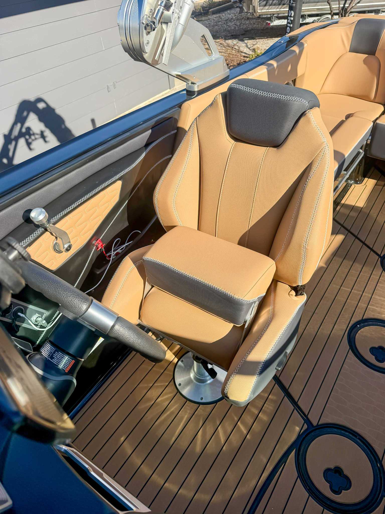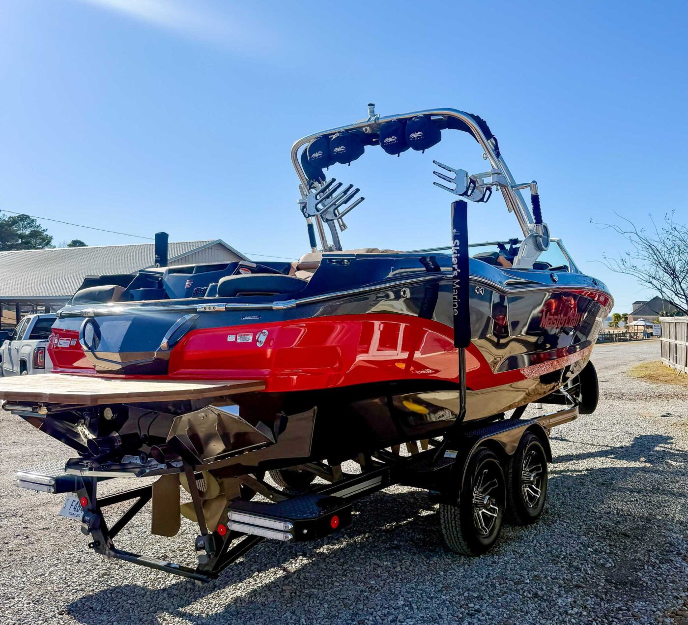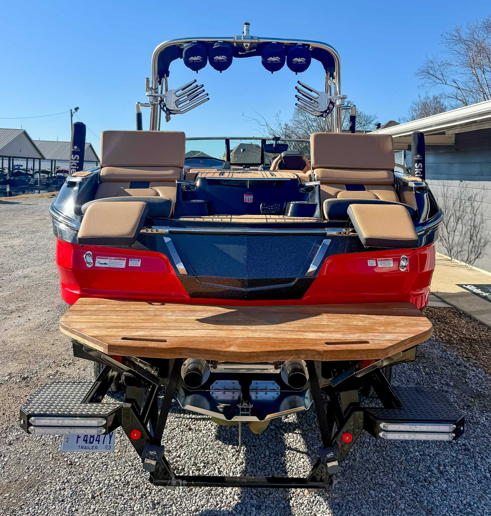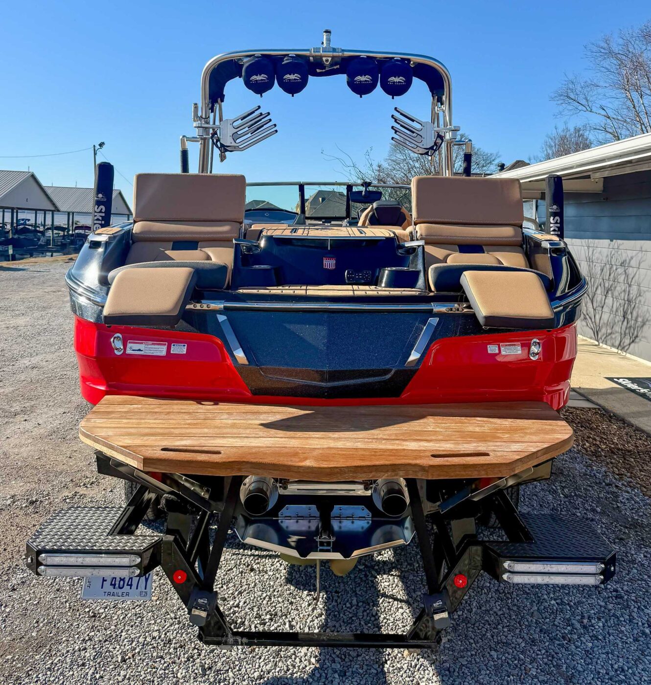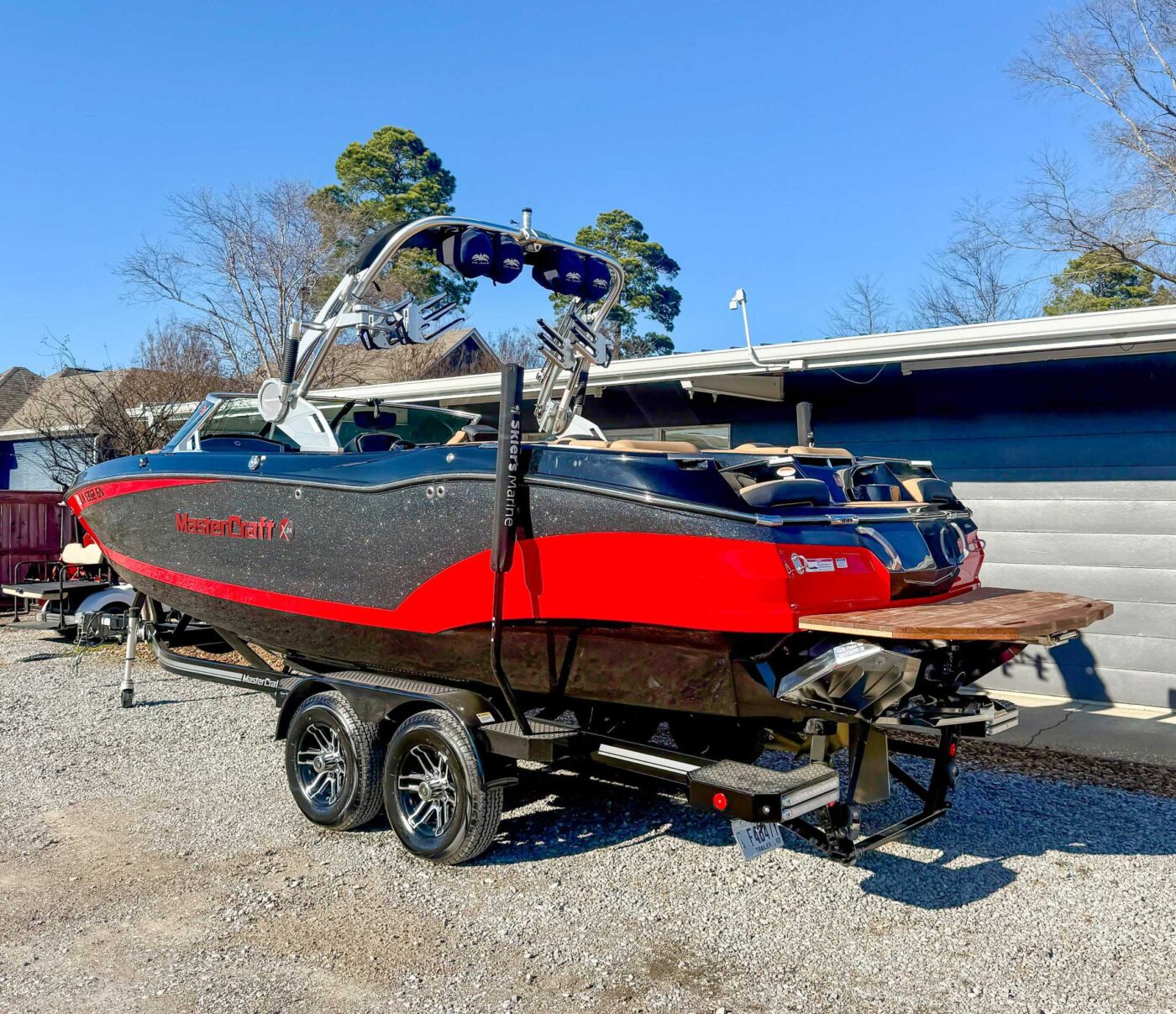 The 2021 MasterCraft X24 is an award-winning 24-foot (7.4 m) luxury towboat celebrated for its world-class wakes and waves. It features the innovative SurfStar system and a massive 4,300 lbs of ballast for easy wave customization. The spacious interior accommodates 18 people with premium amenities like CoolFeel vinyl, a powerful Klipsch audio system, dual-screen displays, and available heated seating and stern thruster options. Powered by an Ilmor 6.2L GDI engine (with an optional 7.4L or supercharged 6.2L