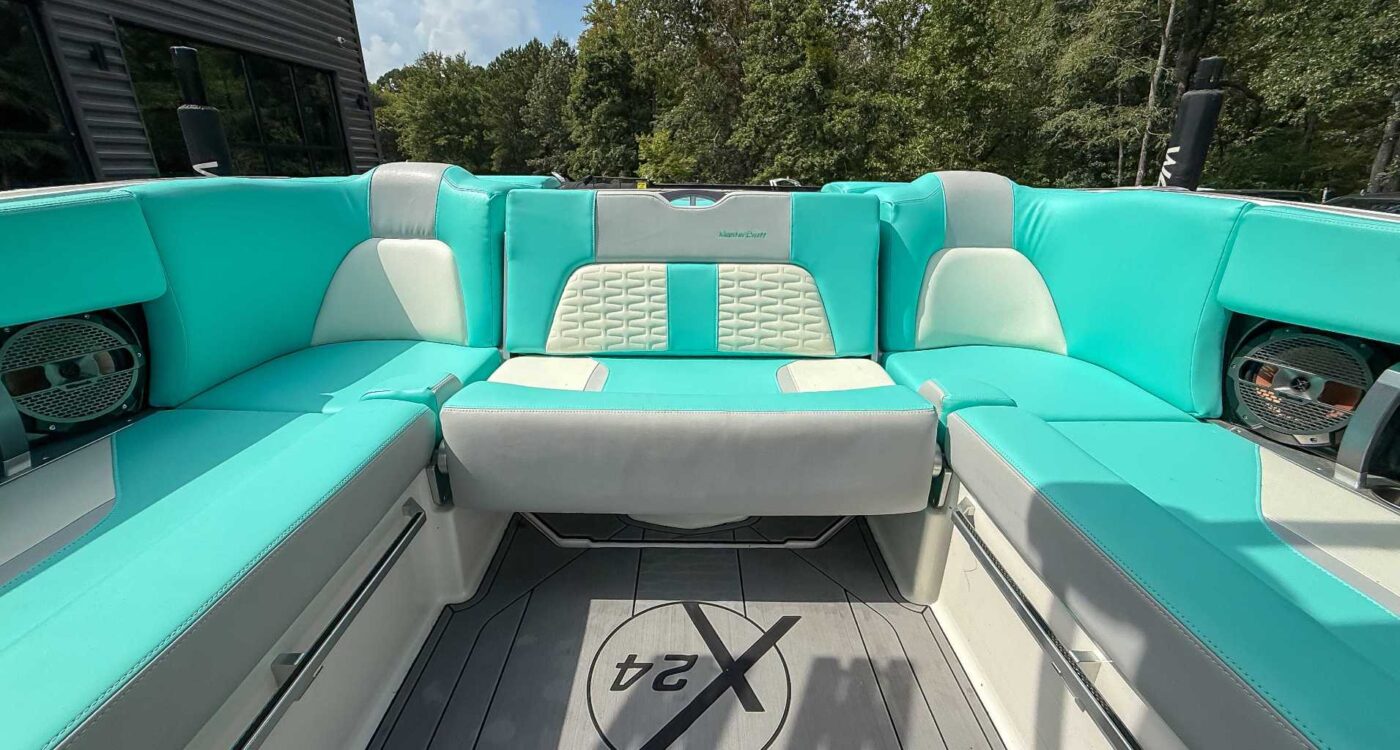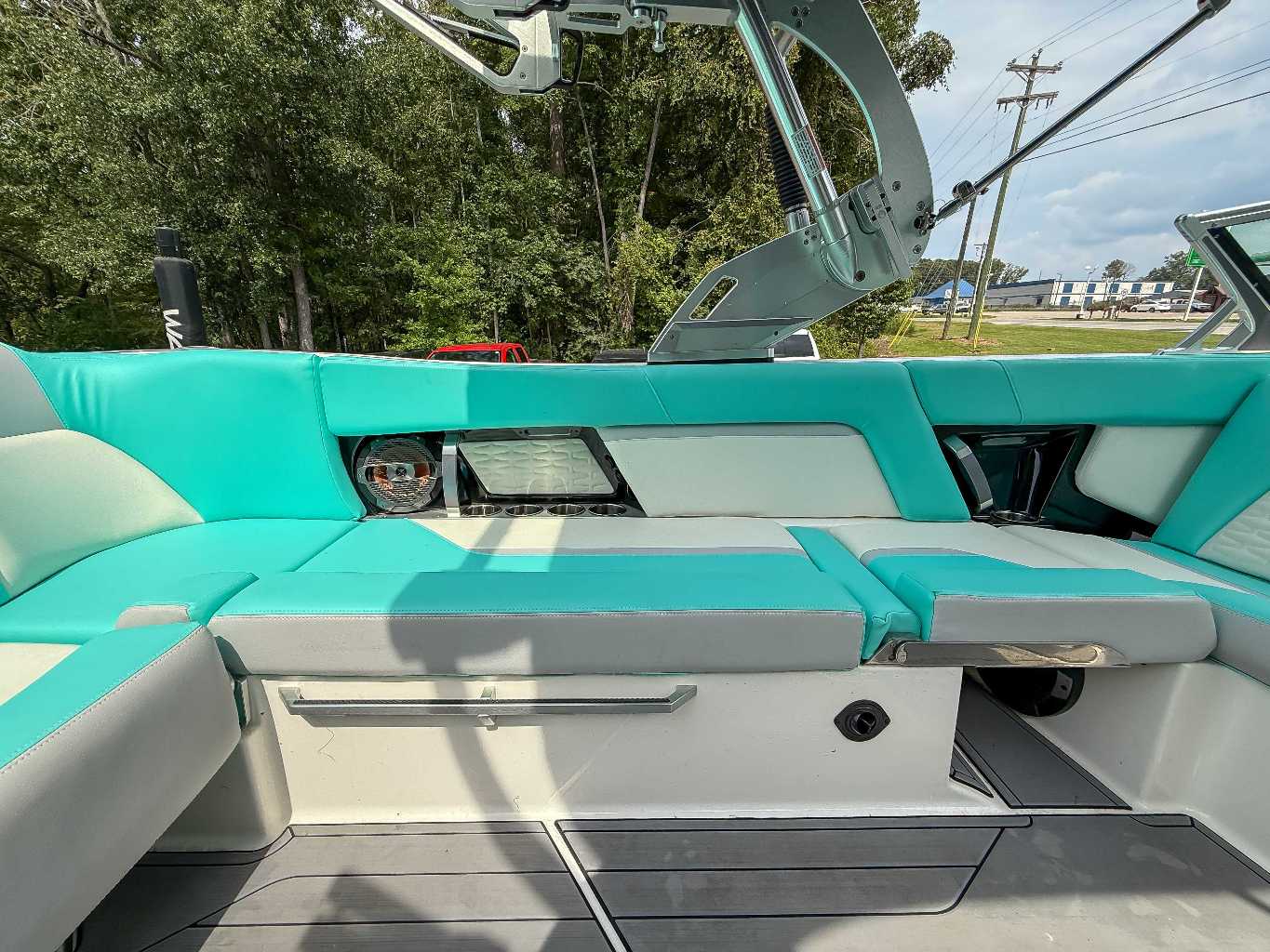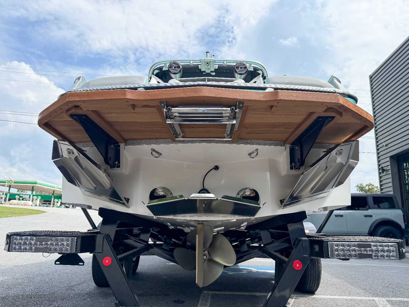 The 2021 MasterCraft X24 is an award-winning 24-foot (7.4 m) luxury towboat celebrated for its world-class wakes and waves. It features the innovative SurfStar system and a massive 4,300 lbs of ballast for easy wave customization. The spacious interior accommodates 18 people with premium amenities like CoolFeel vinyl, a powerful Klipsch audio system, dual-screen displays, and available heated seating and stern thruster options. Powered by an Ilmor 6.2L GDI engine (with an optional 7.4L or supercharged 6.2L