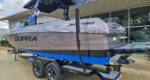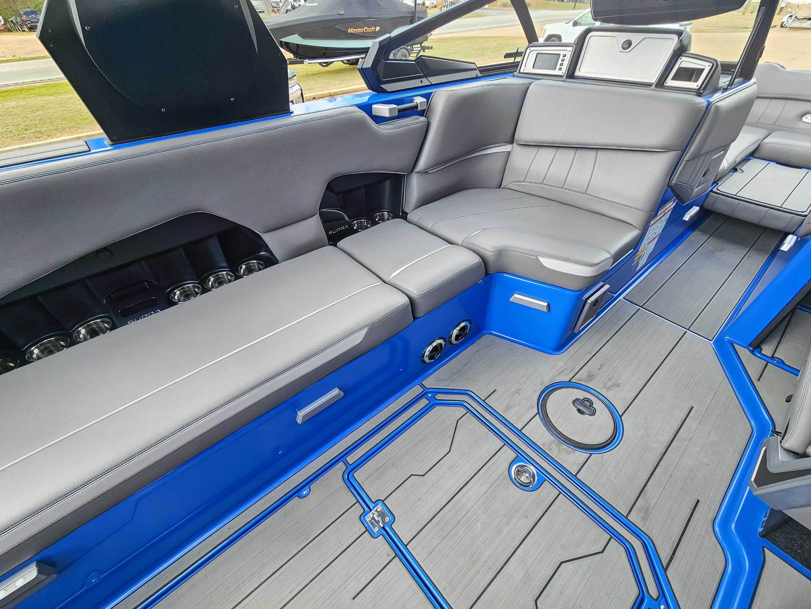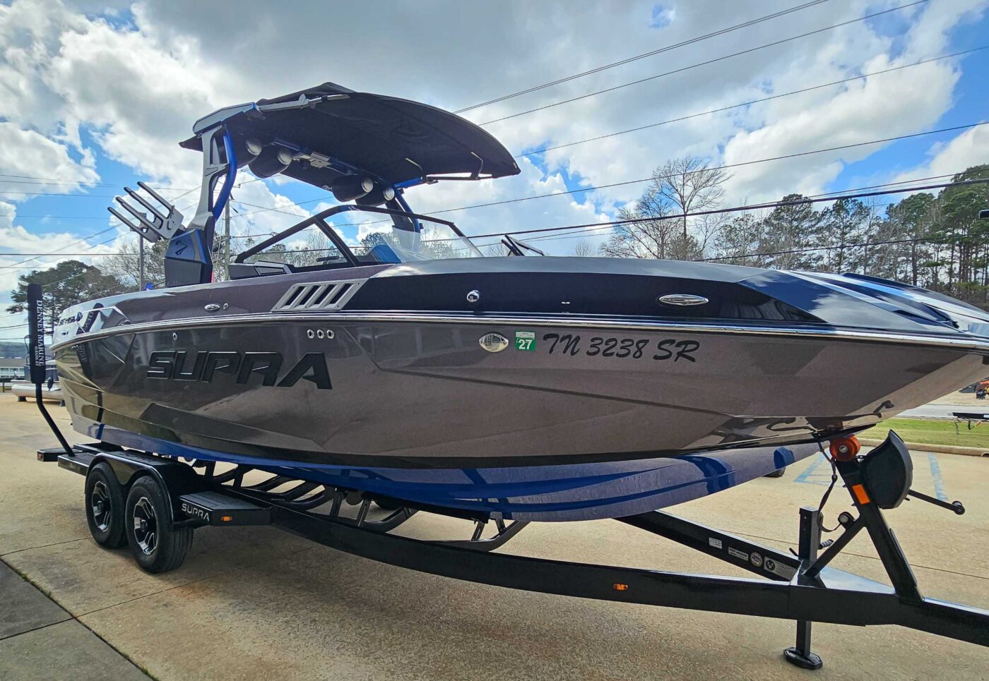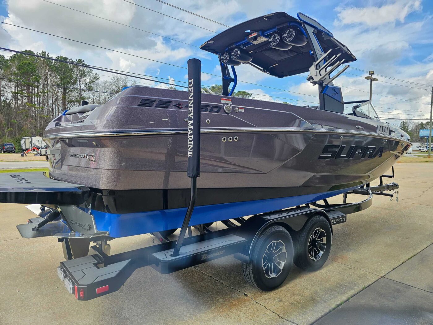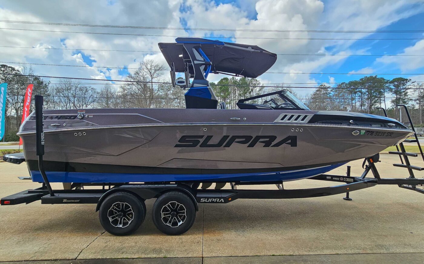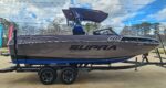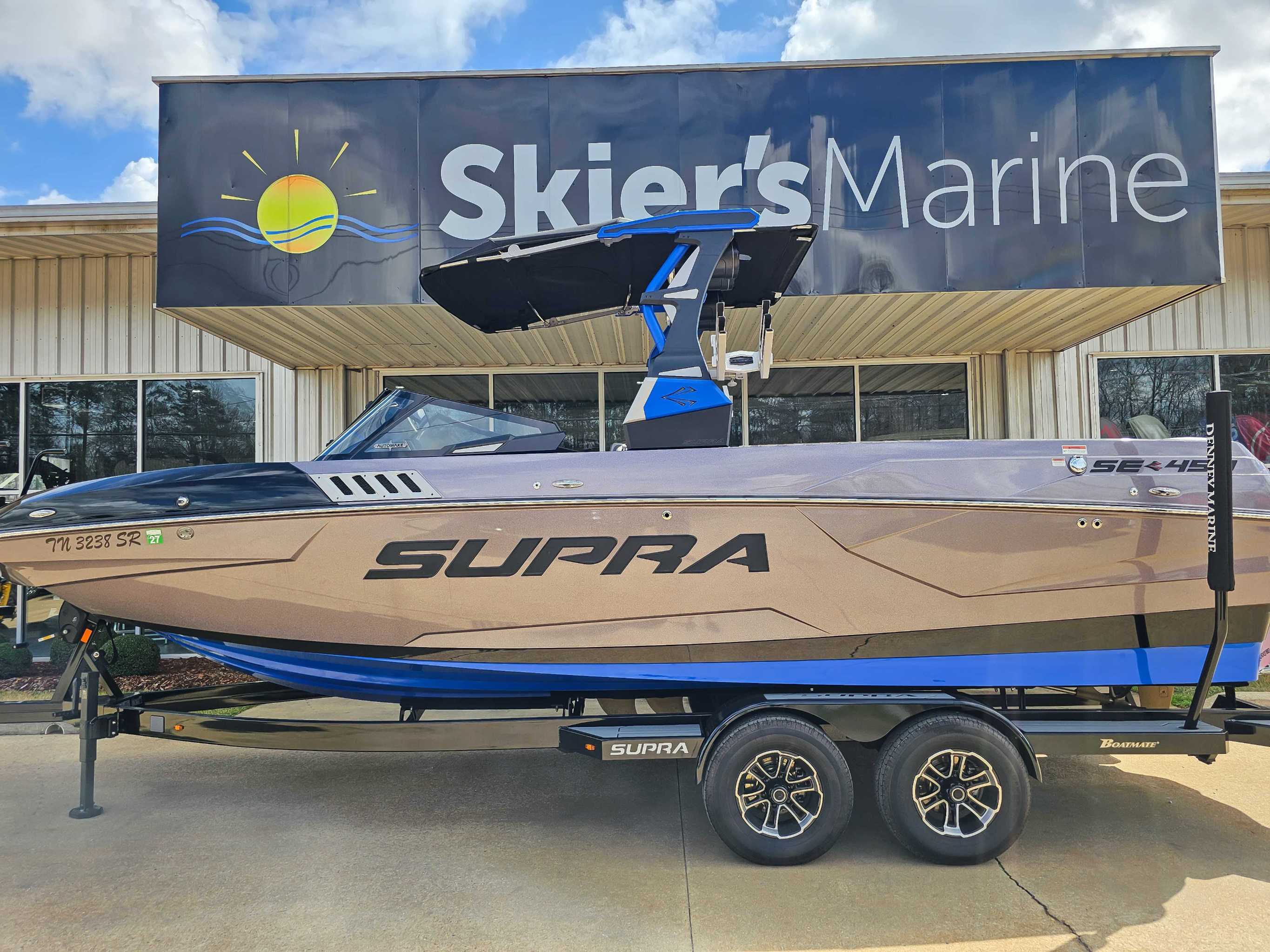 The 2021 Supra SE 450 is a top-tier choice if you want a massive, high-capacity towboat that blends luxury with "set-it-and-forget-it" performance. Its standout feature is the AutoWake system, which automatically adjusts ballast to maintain the perfect hull position, ensuring consistent, professional-grade surf waves and wakeboard wakes even as passengers move around the 18-person cabin. Beyond the tech, youre buying into a premium experience defined by a power-folding tower, a high-torque Raptor 450 eng