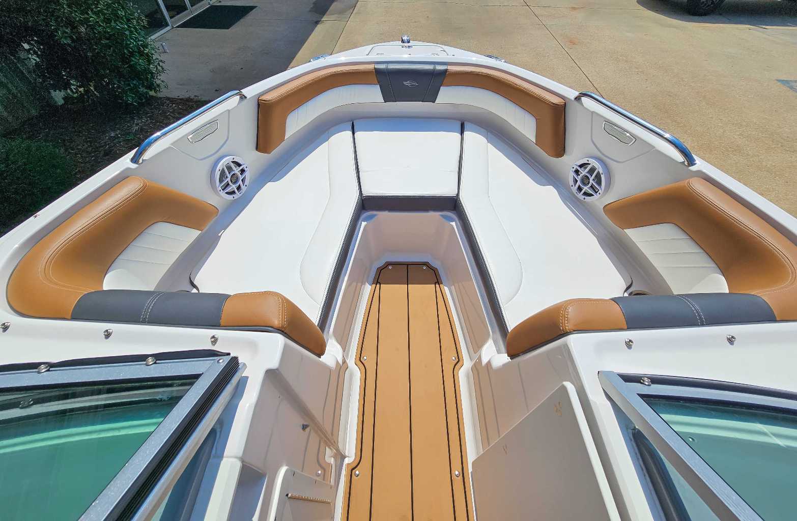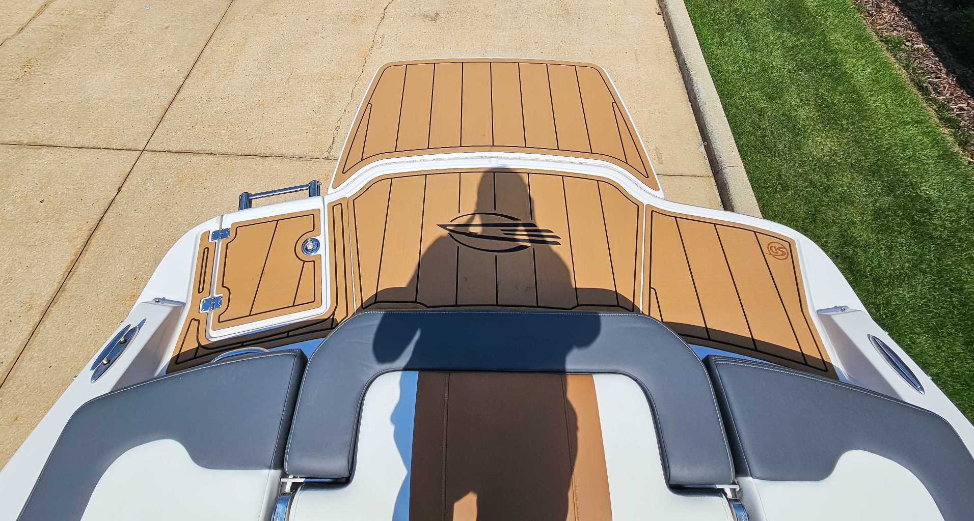 Cockpit Layout: Two Bucket Seats (Slide and Swivel) with Logo Badging, Rear Bench Seat and Aft Hinged Sundeck with Walk-Thru, Lounge Position and Aft Facing Seat