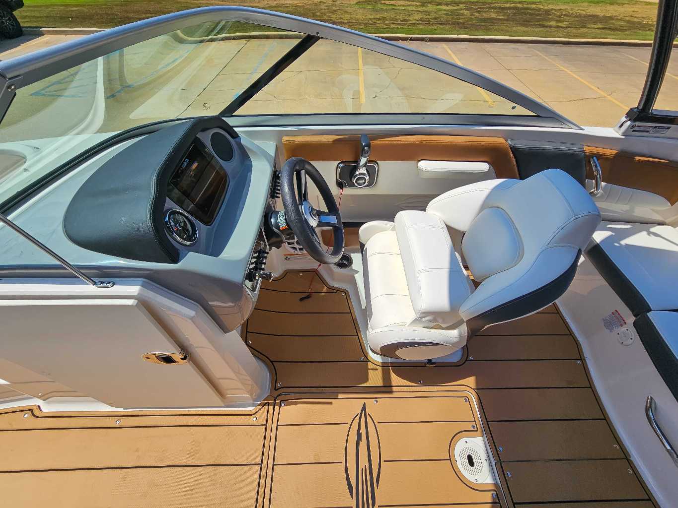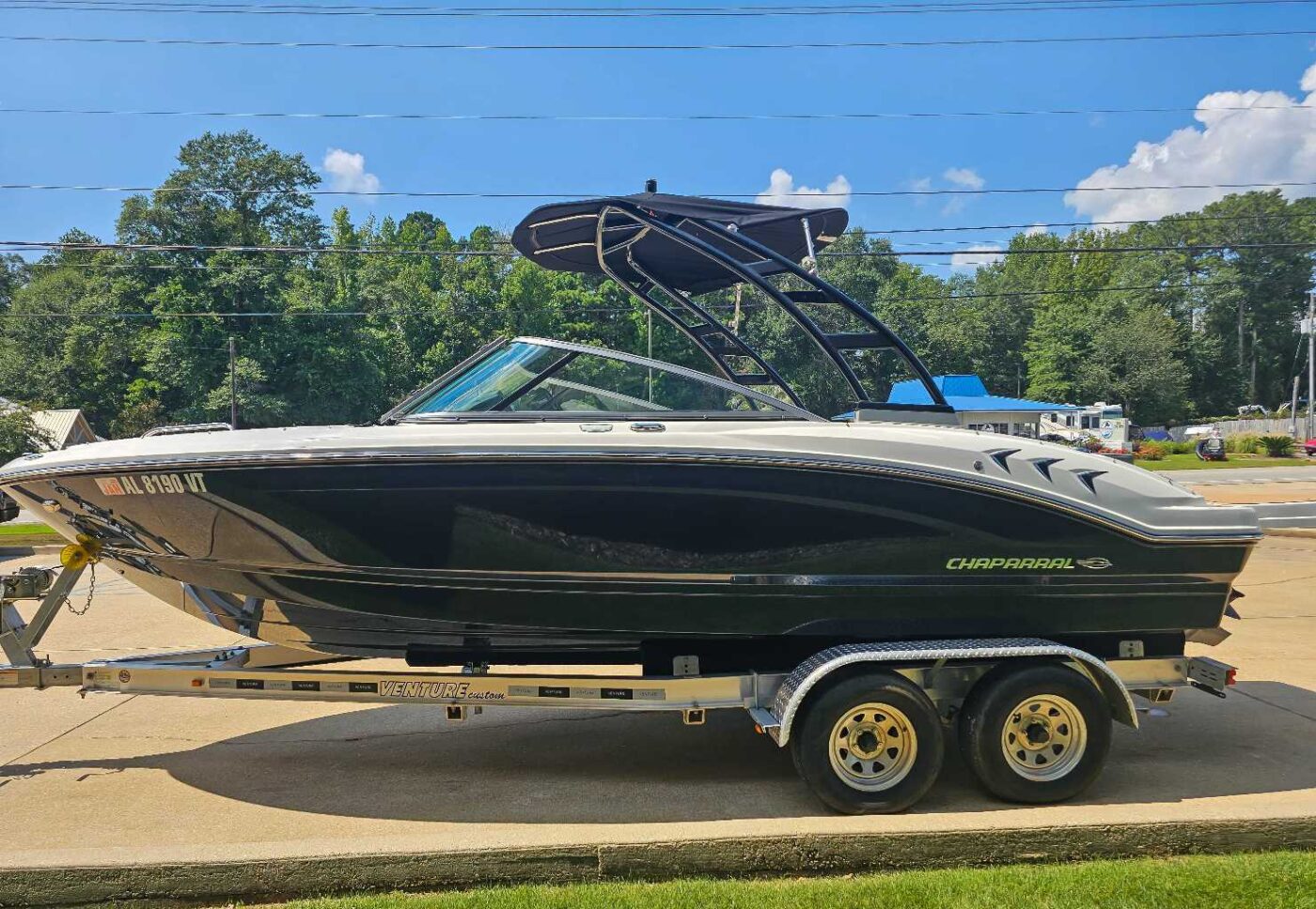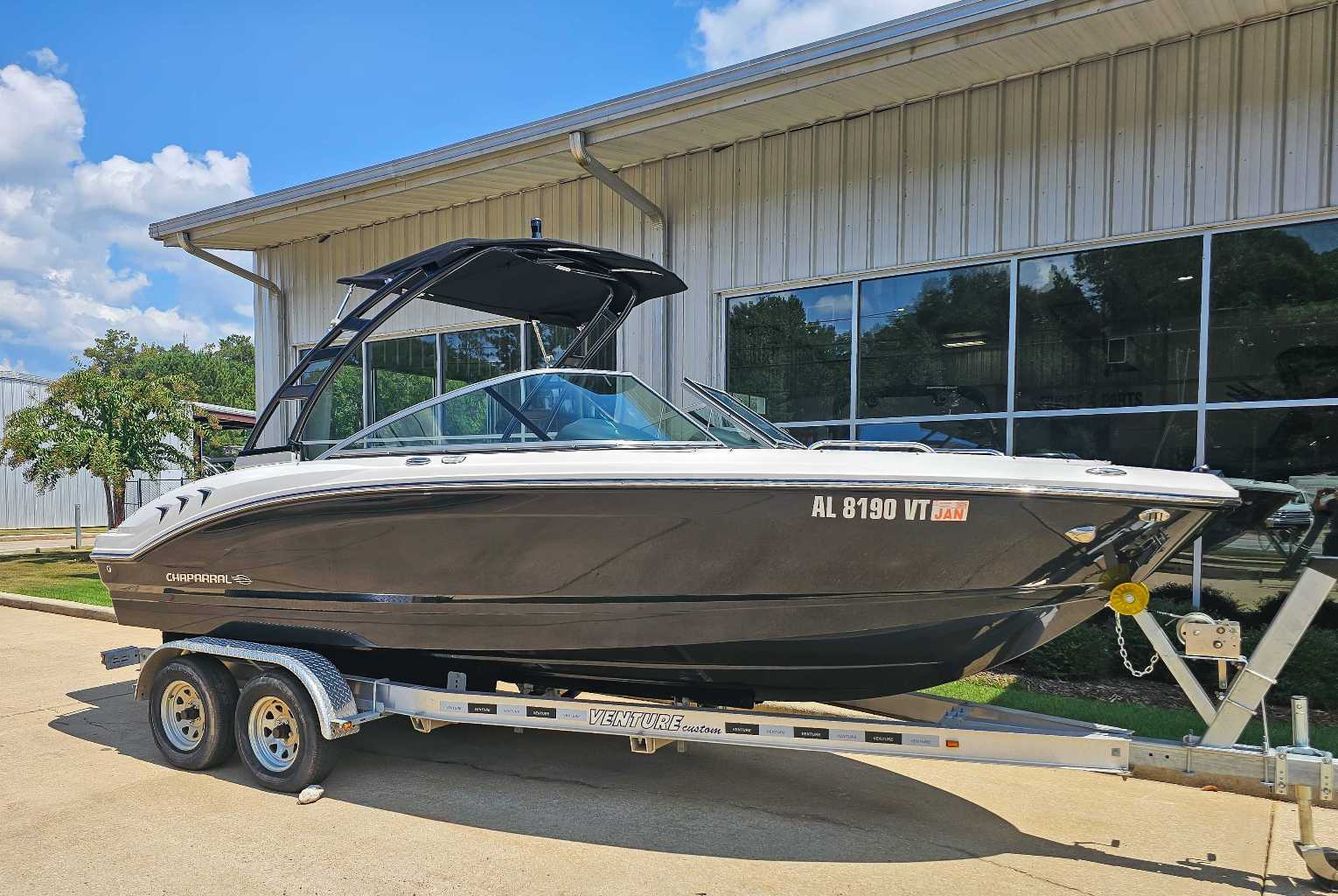 The 2023 Chaparral 21 SSi is a versatile 21-foot bowrider that blends performance, style, and family-friendly features. It features an extended V-plane hull for a smooth, efficient ride and is powered by various sterndrive or outboard engine options up to 250 HP. The spacious cockpit offers premium, stain-resistant seating for up to 12 people, a 70-quart built-in cooler, and an integrated swim platform, making it ideal for day cruising, watersports, and fishing. It comes standard with a custom-matched tand