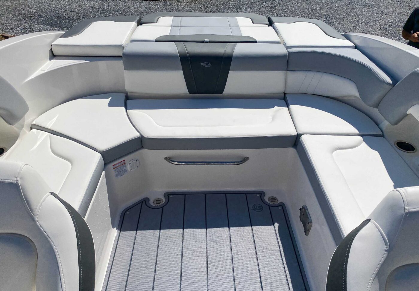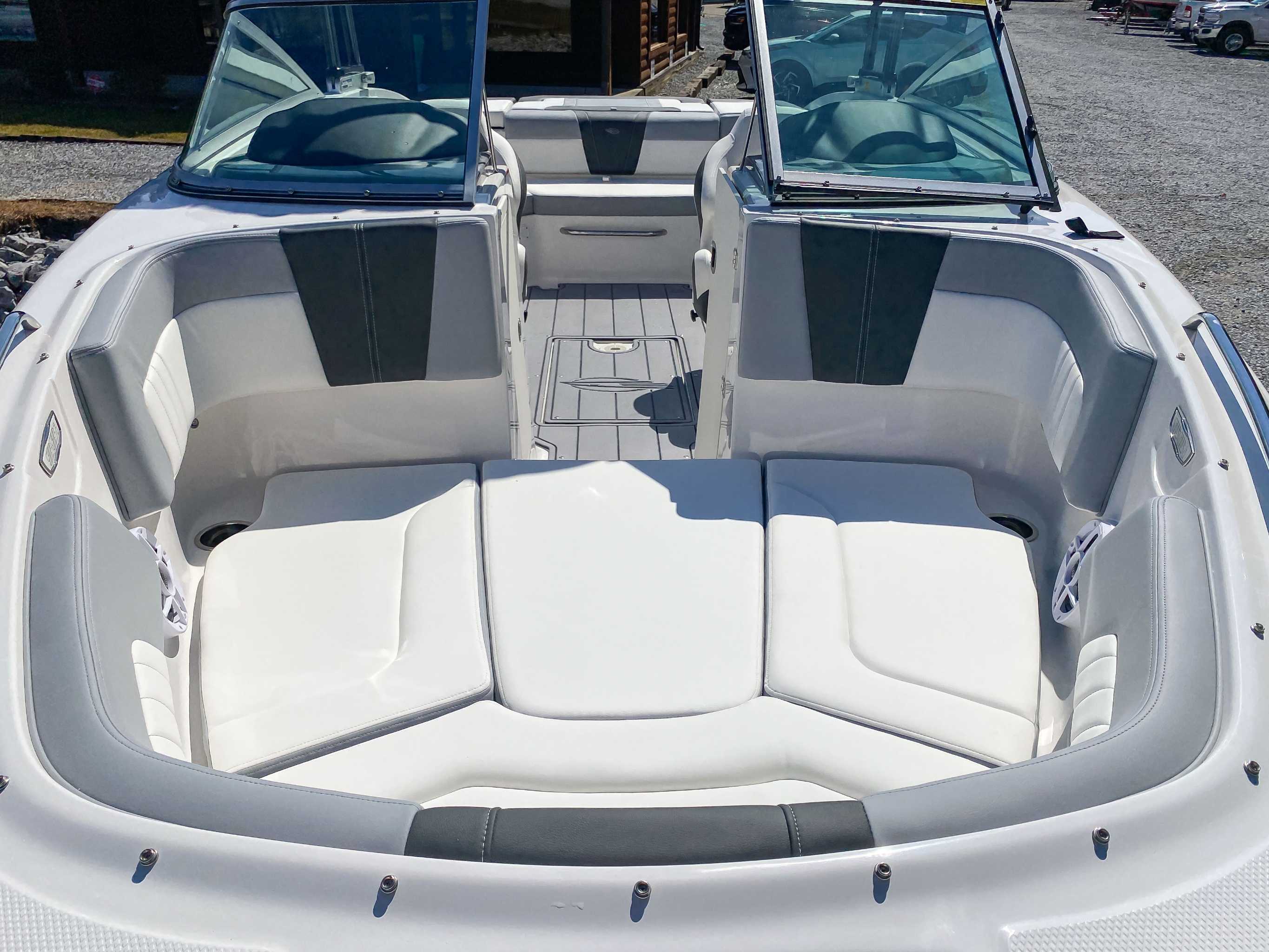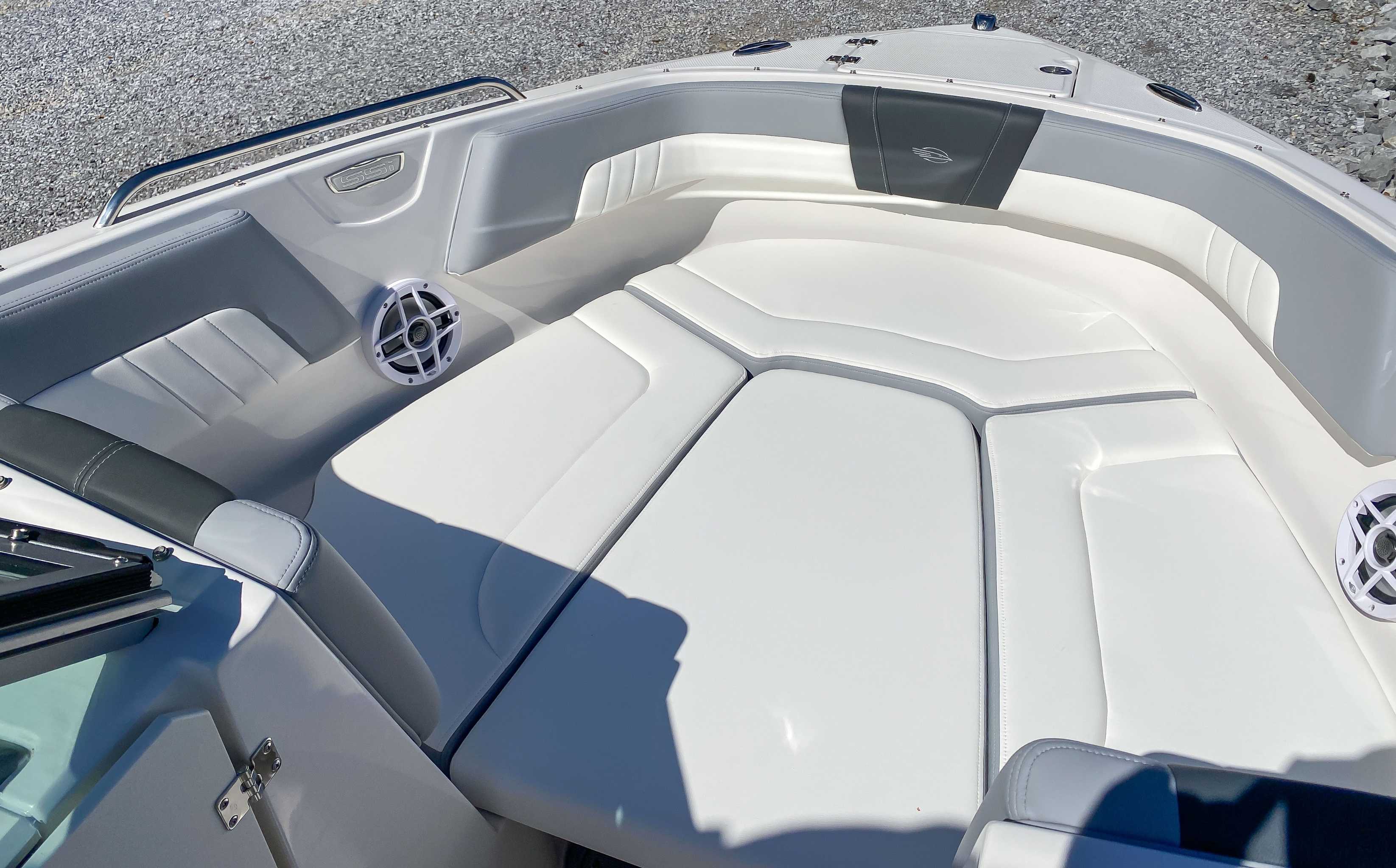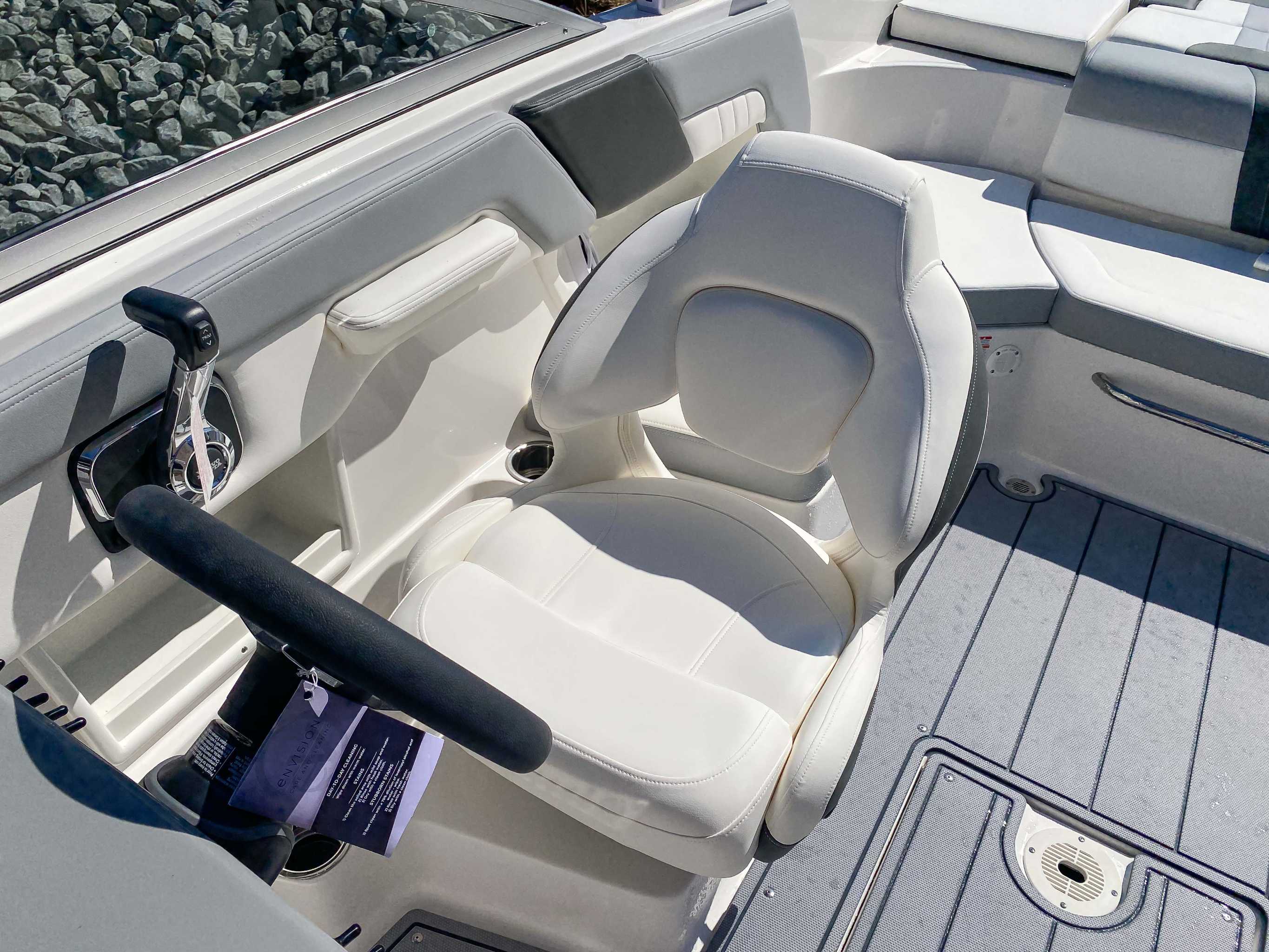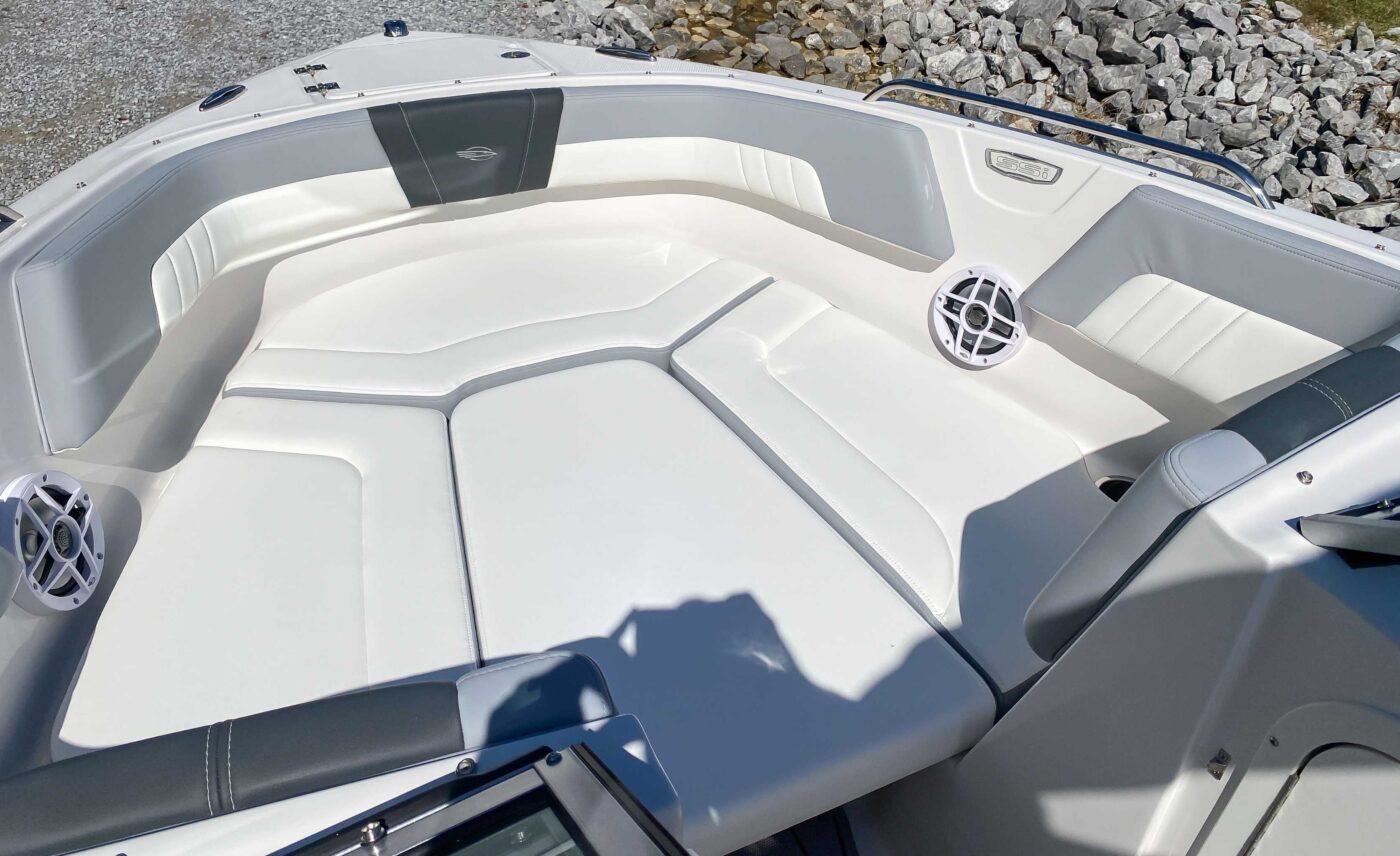Cockpit Layout: Two Bucket Seats (Slide and Swivel) with Logo Badging, U-Shaped Seating and Aft Hinged Sundeck with Walk-Thru, Lounge Position and Aft Facing Seat