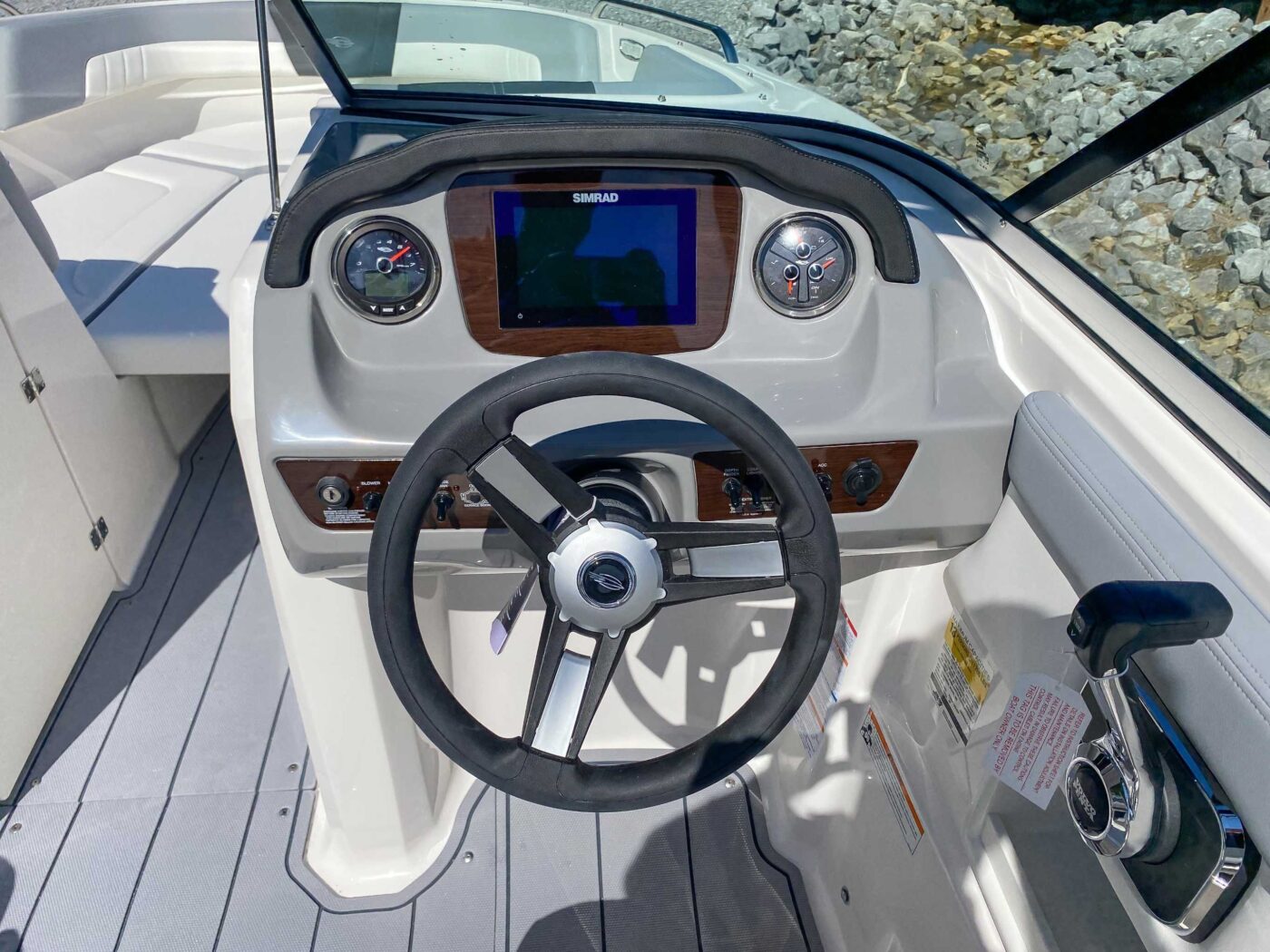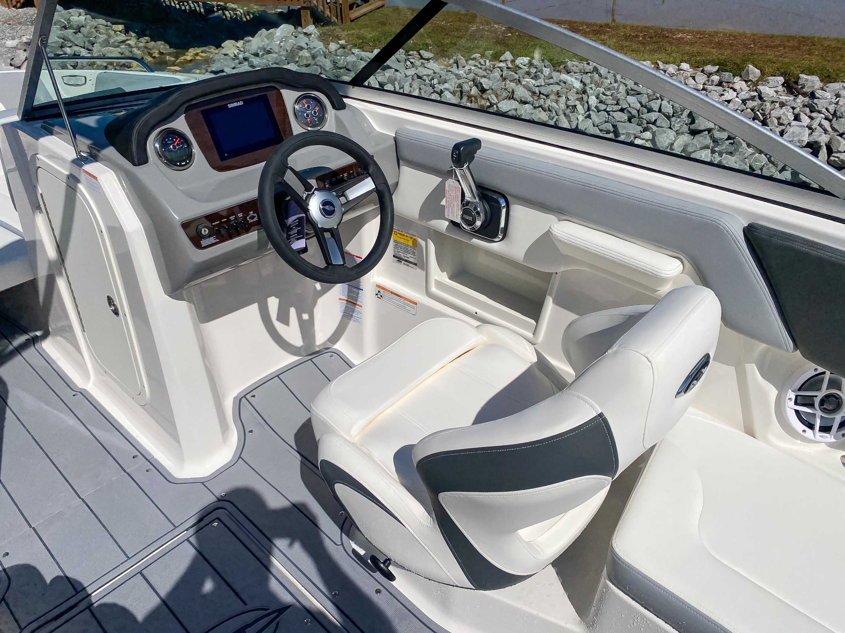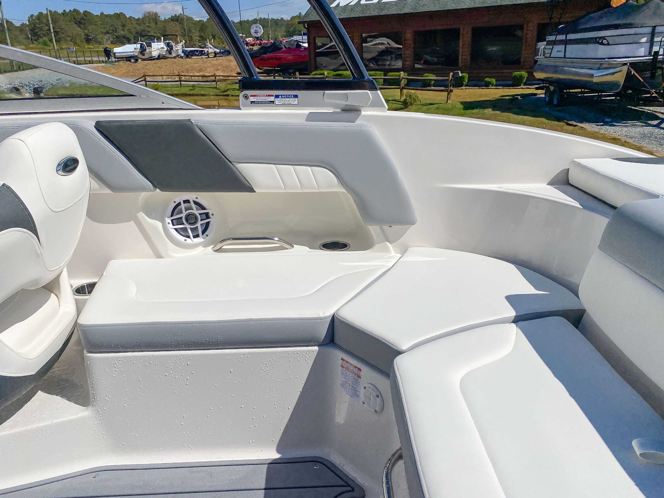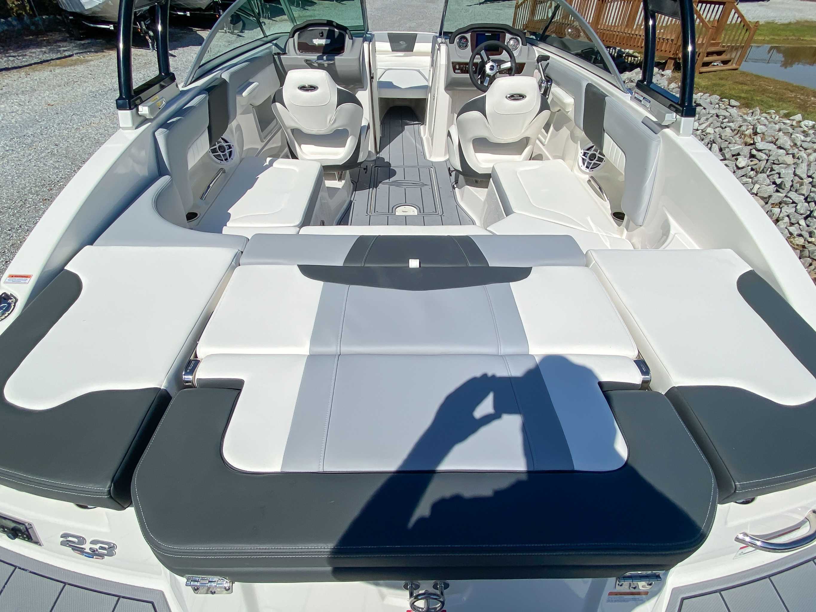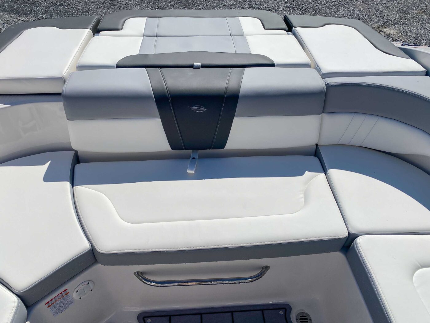 Cockpit Layout: Two Bucket Seats (Slide and Swivel) with Logo Badging, U-Shaped Seating and Aft Hinged Sundeck with Walk-Thru, Lounge Position and Aft Facing Seat