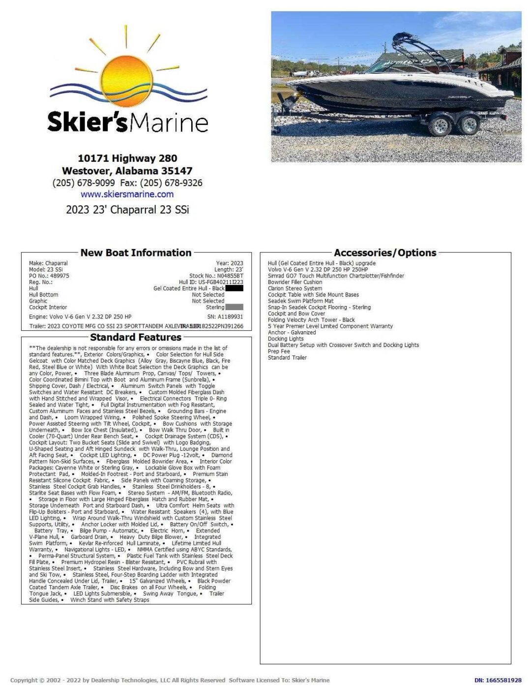 Skier's Marine is an award-winning ski boat, pontoon boat, and runabout sport boat dealer for brands like MasterCraft, Supra, Moomba, Chaparral, Harris, Premier, and Boston Whaler. We are not responsible for any pricing, options, specifications, or other listing errors on our site. Please contact us to confirm all details.
