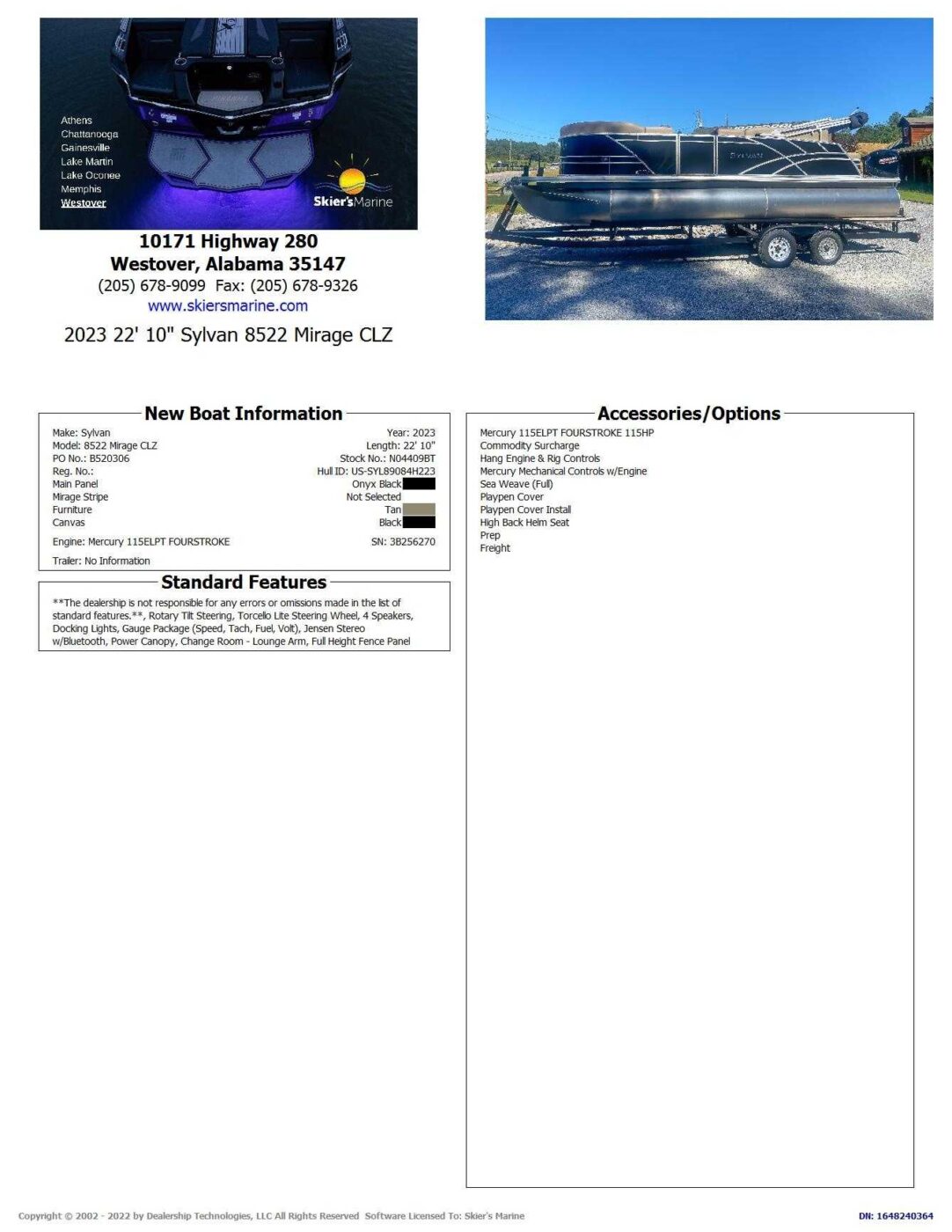 2023 Sylvan 8522 Mirage CLZ U04409BT