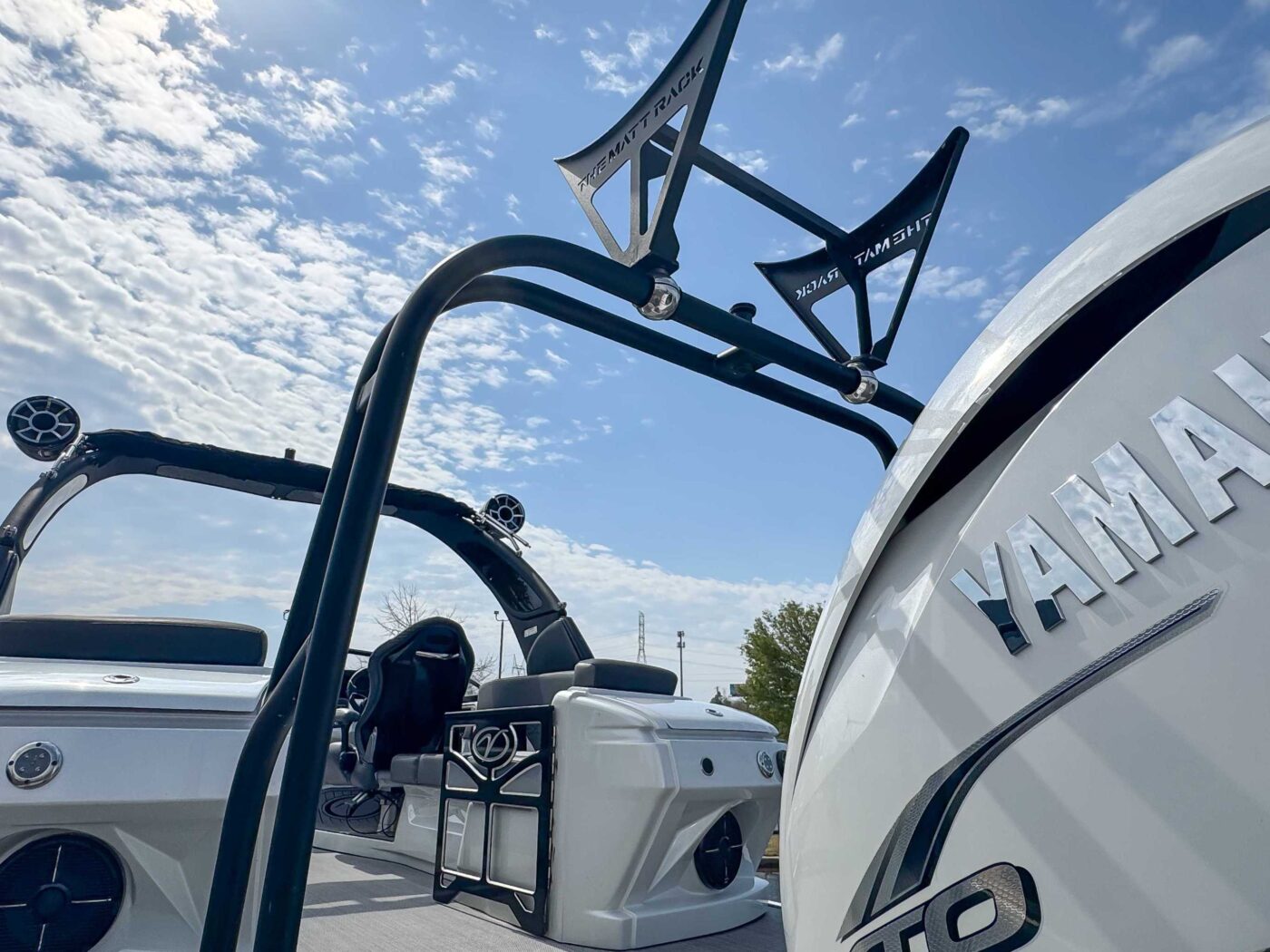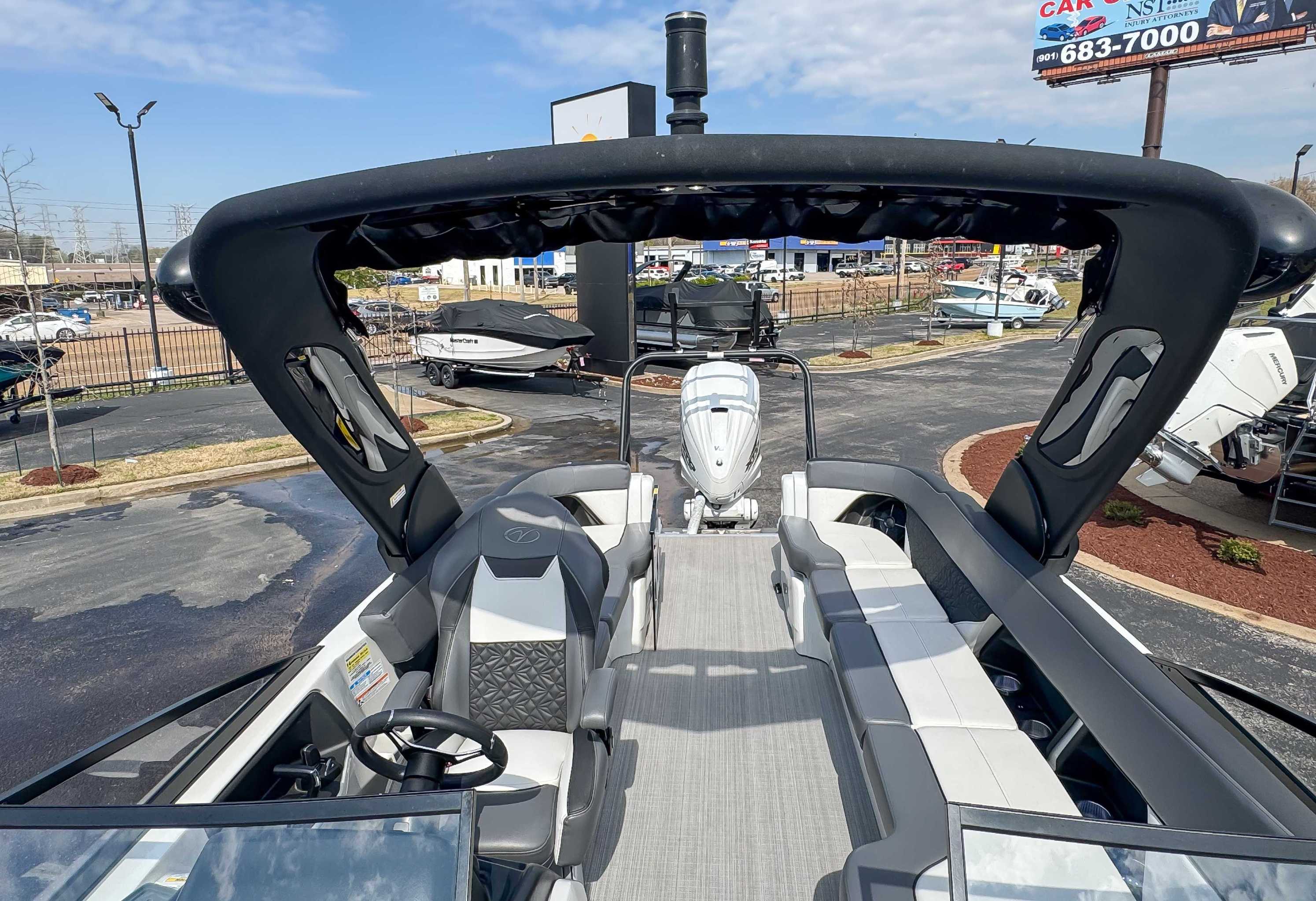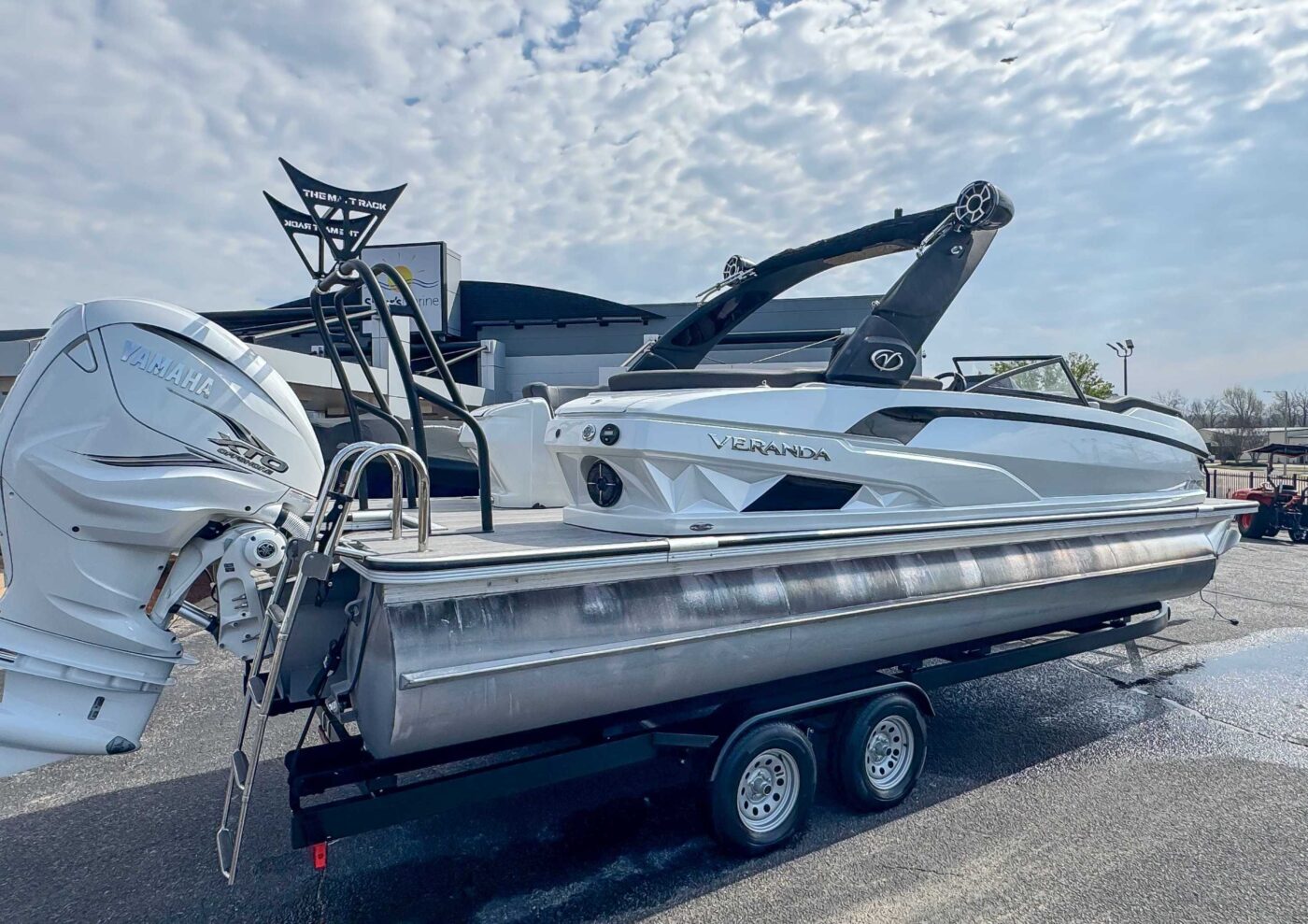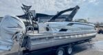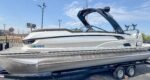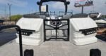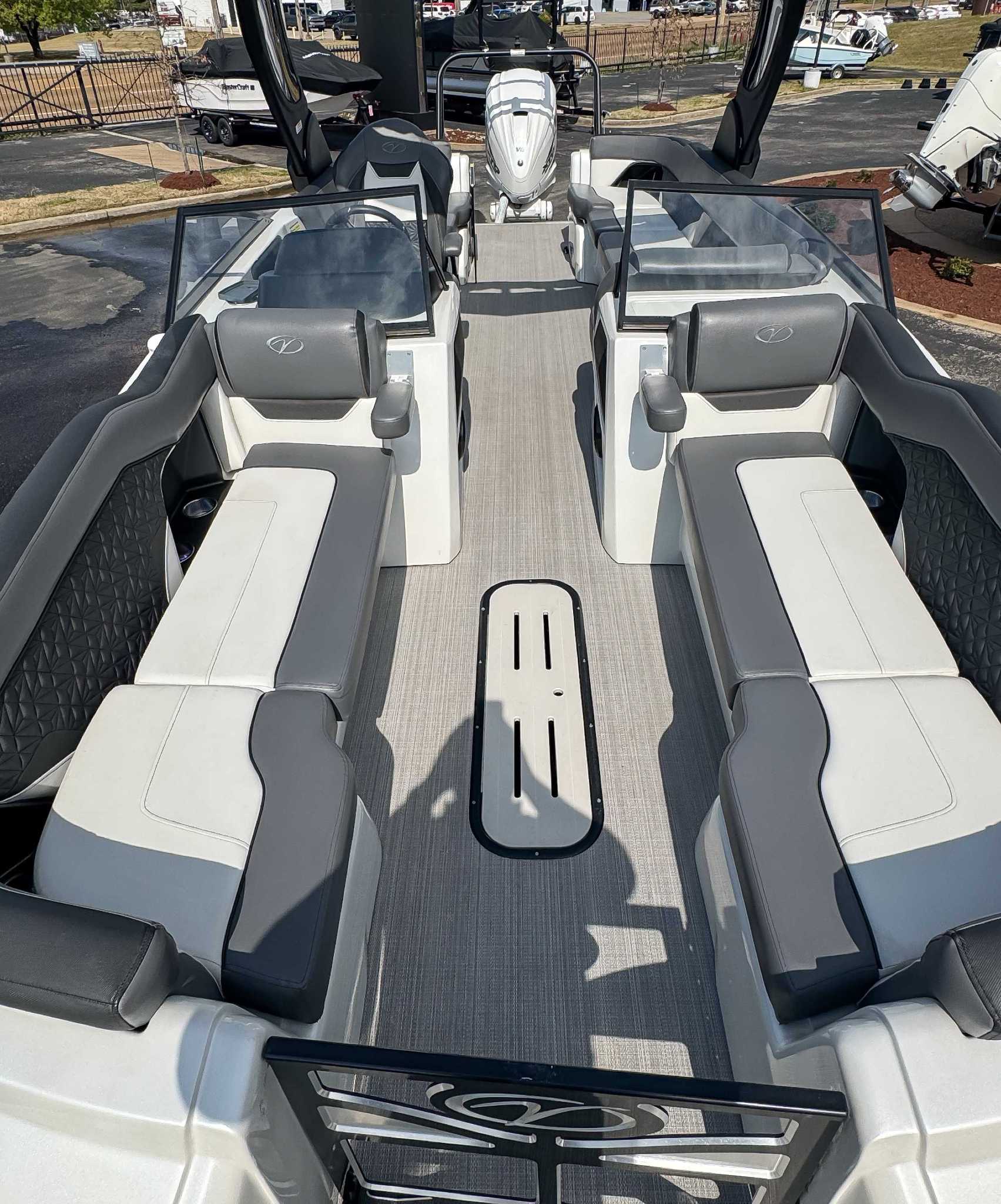 The 2023 Veranda V One combines top-tier performance with unmatched, rot-free durability, utilizing a patented all-aluminum, all-welded interlocking deck system that guarantees a lifetime of use. As Verandas flagship luxury model, it offers a sleek fiberglass exterior, high-end seating, and premium Wet Sounds audio, providing a luxurious experience for up to 14 passengers. Powered exclusively by reliable Yamaha outboards, this tri-toon delivers superior handling, speed, and comfort on the water. With a wo
