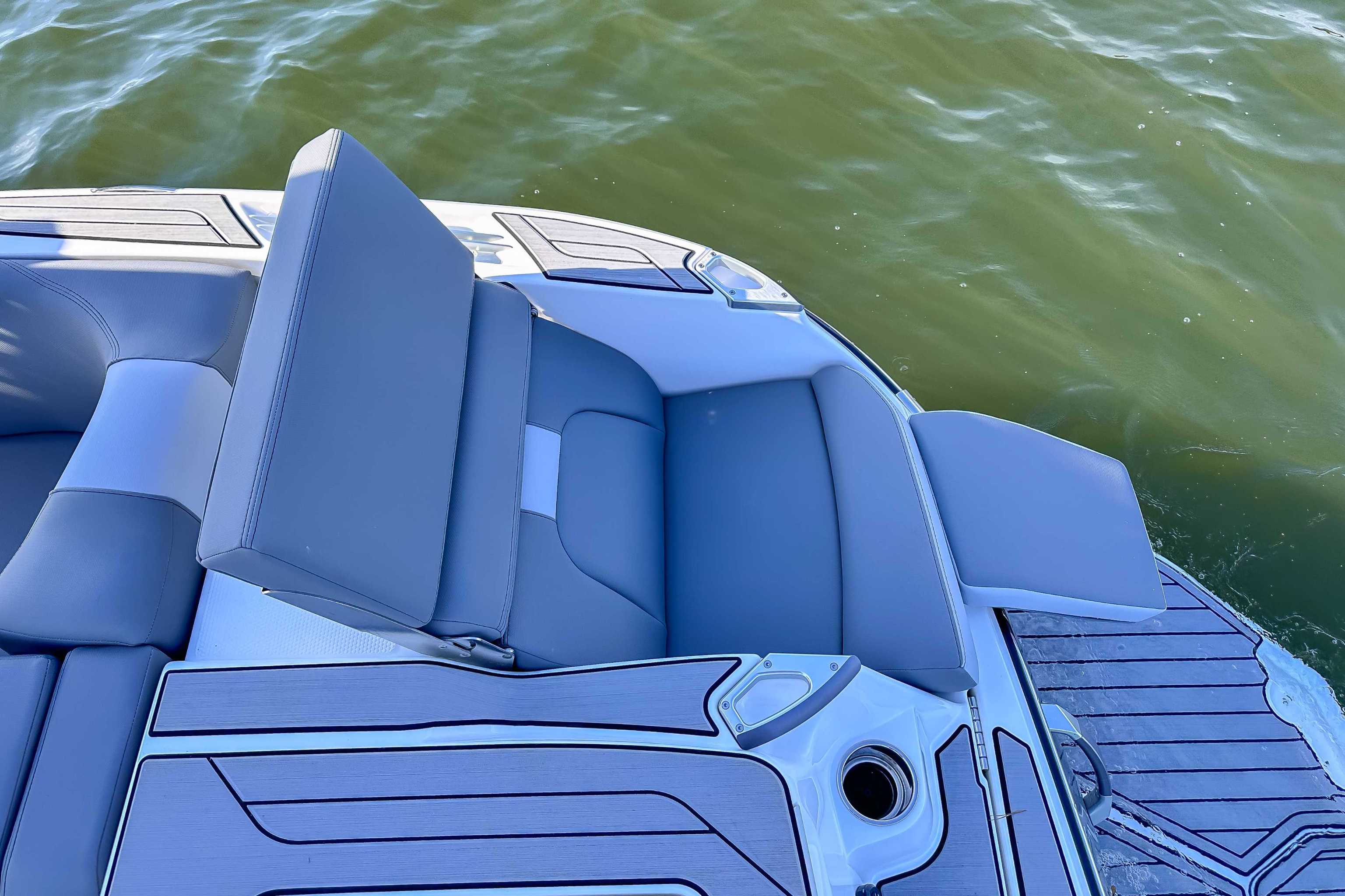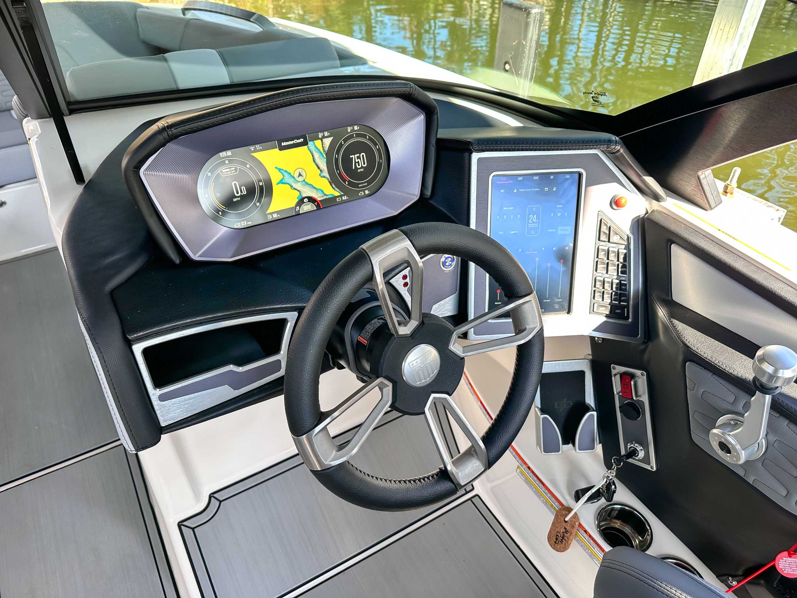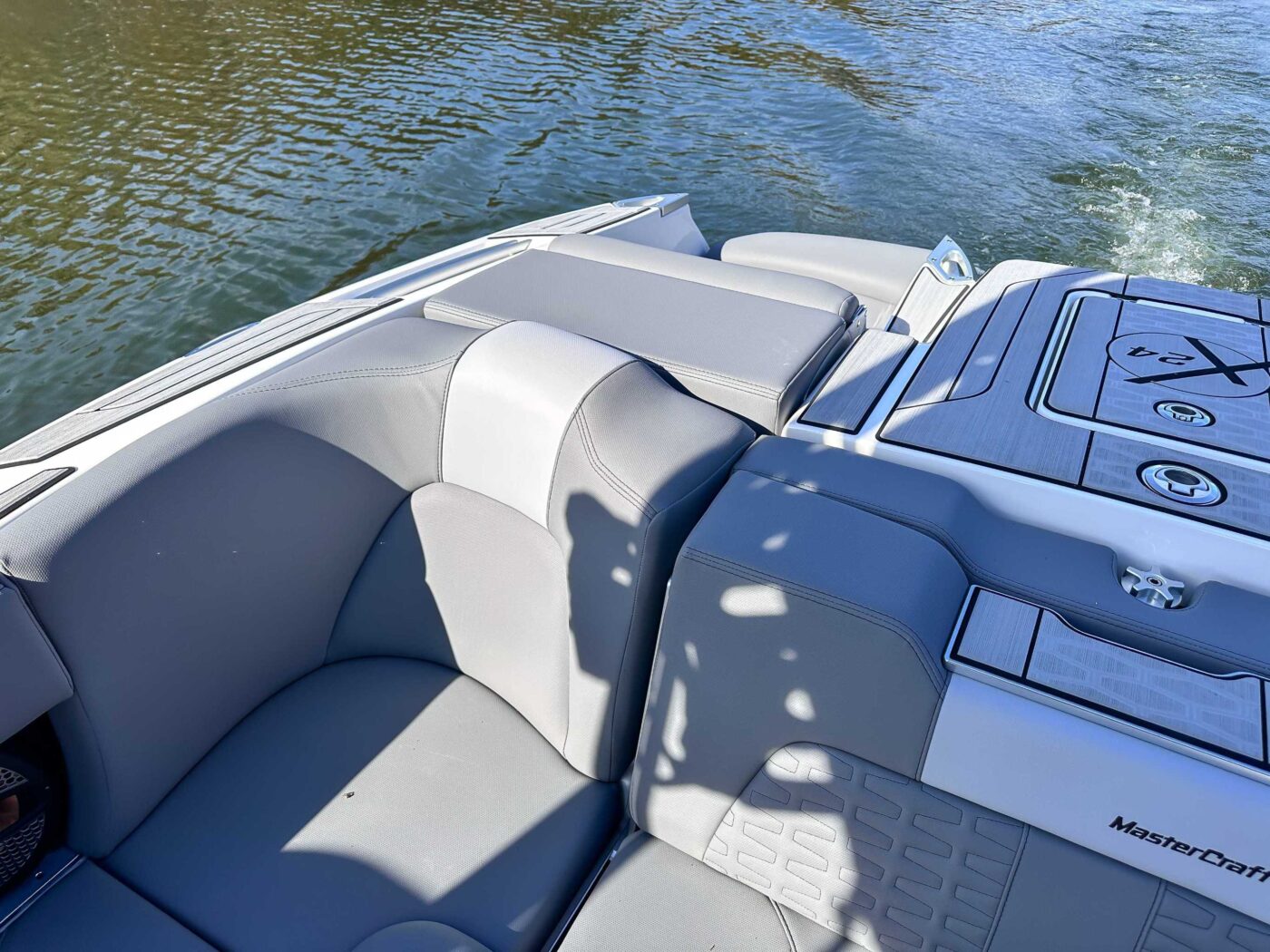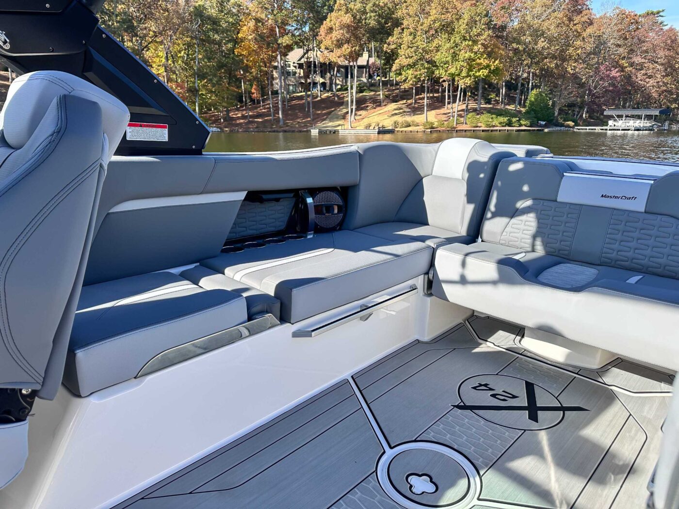 The 2024 MasterCraft X24 is a 24-foot luxury towboat designed for world-class wakesurfing and wakeboarding. It features a redesigned hull, the SurfStar system with 4,300 lbs of ballast, and an available Ilmor Supercharged 6.2L engine (up to 630hp) for powerful, customizable performance. The interior is plush, seating 18 people with CoolFeel vinyl, dual digital displays, Klipsch audio, and an optional stern thruster for effortless handling.