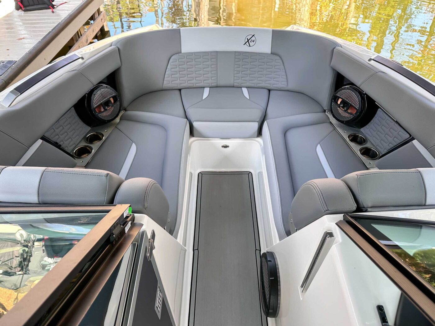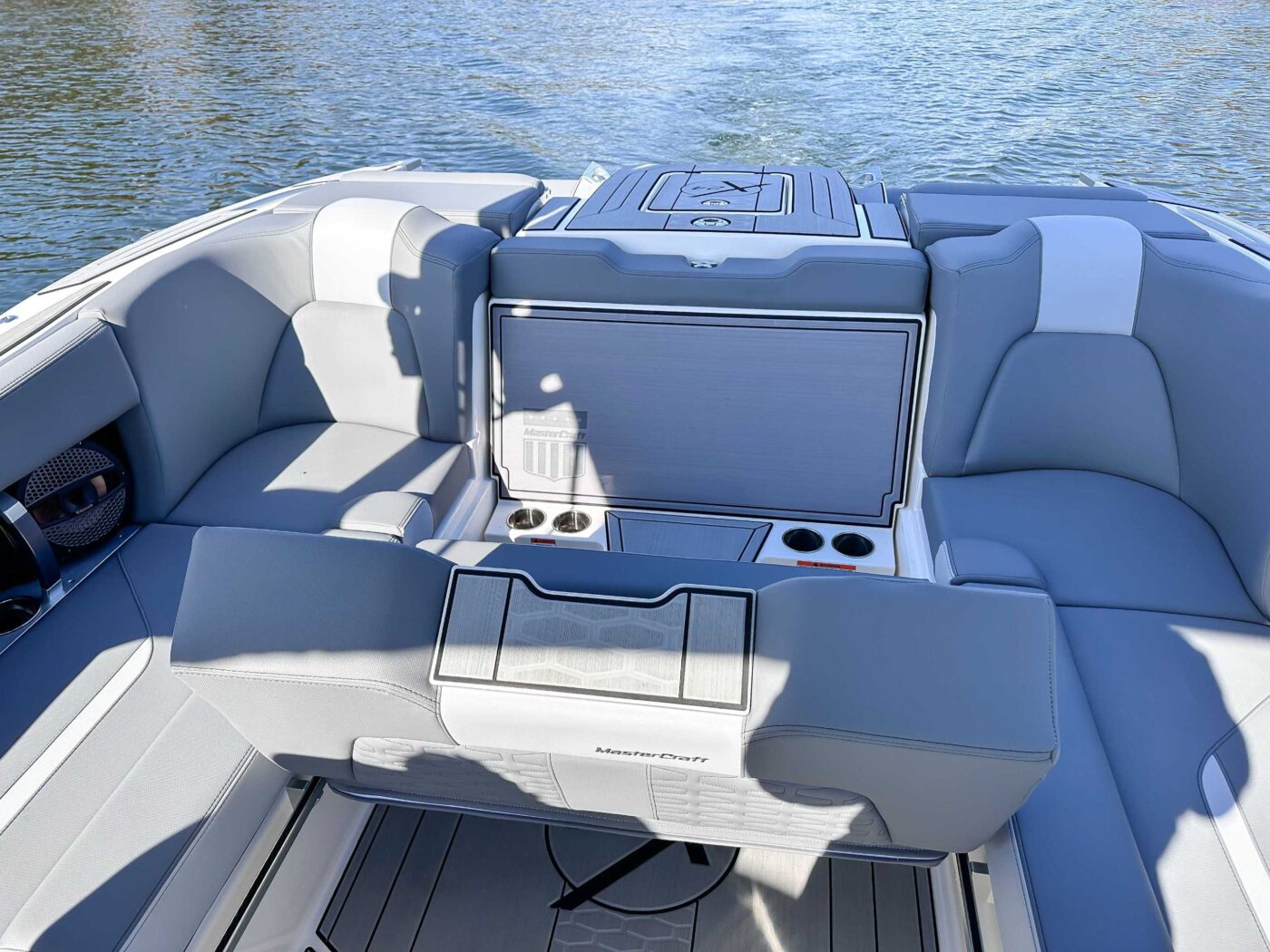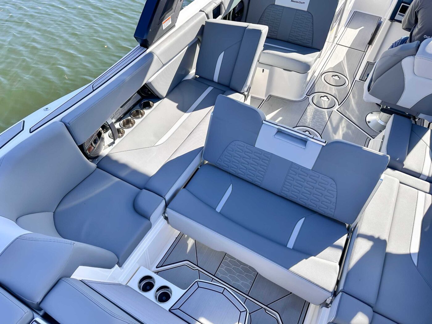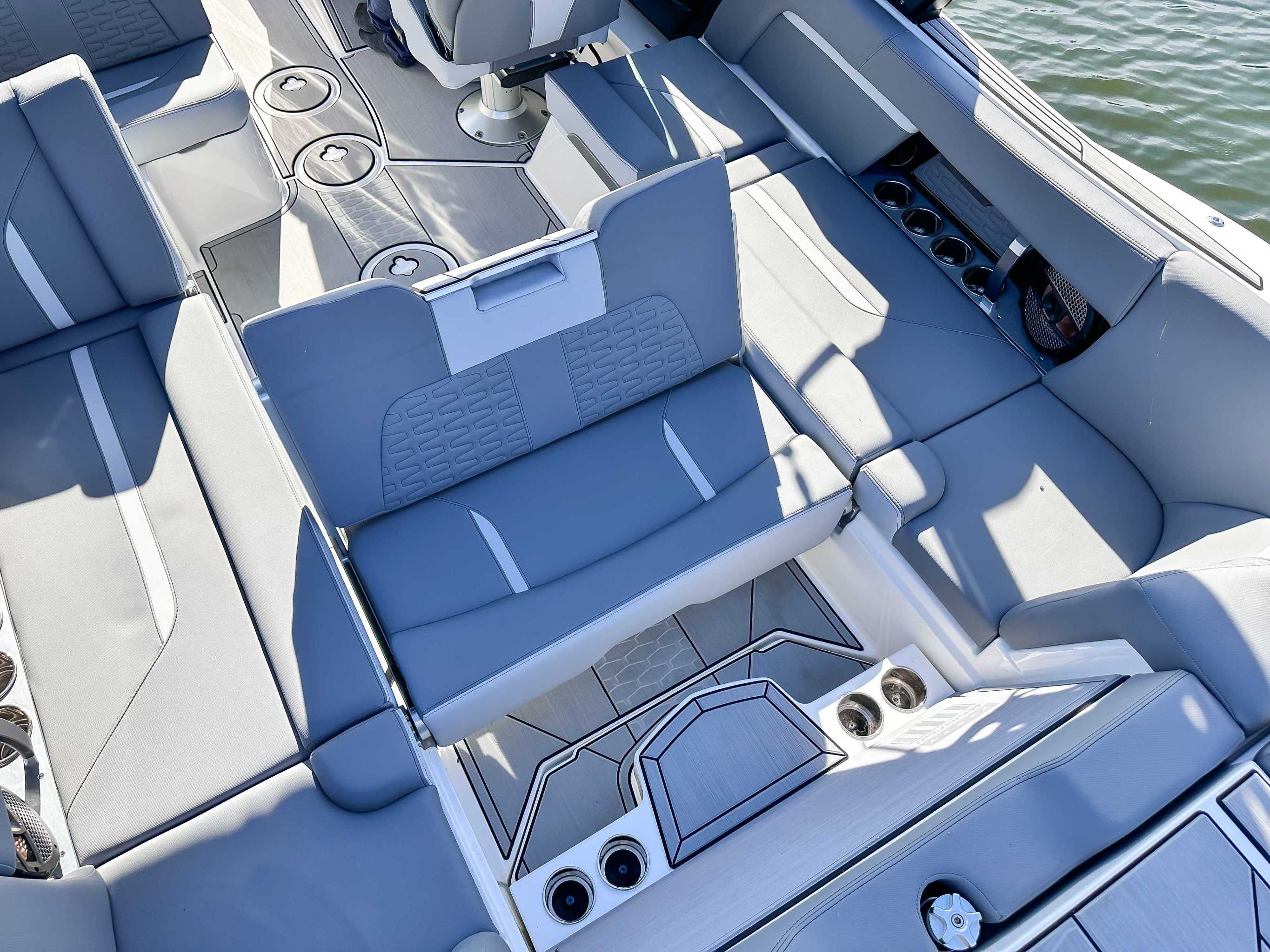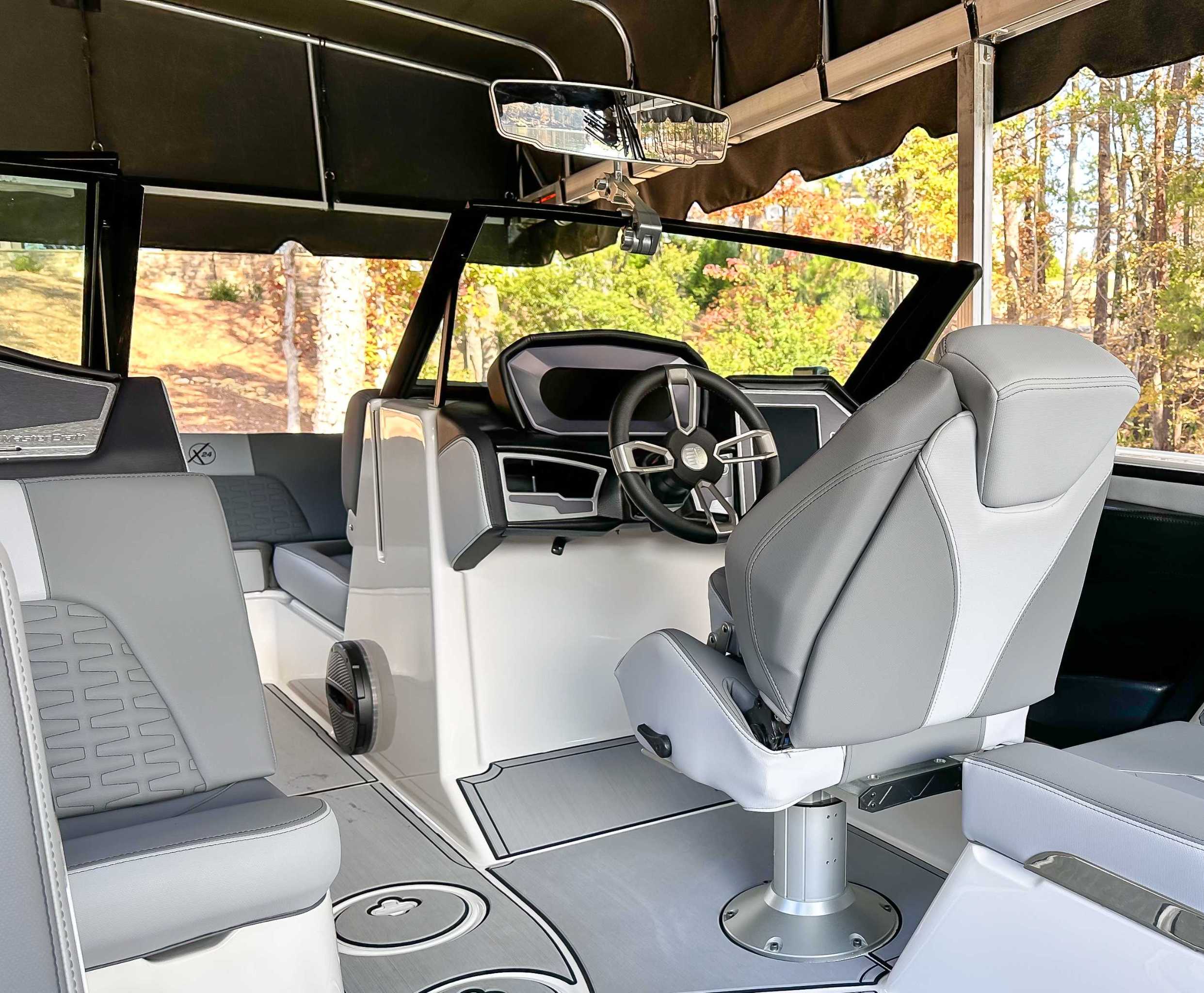 The 2024 MasterCraft X24 is a 24-foot luxury towboat designed for world-class wakesurfing and wakeboarding. It features a redesigned hull, the SurfStar system with 4,300 lbs of ballast, and an available Ilmor Supercharged 6.2L engine (up to 630hp) for powerful, customizable performance. The interior is plush, seating 18 people with CoolFeel vinyl, dual digital displays, Klipsch audio, and an optional stern thruster for effortless handling.