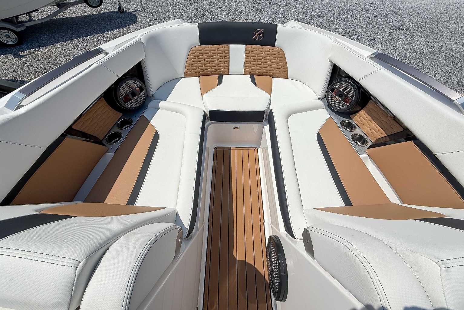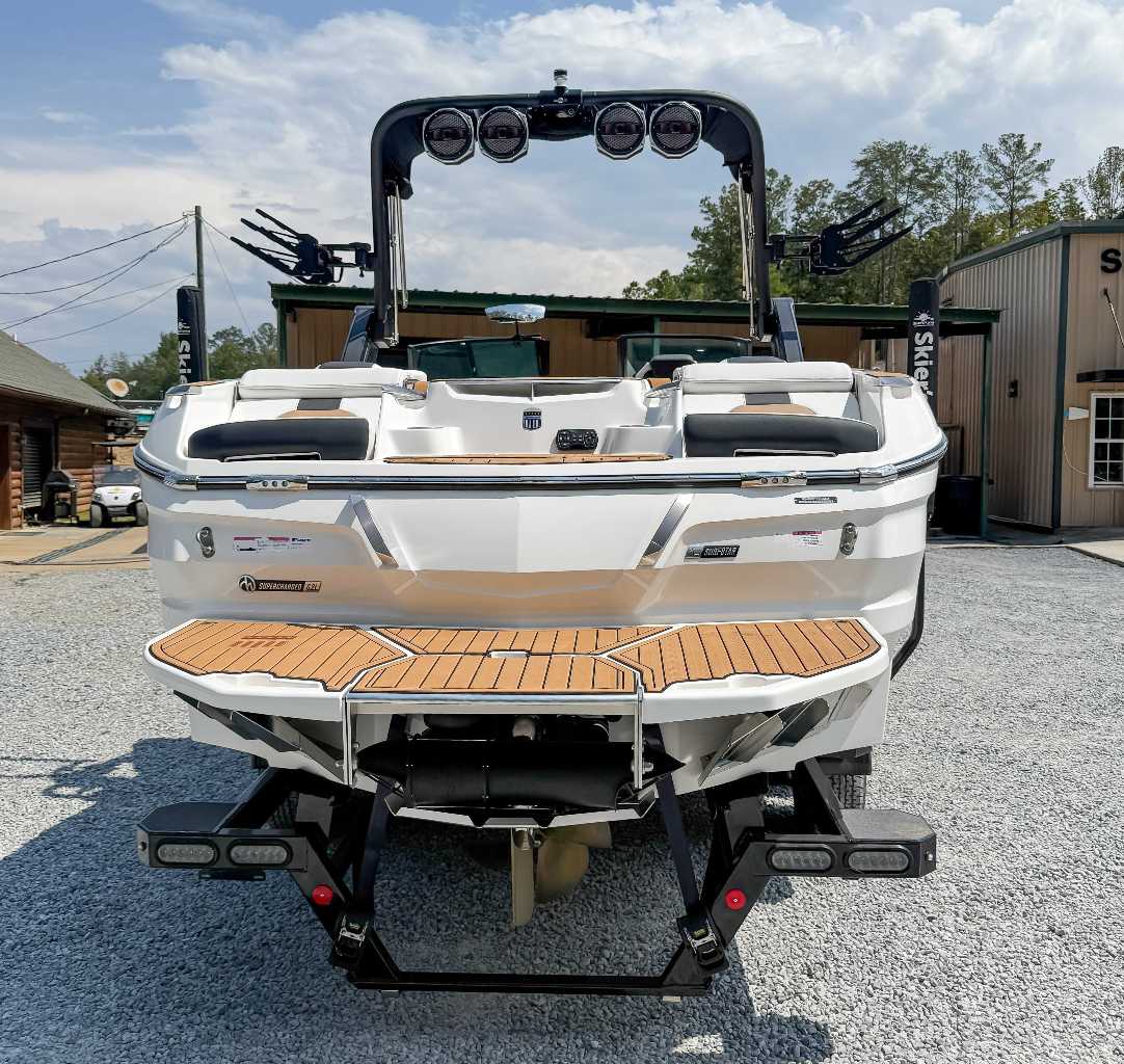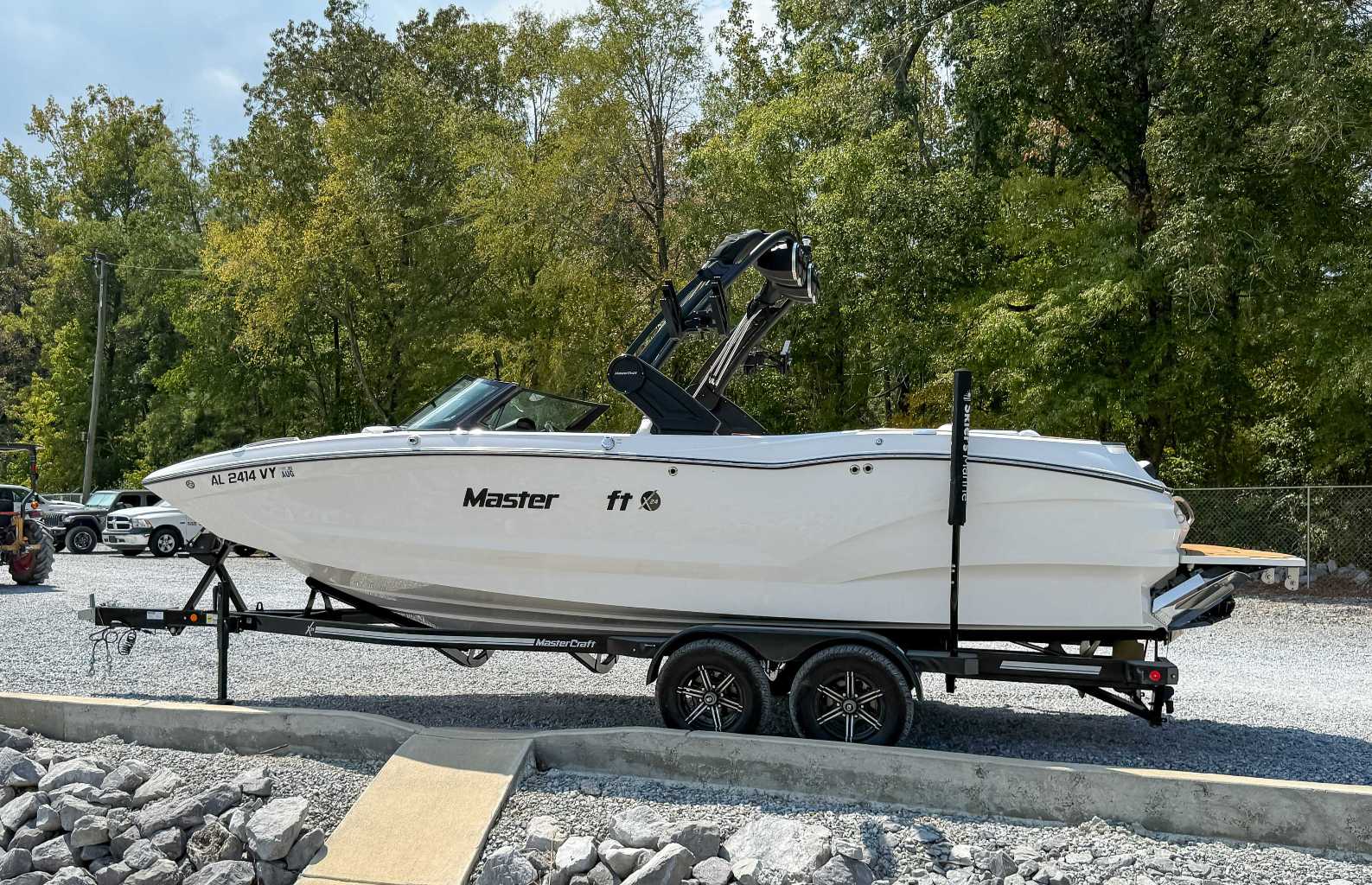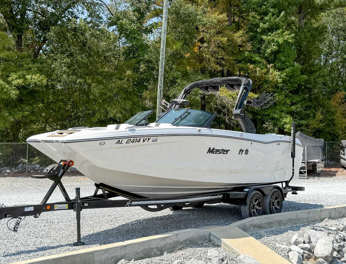 The 2024 MasterCraft X24 is a 24-foot luxury towboat designed for world-class wakesurfing and wakeboarding. It features a redesigned hull, the SurfStar system with 4,300 lbs of ballast, and an available Ilmor Supercharged 6.2L engine (up to 630hp) for powerful, customizable performance. The interior is plush, seating 18 people with CoolFeel vinyl, dual digital displays, Klipsch audio, and an optional stern thruster for effortless handling.
