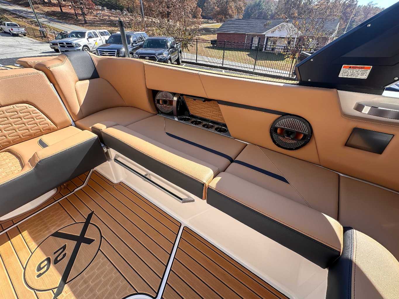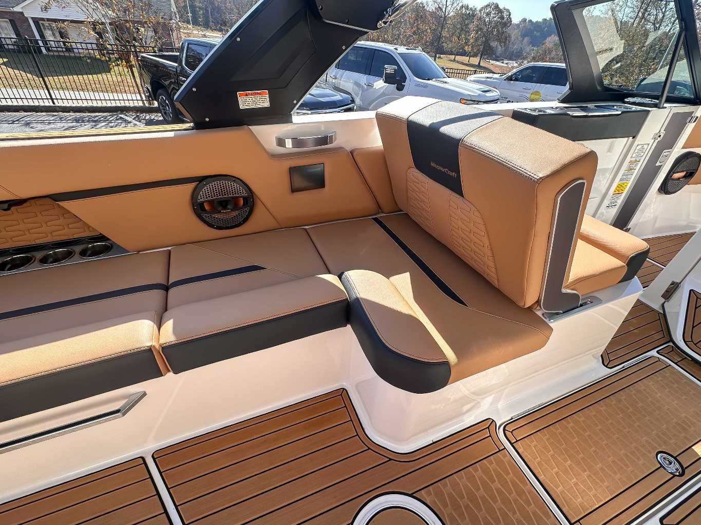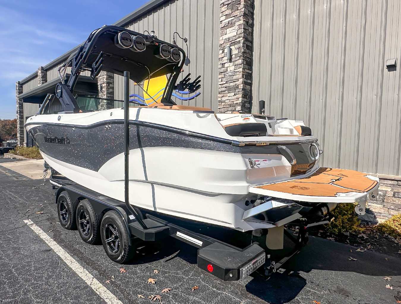 he 2024 MasterCraft X26 is a 26-foot, yacht-certified luxury towboat for those who demand the best. It boasts a massive 18-person capacity and delivers world-class wakes and waves with the SurfStar system. It features premium amenities like an optional head, refrigerator, and stern thruster, all wrapped in a classy, commanding style with a deep-V hull.