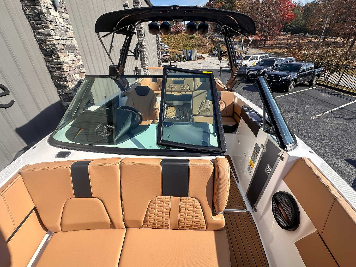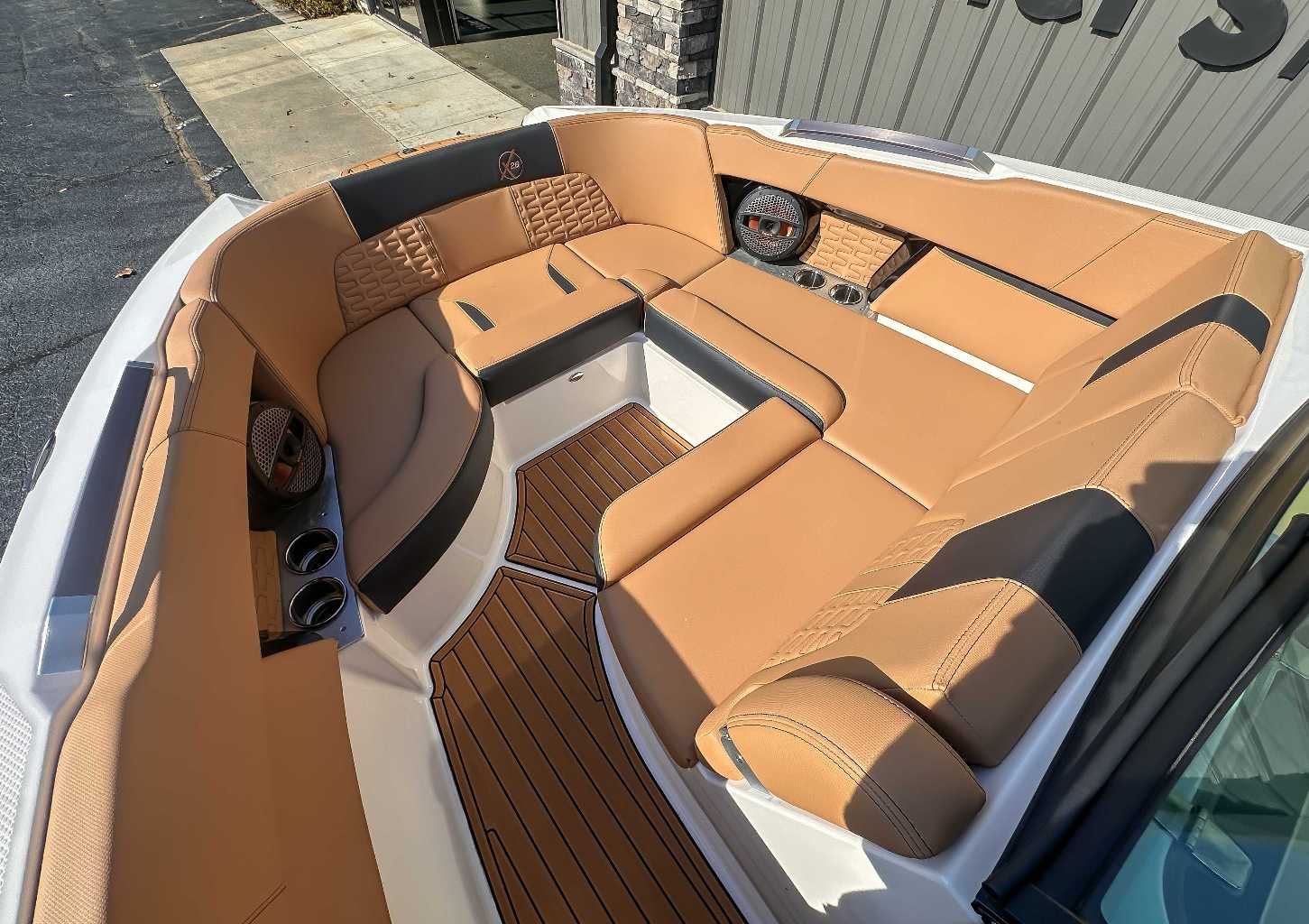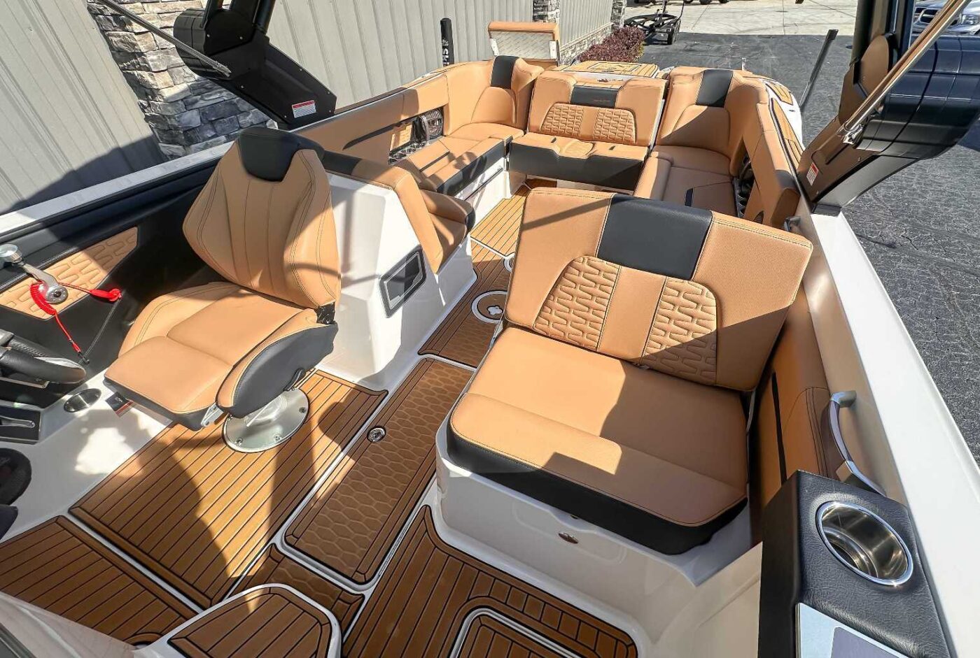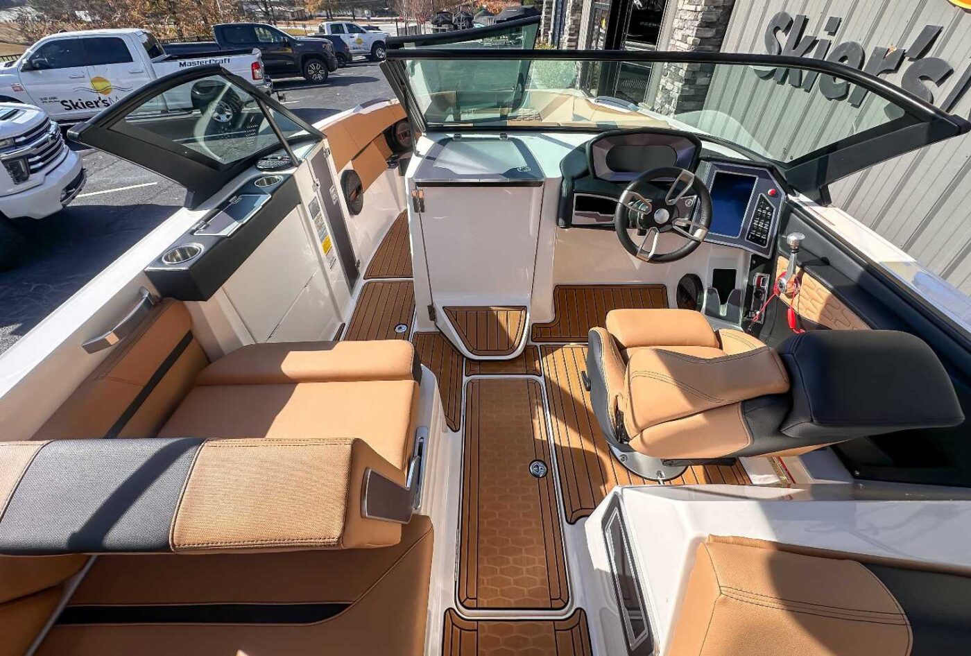 he 2024 MasterCraft X26 is a 26-foot, yacht-certified luxury towboat for those who demand the best. It boasts a massive 18-person capacity and delivers world-class wakes and waves with the SurfStar system. It features premium amenities like an optional head, refrigerator, and stern thruster, all wrapped in a classy, commanding style with a deep-V hull.