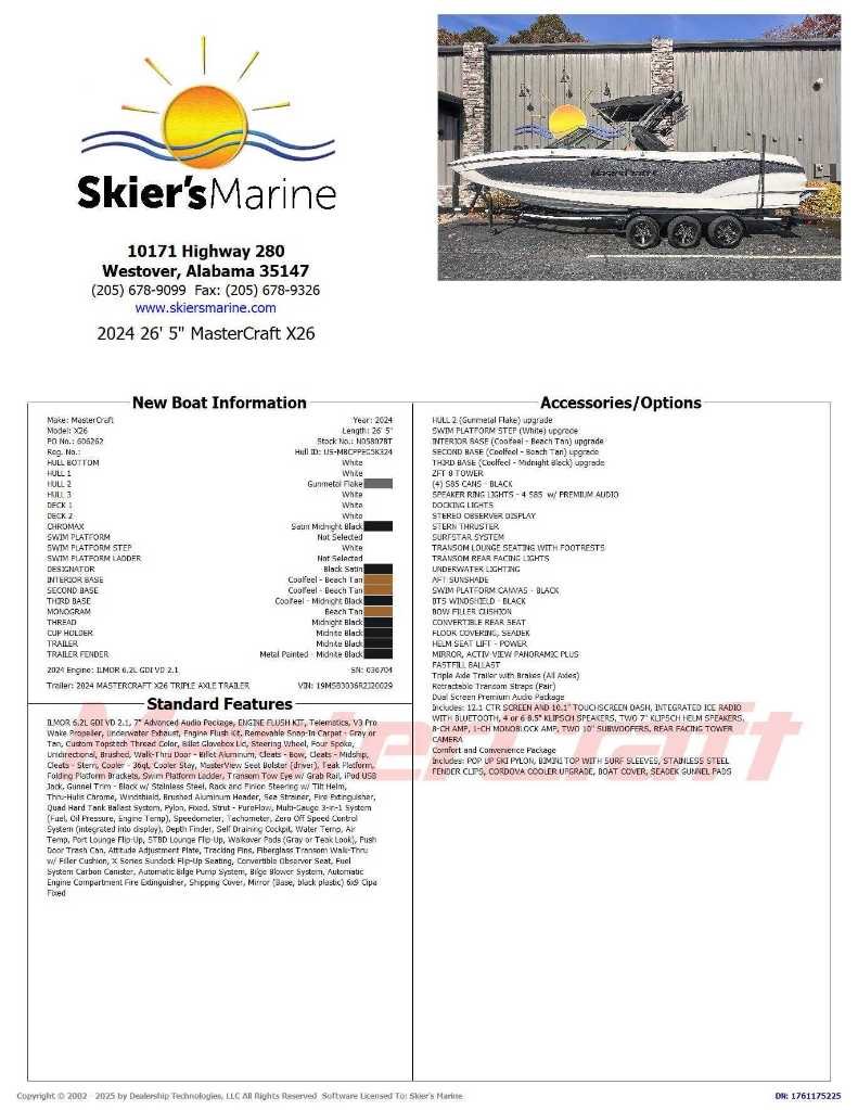 Skier's Marine is an award-winning ski boat, pontoon boat, and runabout sport boat dealer for brands like MasterCraft, Supra, Moomba, Chaparral, Harris, Premier, and Boston Whaler. We are not responsible for any pricing, options, specifications, or other listing errors on our site. Please contact us to confirm all details.