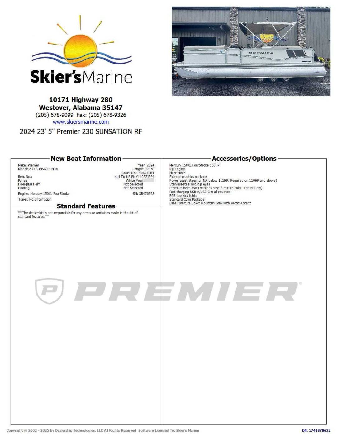 Skier's Marine is an award-winning ski boat, pontoon boat, and runabout sport boat dealer for brands like MasterCraft, Supra, Moomba, Chaparral, Harris, Premier, and Boston Whaler. We are not responsible for any pricing, options, specifications, or other listing errors on our site. Please contact us to confirm all details.