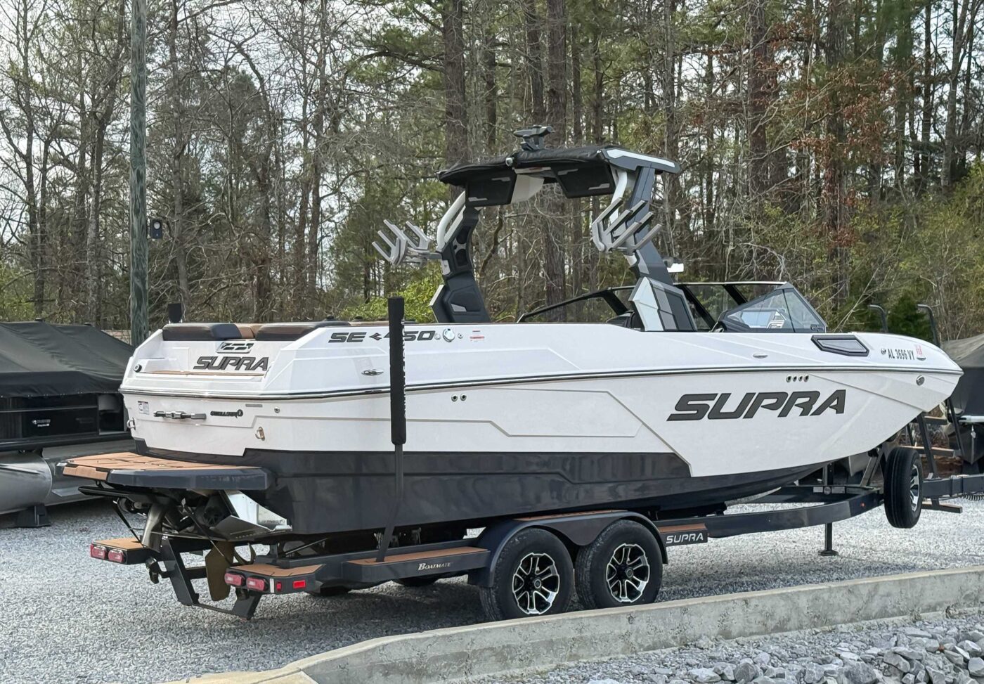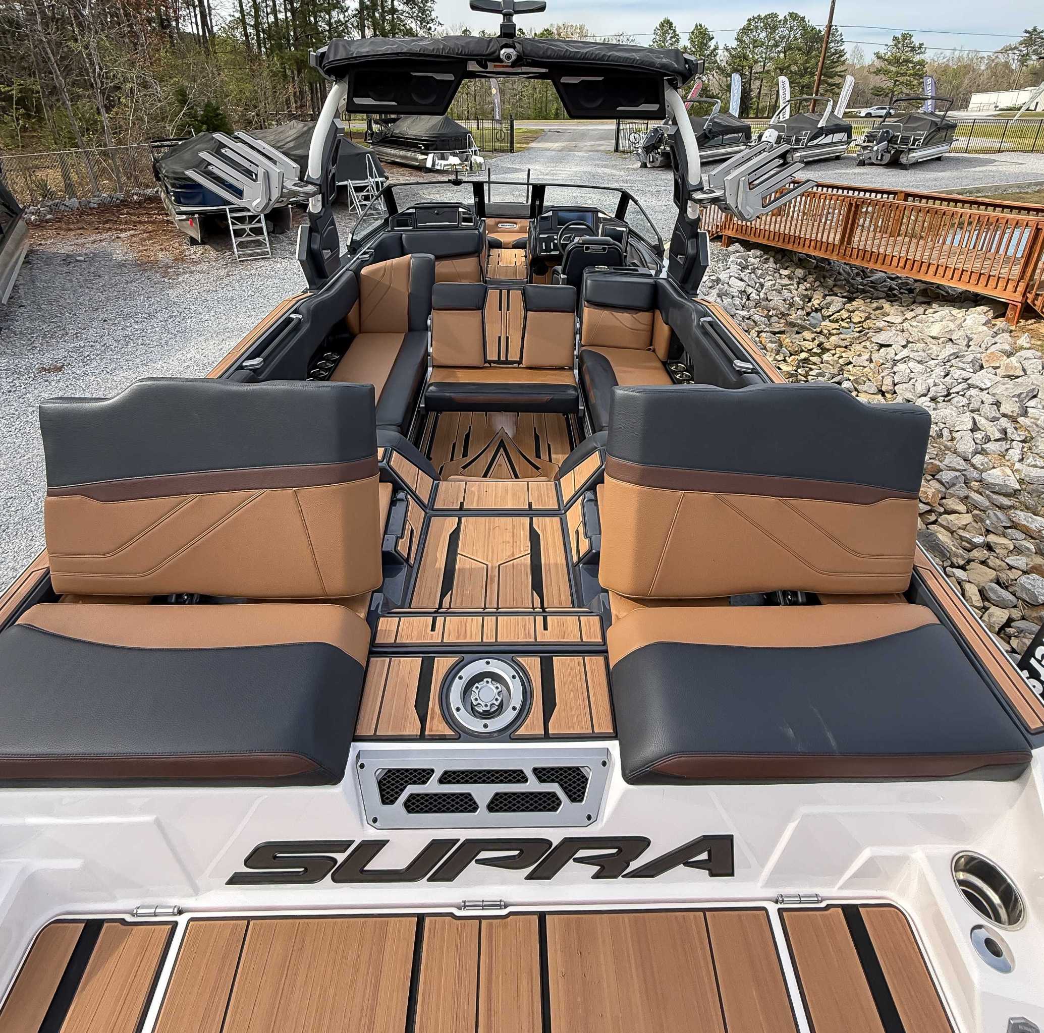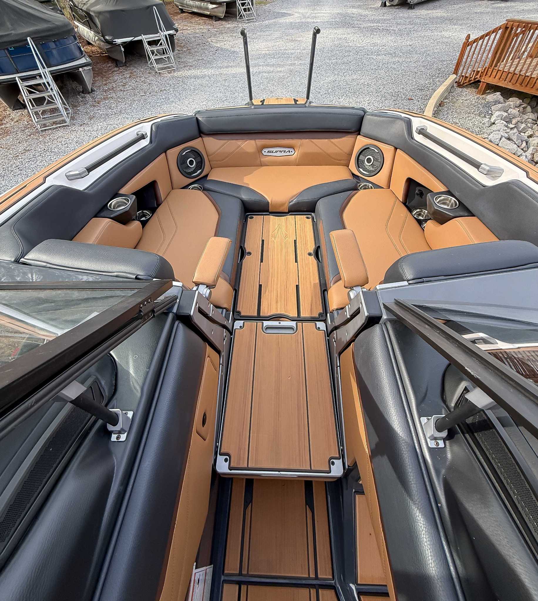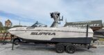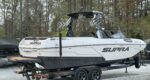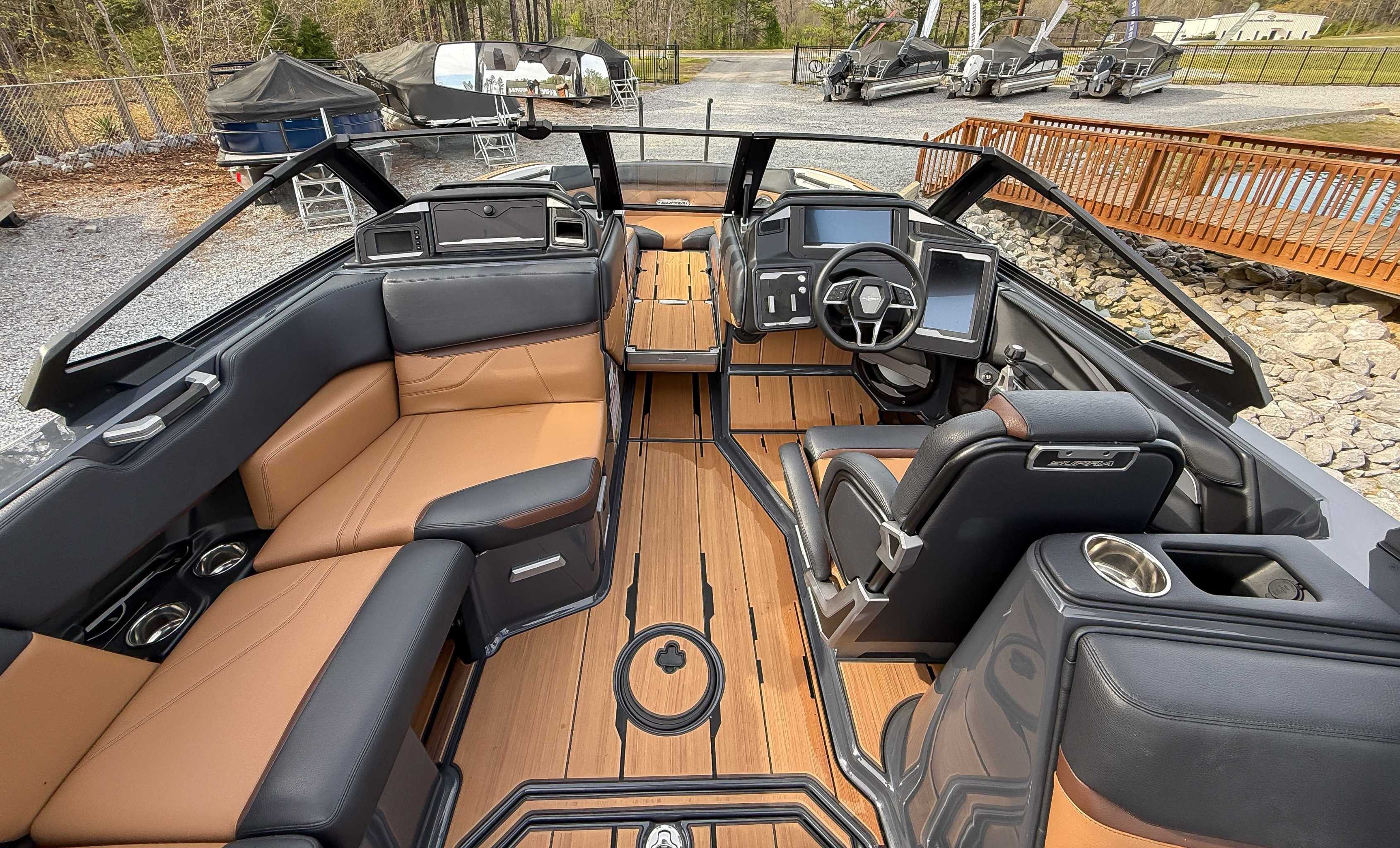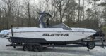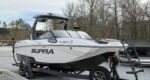 The 2024 Supra SE is the ultimate luxury wakeboat, blending 24.5-foot luxury with high-performance, seating up to 18. Its 4,700 lbs of subfloor ballast and Raptor by Indmar engine create professional-level wakes with ease. Key features like the patented AutoWake and Swell 3.0 system ensure perfect surf waves, while the "DropStep" provides easy access. With electric power-assist steering, a premium stereo, and intuitive touchscreen controls, it offers unmatched comfort, tech, and performance.