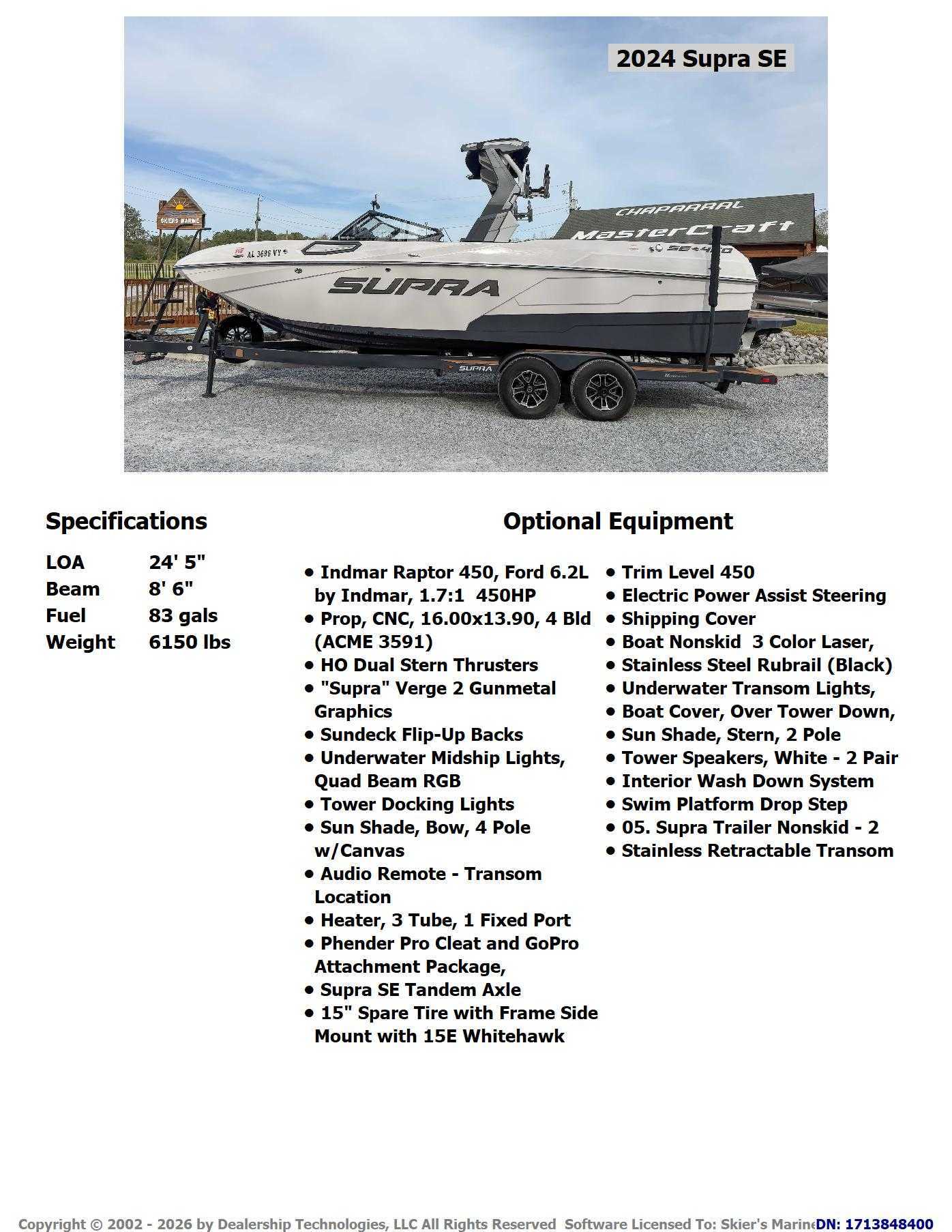 Skier's Marine is an award-winning ski boat, pontoon boat, and runabout sport boat dealer for brands like MasterCraft, Supra, Moomba, Chaparral, Harris, Premier, and Boston Whaler. We are not responsible for any pricing, options, specifications, or other listing errors on our site. Please contact us to confirm all details.