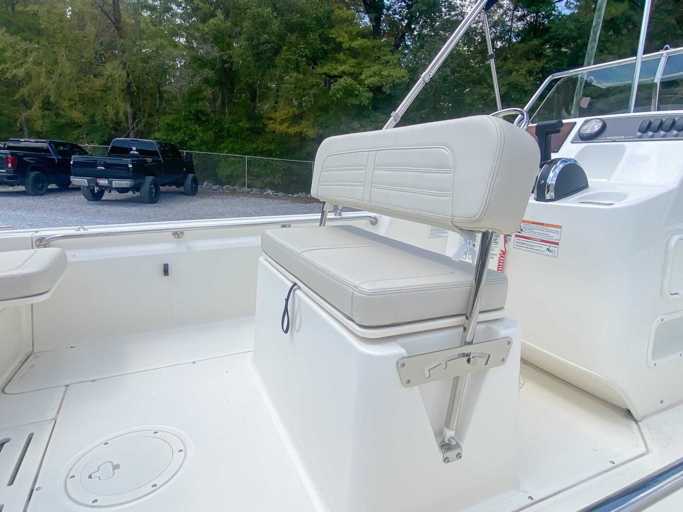 • Reversible pilot seat with locking backrest and storage underneath – includes 2 rod holders