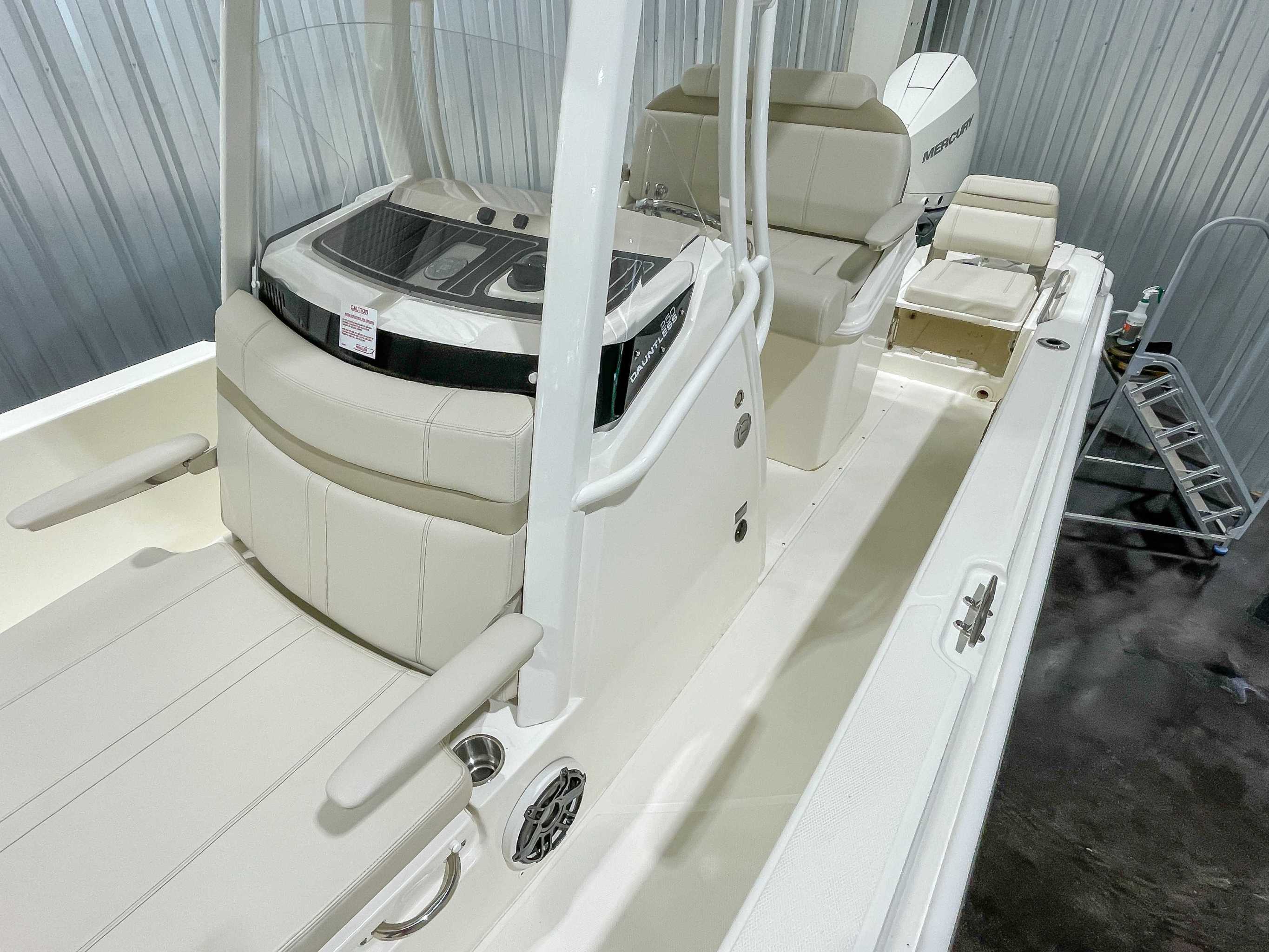FIBERGLASS HARDTOP (dome light (red and white), lifejacket storage, Watersports tow point & rod holders (4))