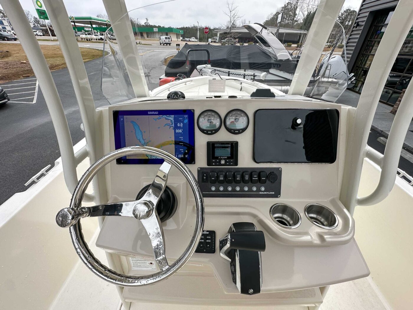 FIBERGLASS HARDTOP (dome light (red and white), lifejacket storage, Watersports tow point & rod holders (4))