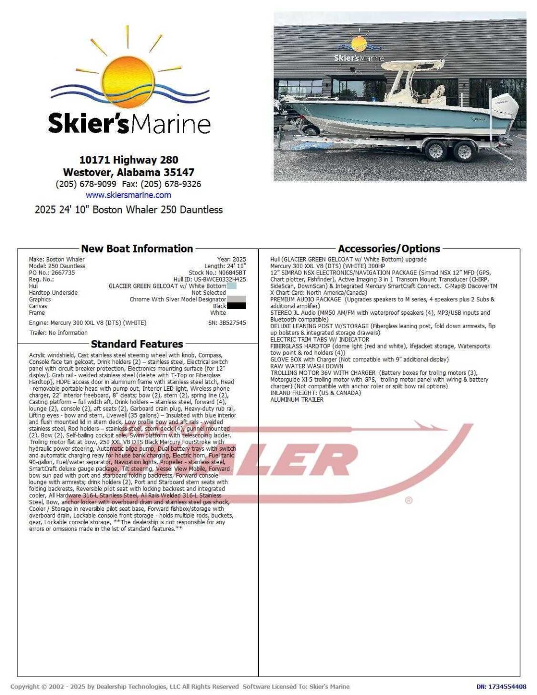 Skier's Marine is an award-winning ski boat, pontoon boat, and runabout sport boat dealer for brands like MasterCraft, Supra, Moomba, Chaparral, Harris, Premier, and Boston Whaler. We are not responsible for any pricing, options, specifications, or other listing errors on our site. Please contact us to confirm all details.