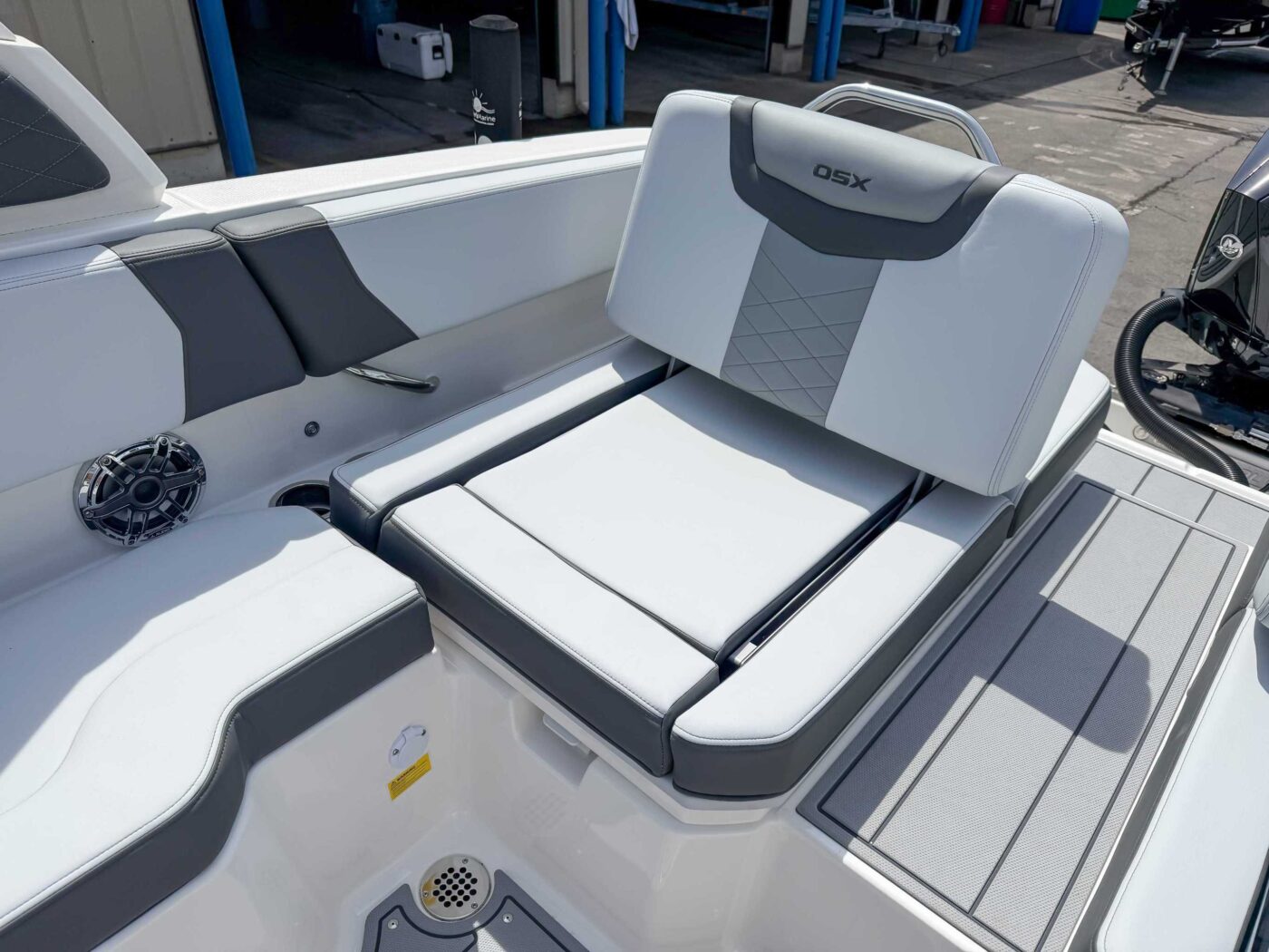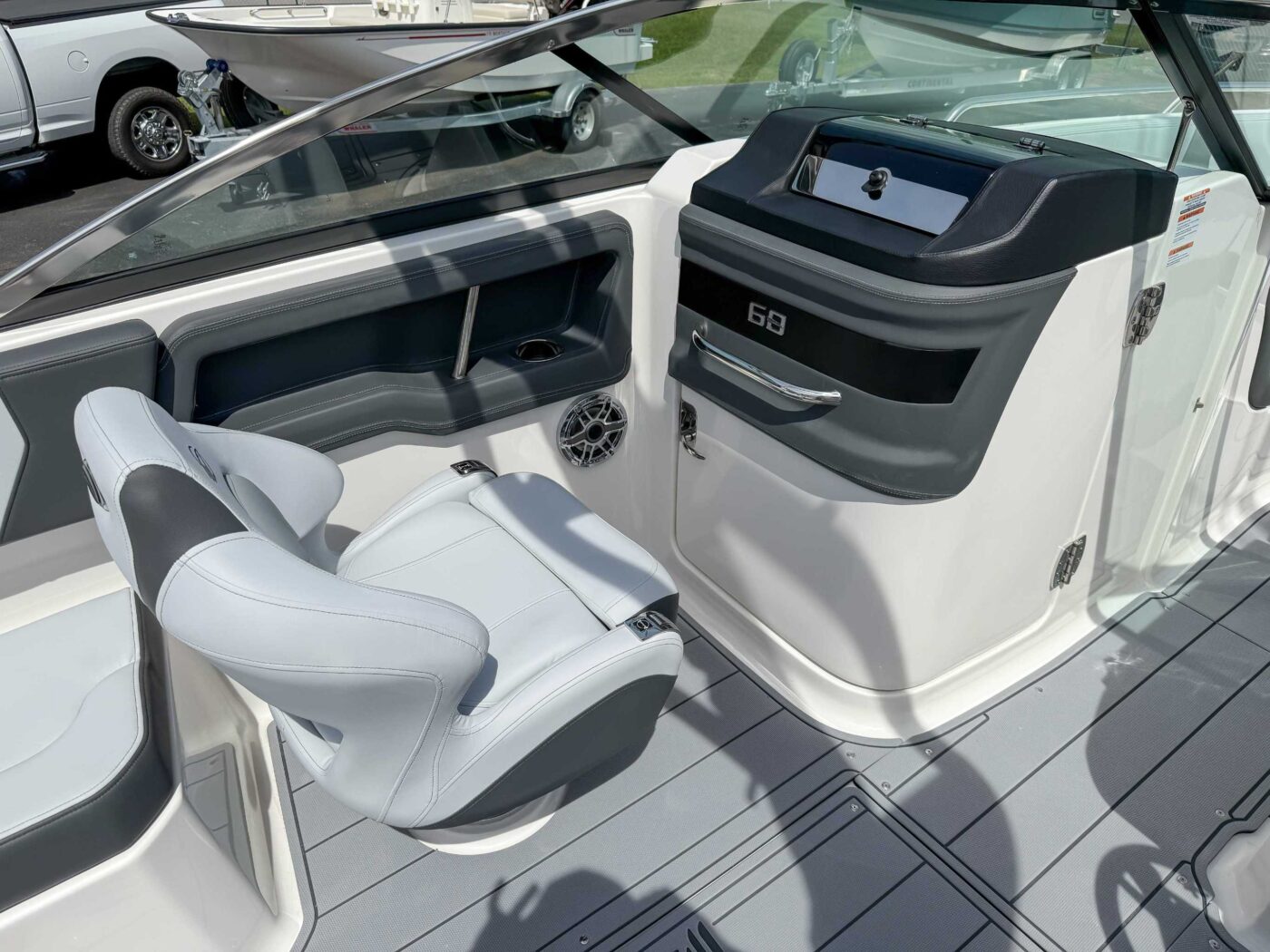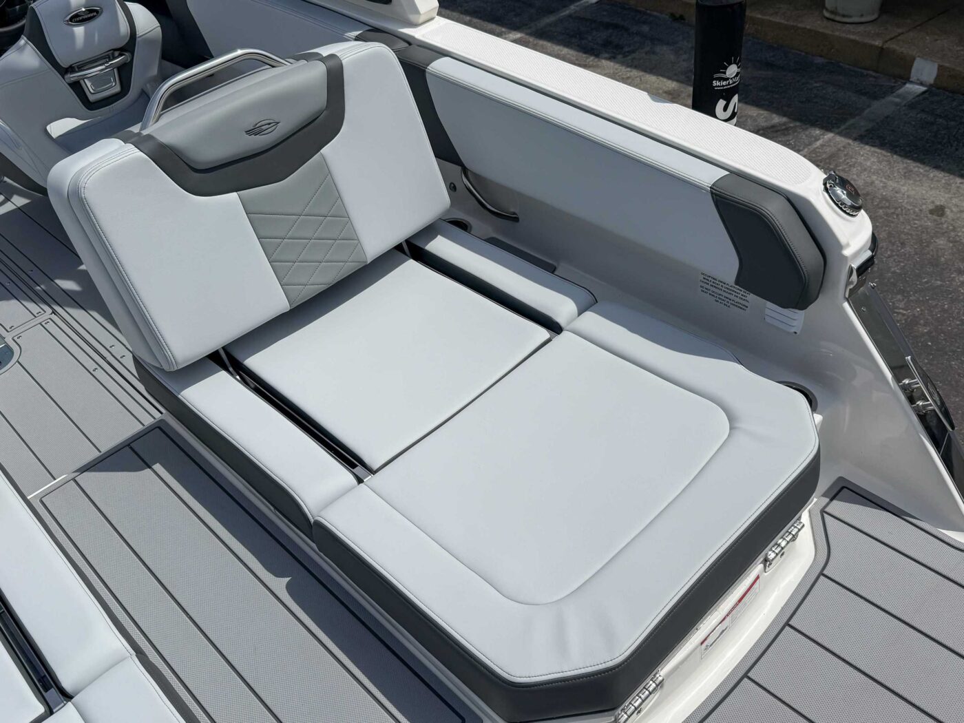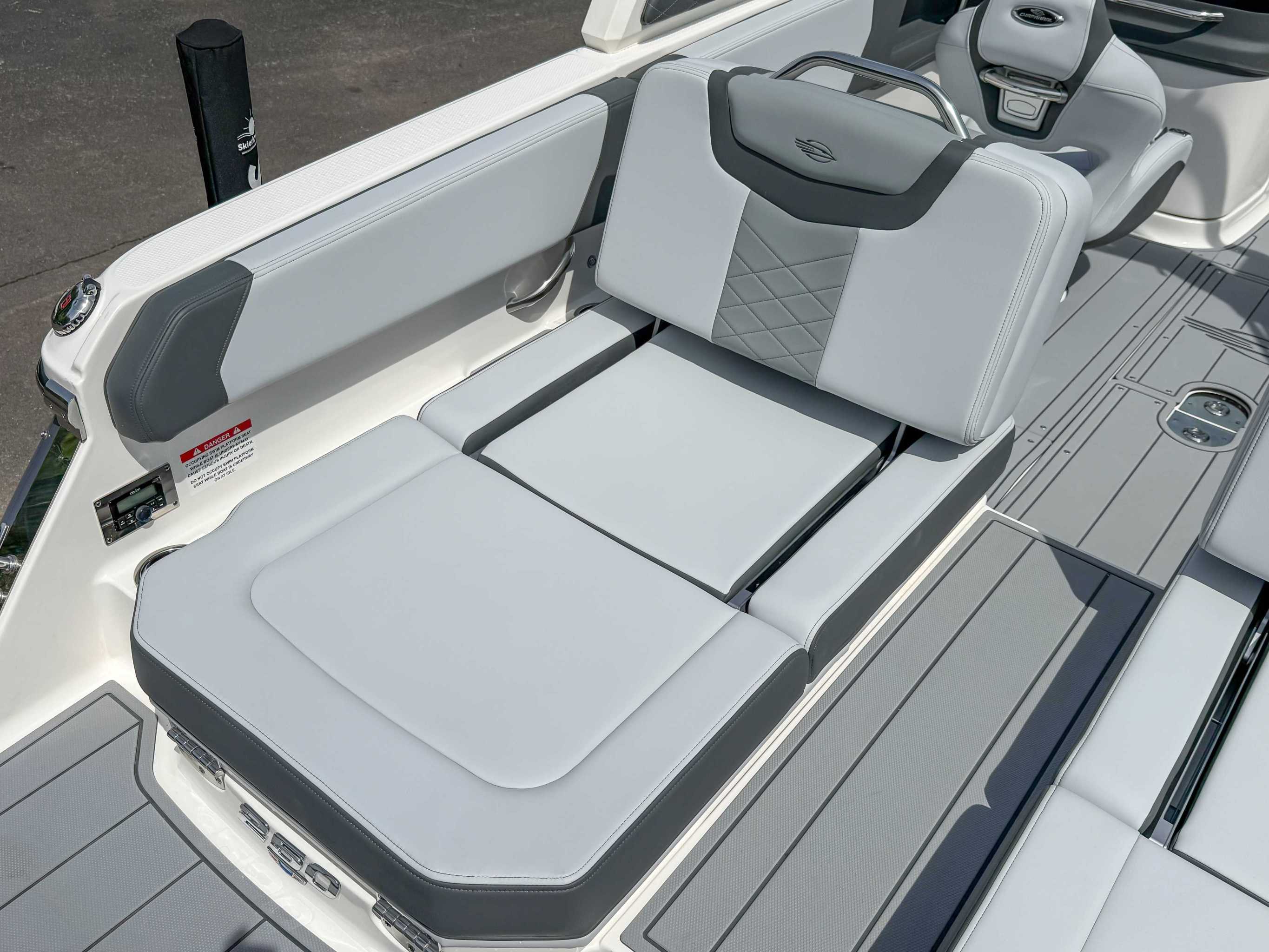 Cockpit Layout – Helm Bucket Seats with Logo Badging and U-Shaped Aft Bench Seat