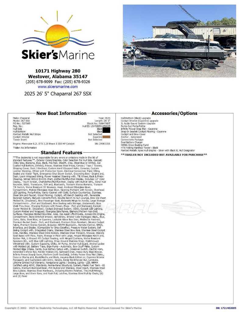 Skier's Marine is an award-winning ski boat, pontoon boat, and runabout sport boat dealer for brands like MasterCraft, Supra, Moomba, Chaparral, Harris, Premier, and Boston Whaler. We are not responsible for any pricing, options, specifications, or other listing errors on our site. Please contact us to confirm all details.