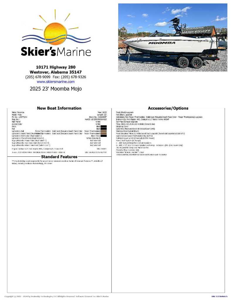 Skier's Marine is an award-winning ski boat, pontoon boat, and runabout sport boat dealer for brands like MasterCraft, Supra, Moomba, Chaparral, Harris, Premier, and Boston Whaler. We are not responsible for any pricing, options, specifications, or other listing errors on our site. Please contact us to confirm all details.