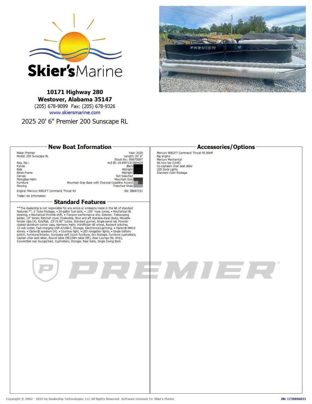 2025 Premier 200 Sunscape RL N06750BT