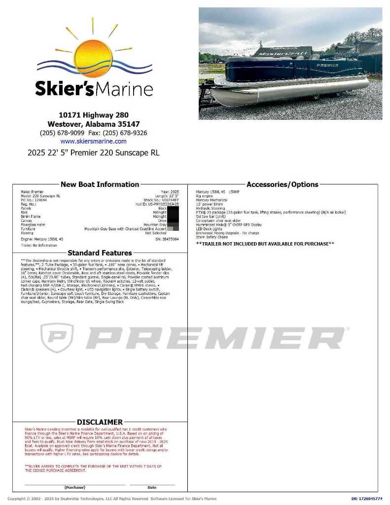 Skier's Marine is an award-winning ski boat, pontoon boat, and runabout sport boat dealer for brands like MasterCraft, Supra, Moomba, Chaparral, Harris, Premier, and Boston Whaler. We are not responsible for any pricing, options, specifications, or other listing errors on our site. Please contact us to confirm all details.