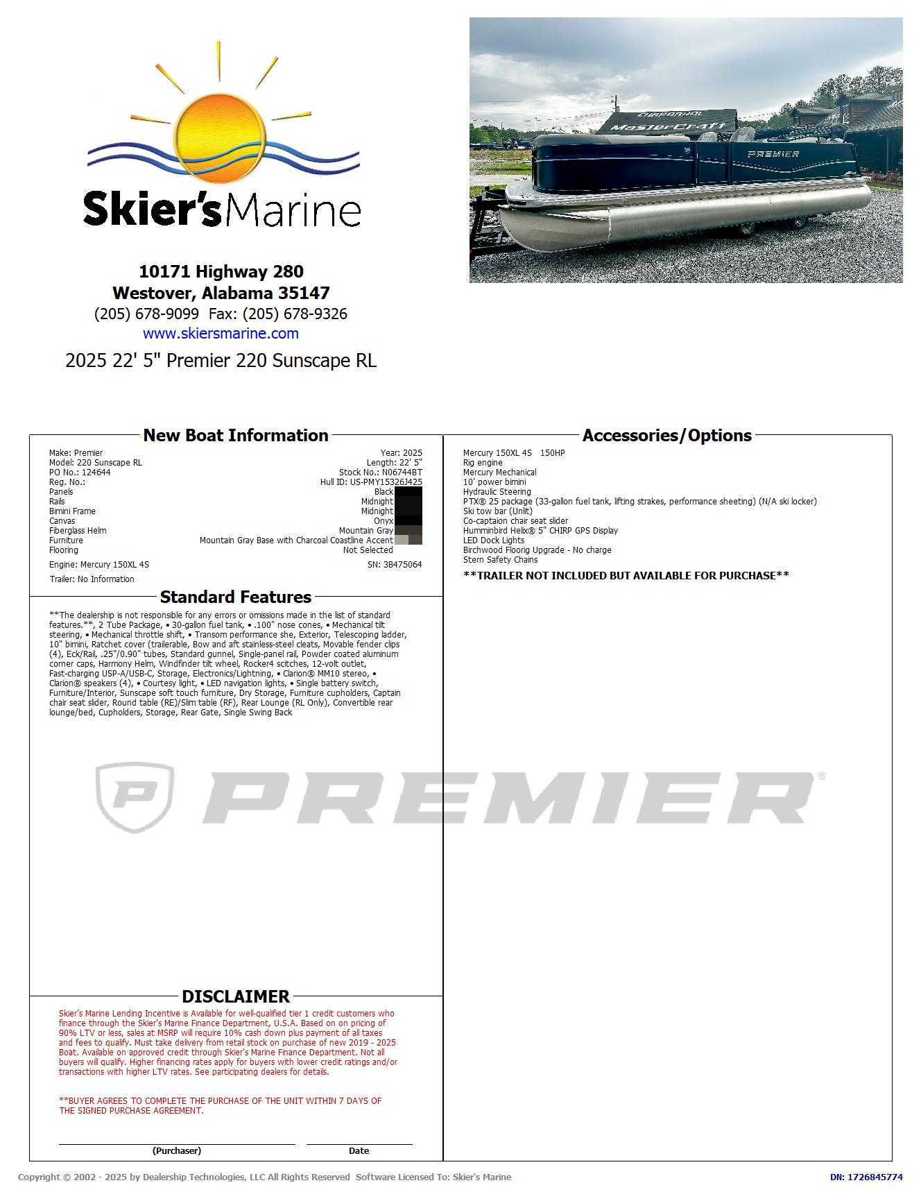 The 2025 Premier 220 Sunscape blends performance with luxurious comfort, making it a premier choice for discerning boaters. Its spacious design and innovative amenities are perfect for family outings and entertaining friends. This tri-toon excels in stability and handling, ensuring a smooth, enjoyable ride on the water. It offers impressive versatility for lounging, cruising, or enjoying water sports, providing a fantastic value for your investment in unforgettable aquatic adventures.