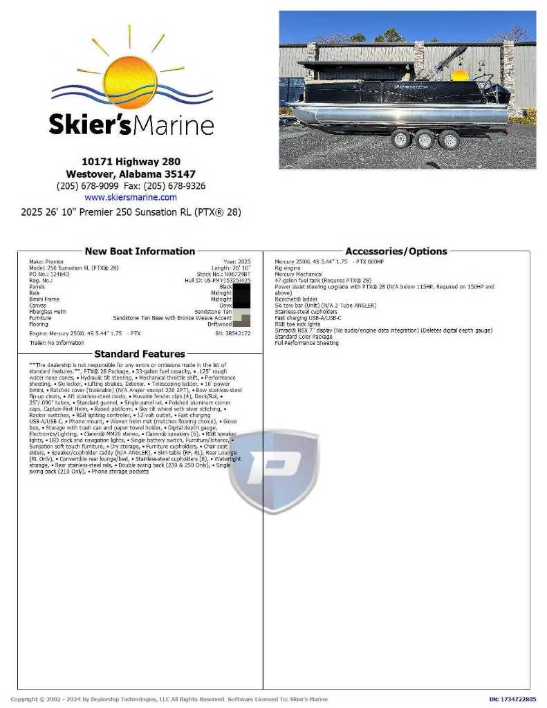 2025 Premier 250 Sunsation RL (PTX 28) N06729BT