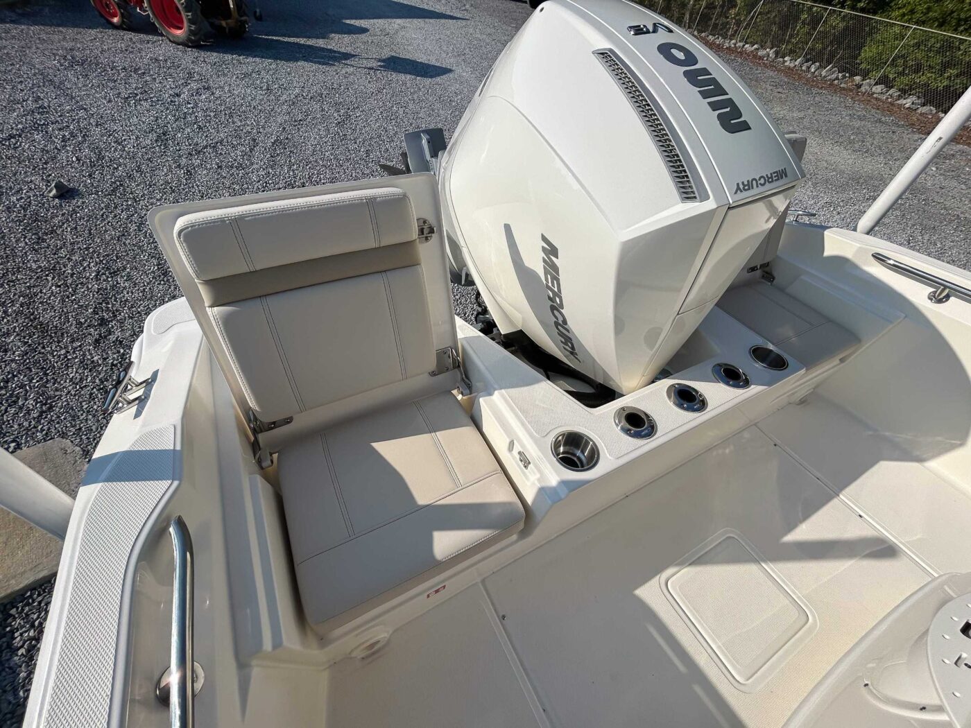 DELUXE LEANING POST W/LIVEWELL (Fiberglass base, fold down armrests, livewell (30 gallon) with blue interior & stainless steel rod holders (4), cup holderts (2), knife & leader holder & raw water washdown (located on stern deck))