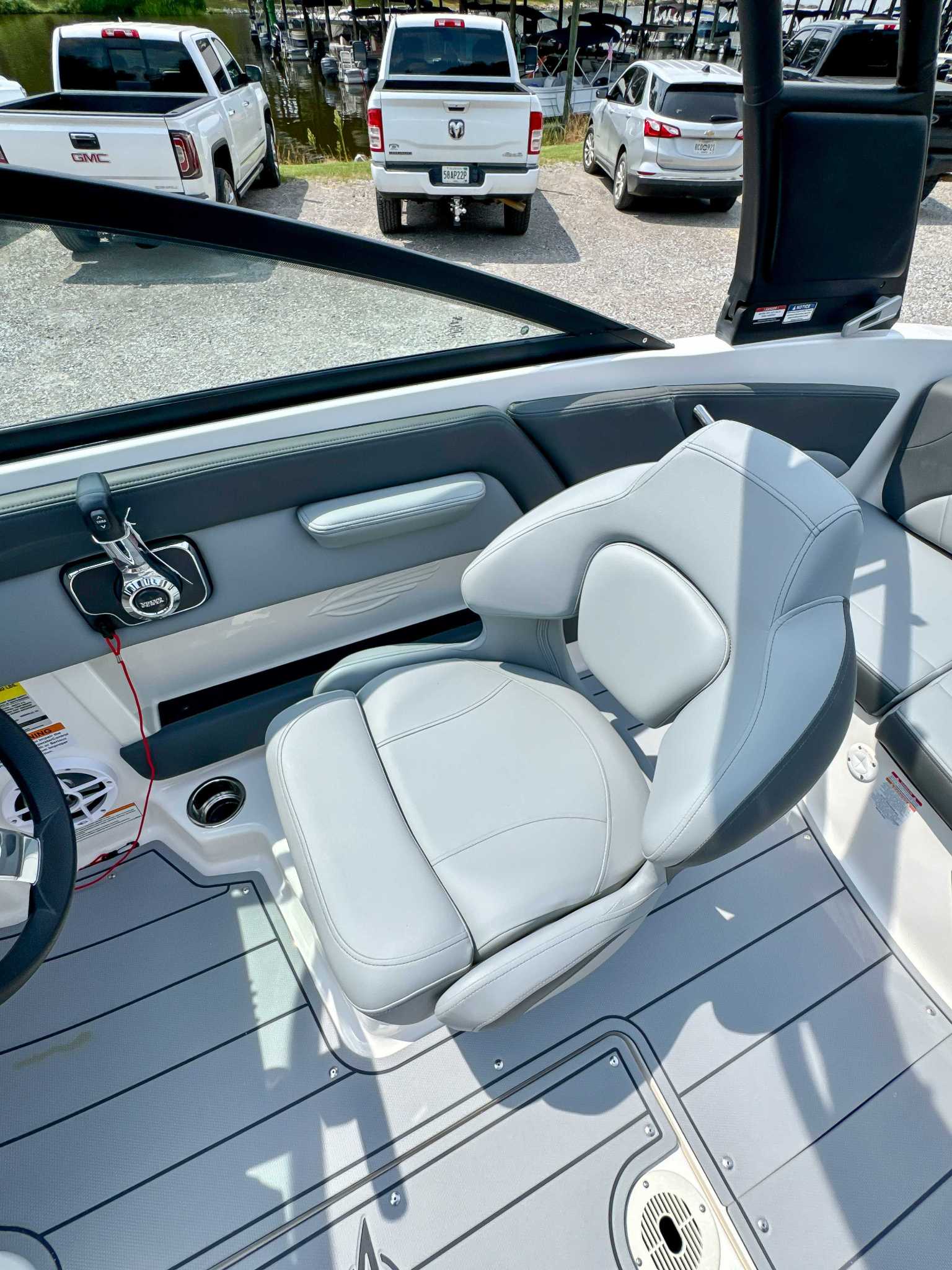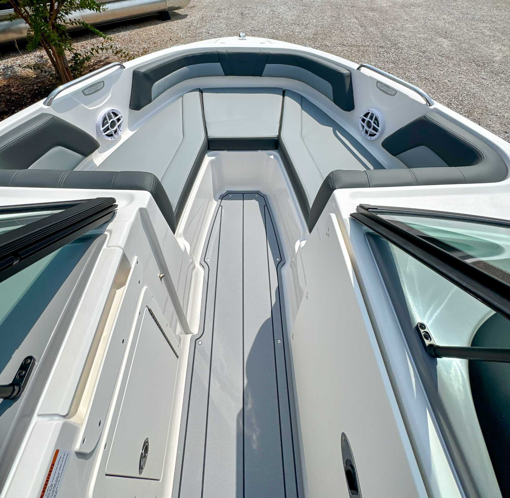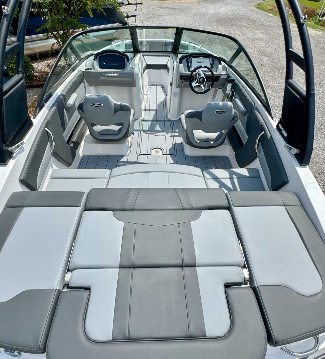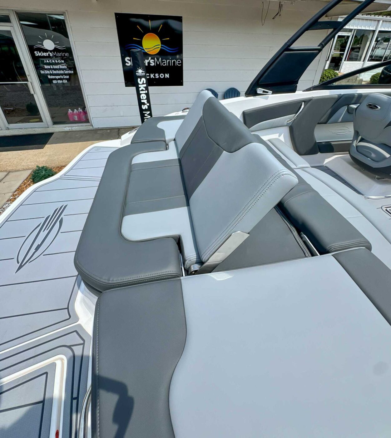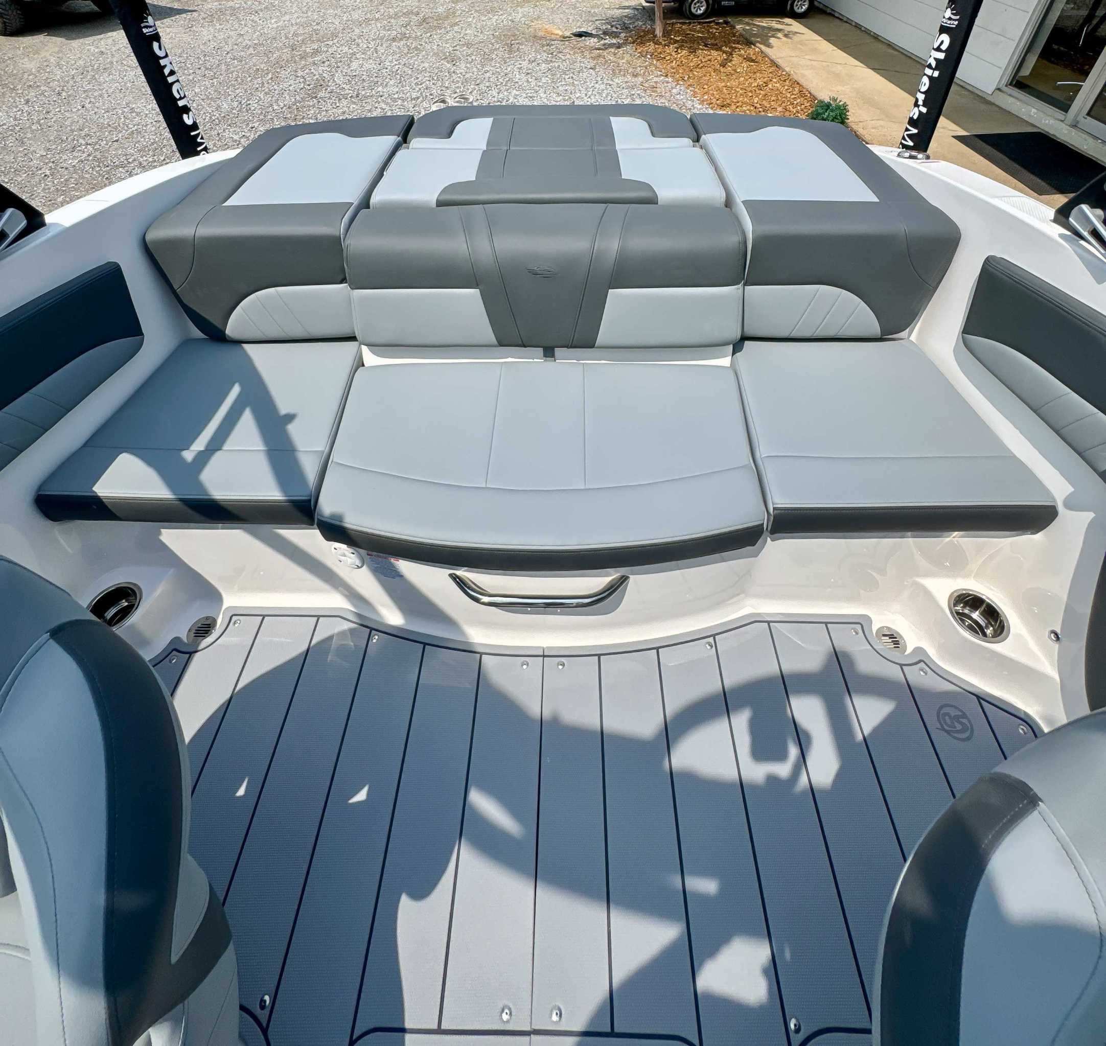Cockpit Layout: Two Bucket Seats (Slide and Swivel) with Logo Badging, Rear Bench Seat and Aft Hinged Sundeck with Walk-Thru, Lounge Position and Aft Facing Seat