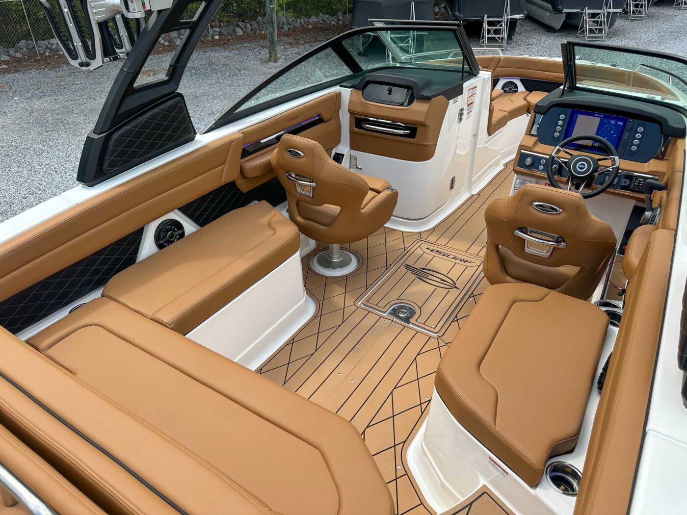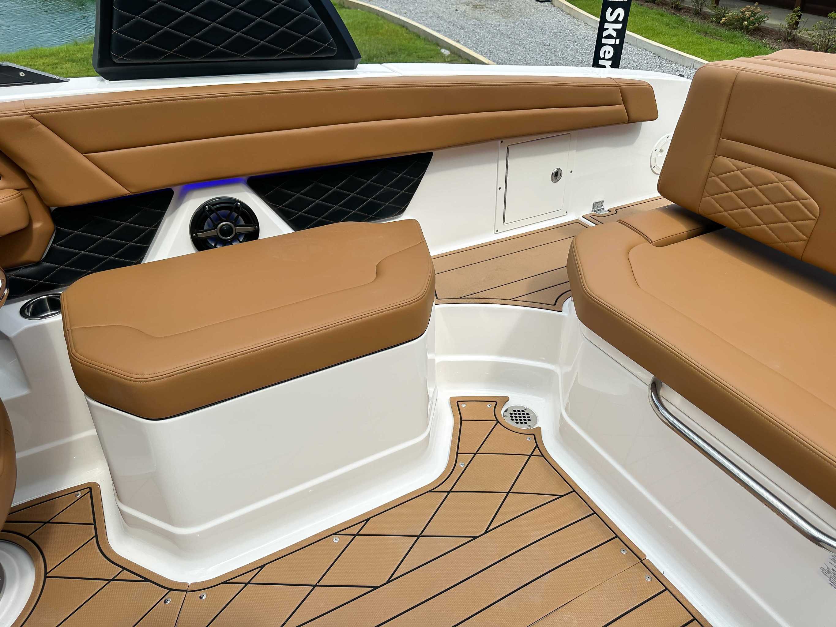 • Storage Under Starboard Helm with Protective Mat and Trash Receptacle