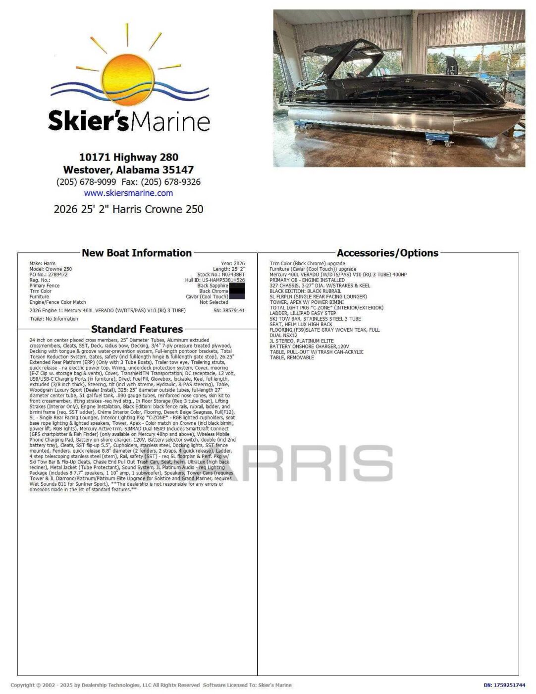 2026 Harris Crowne 250 SL N07438BT