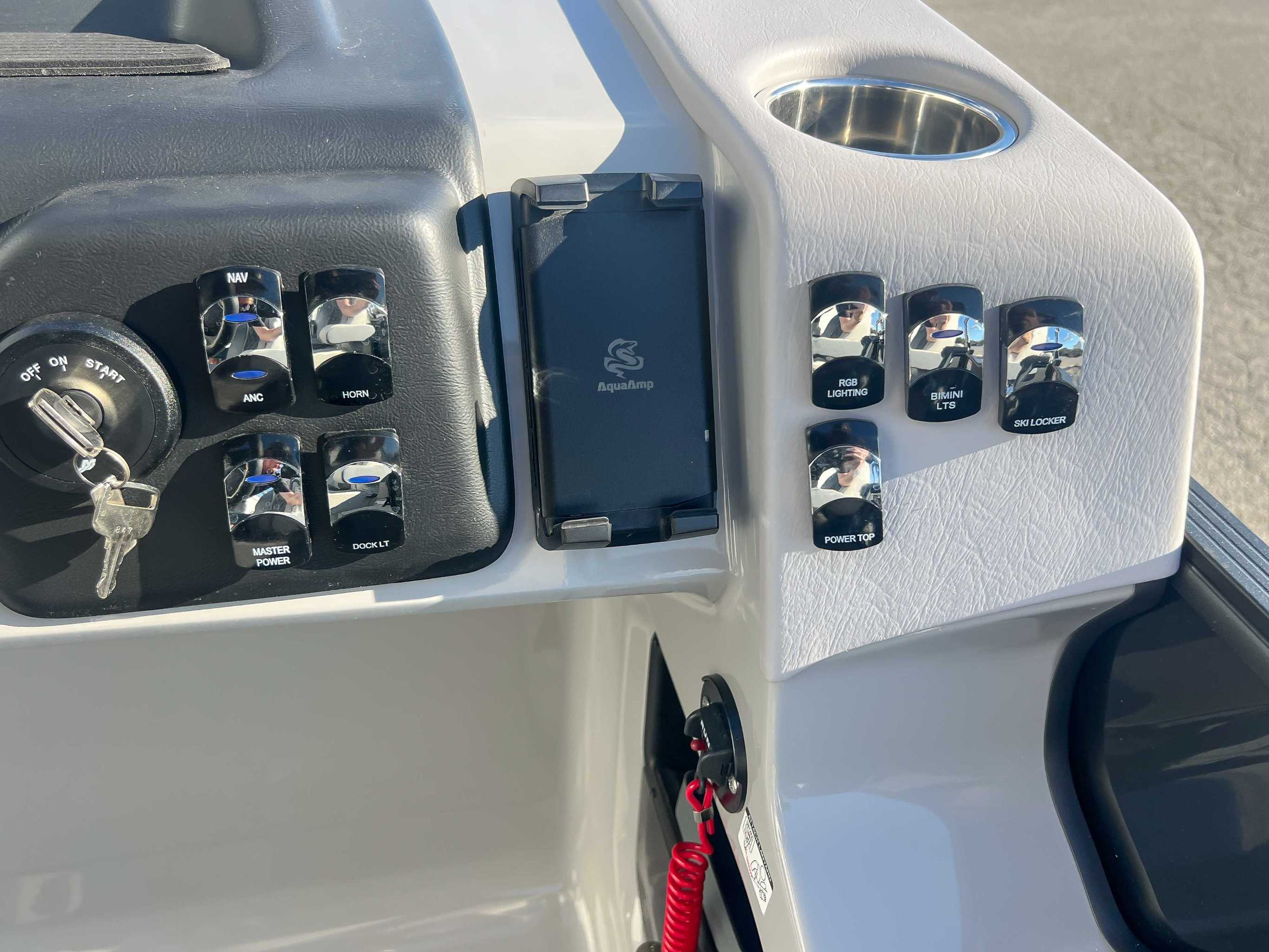 Standard Silver: silver fence rails, rubrail, ladder and bimini frame