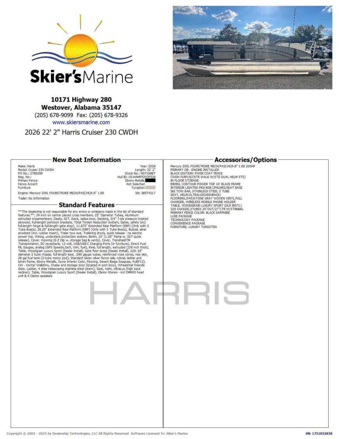 Skier's Marine is an award-winning ski boat, pontoon boat, and runabout sport boat dealer for brands like MasterCraft, Supra, Moomba, Chaparral, Harris, Premier, and Boston Whaler. We are not responsible for any pricing, options, specifications, or other listing errors on our site. Please contact us to confirm all details.