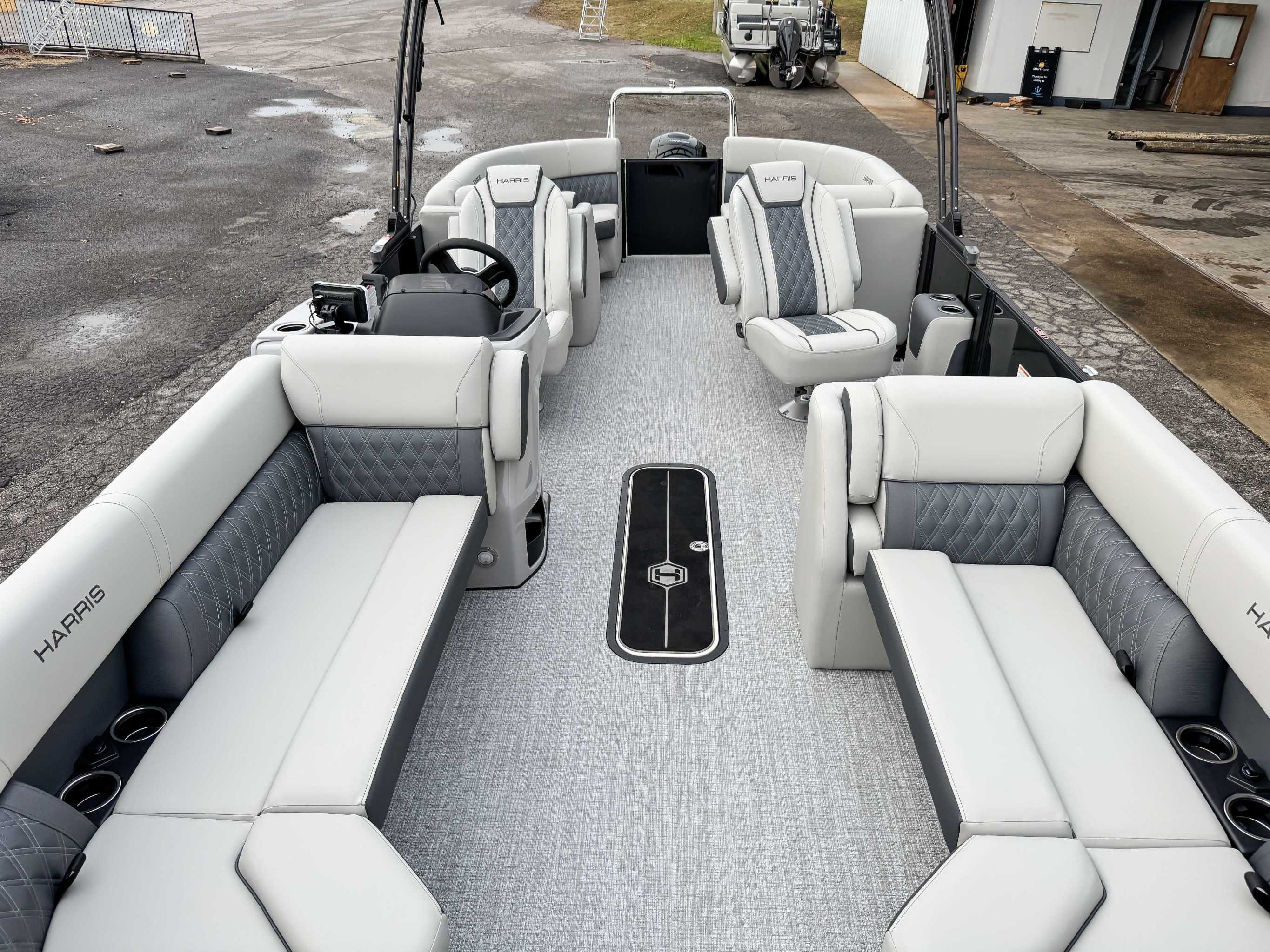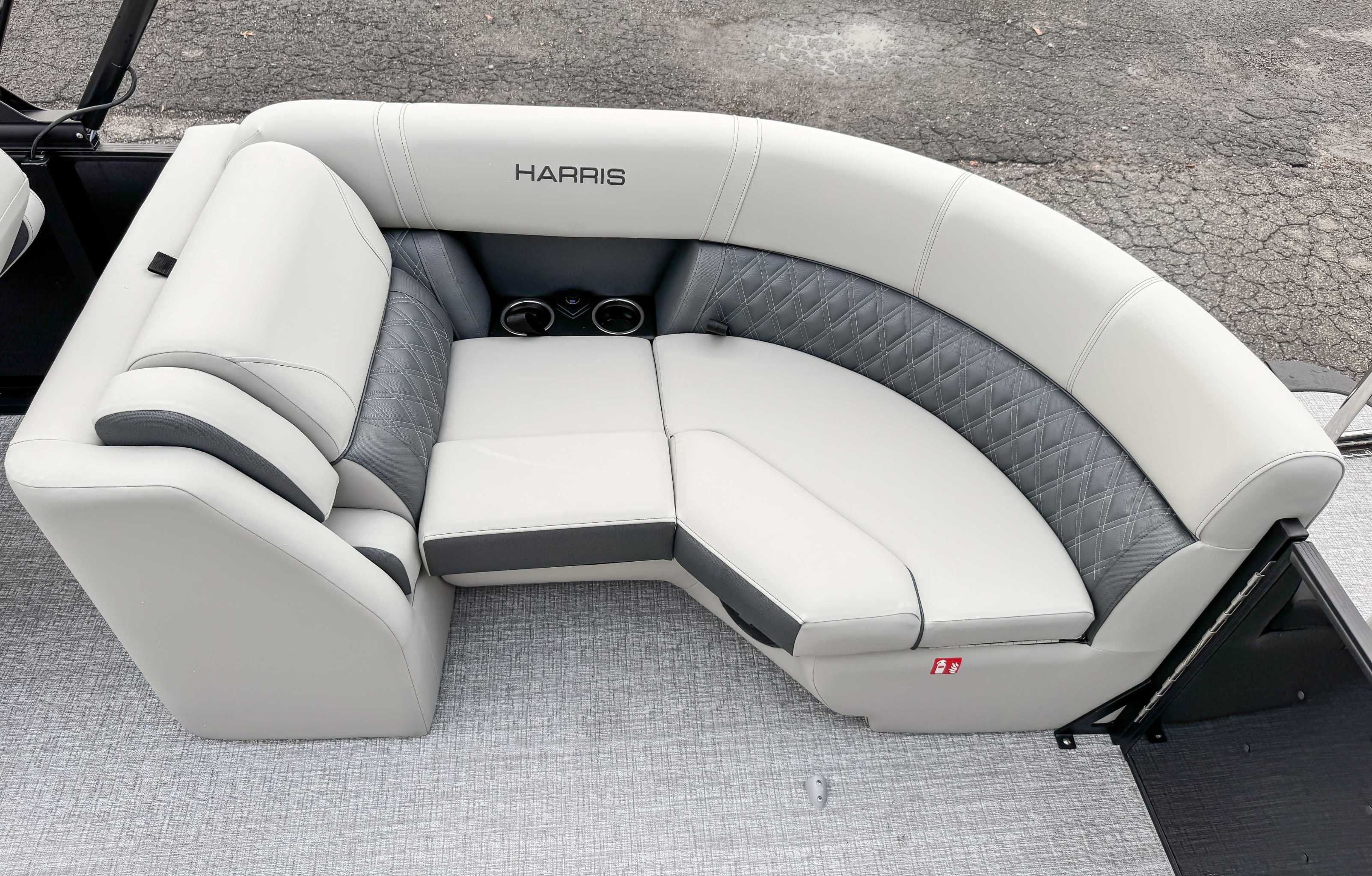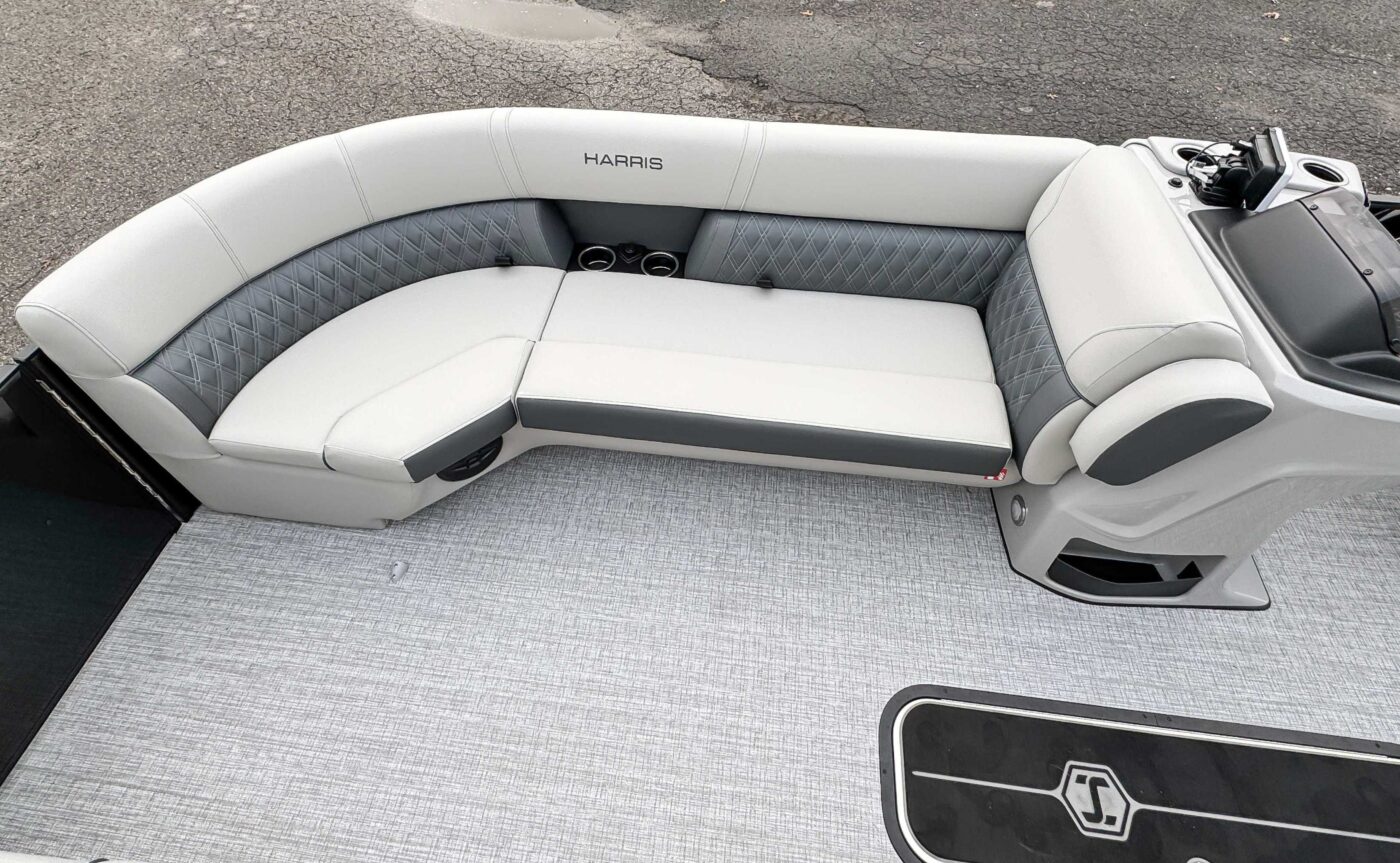The 2026 Harris Cruiser pontoon is ideal for families and adventurers seeking a blend of performance, comfort, and durability. Key features include the signature RPM Technology chassis for a smooth, stable ride and better fuel efficiency, plush soft-touch seating, and versatile layouts like the single rear-facing lounger (SL) or dual helm (DH). Amenities such as a power Bimini top, integrated swim ladder, and available entertainment upgrades (Wetsounds audio, RGB lighting) elevate the experience. With rob