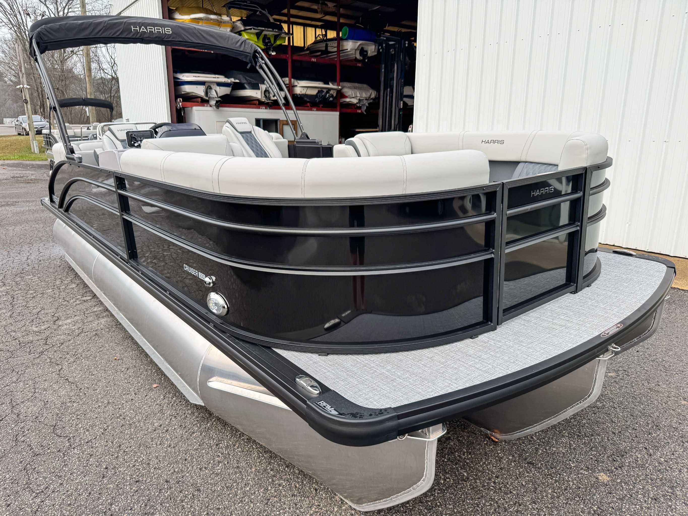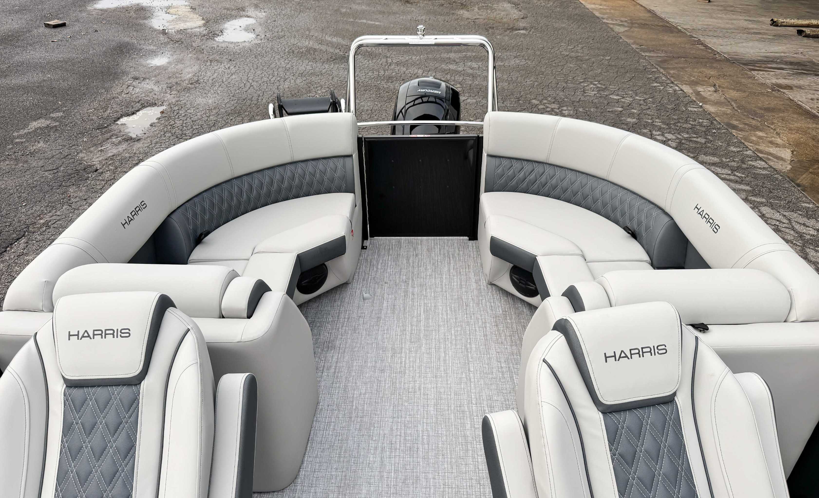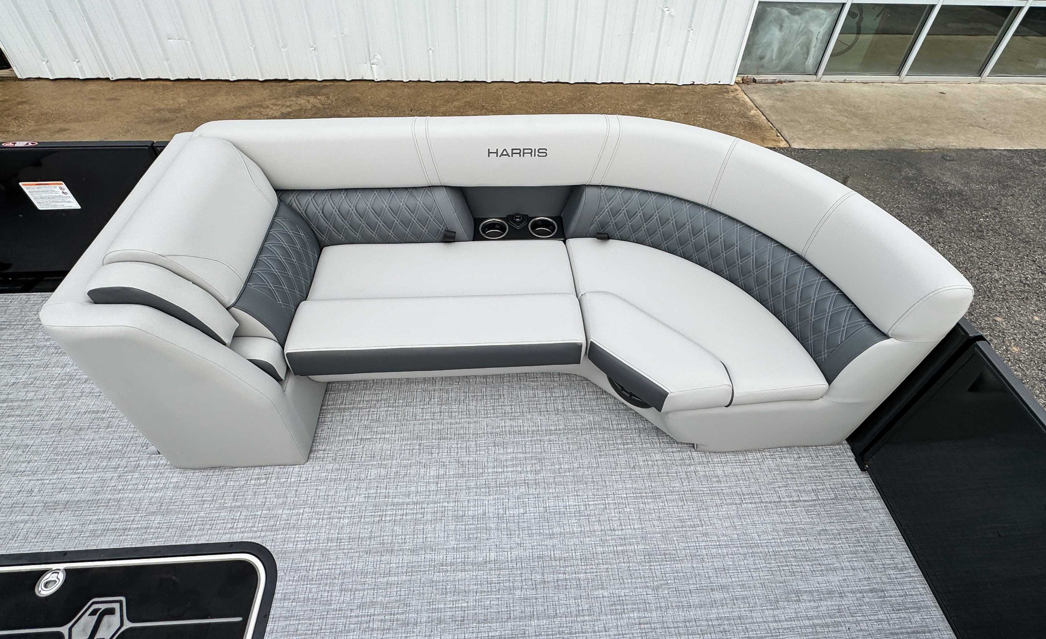 The 2026 Harris Cruiser pontoon is ideal for families and adventurers seeking a blend of performance, comfort, and durability. Key features include the signature RPM Technology chassis for a smooth, stable ride and better fuel efficiency, plush soft-touch seating, and versatile layouts like the single rear-facing lounger (SL) or dual helm (DH). Amenities such as a power Bimini top, integrated swim ladder, and available entertainment upgrades (Wetsounds audio, RGB lighting) elevate the experience. With rob