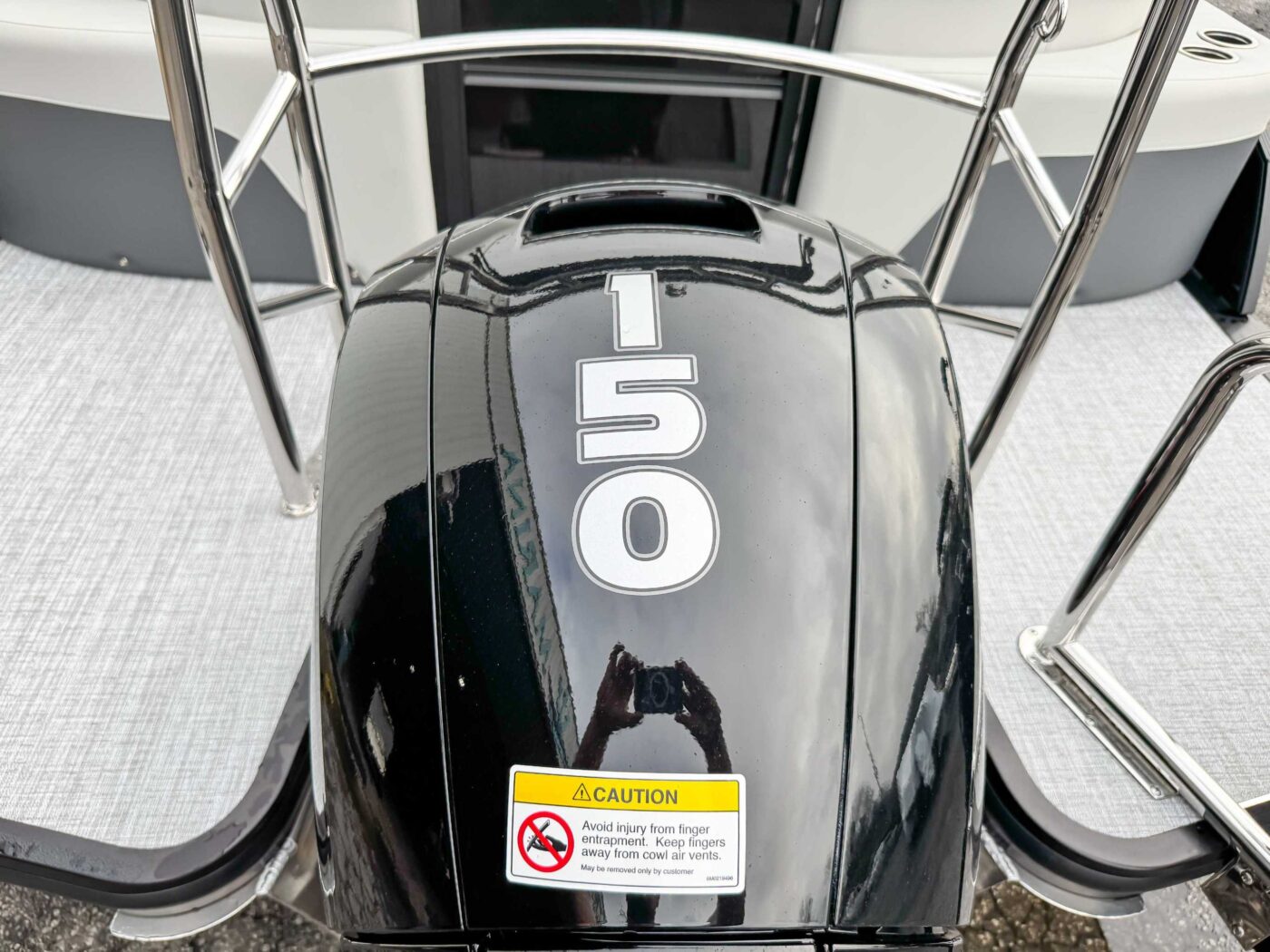 Standard Silver: silver fence rails, rubrail, ladder and bimini frame