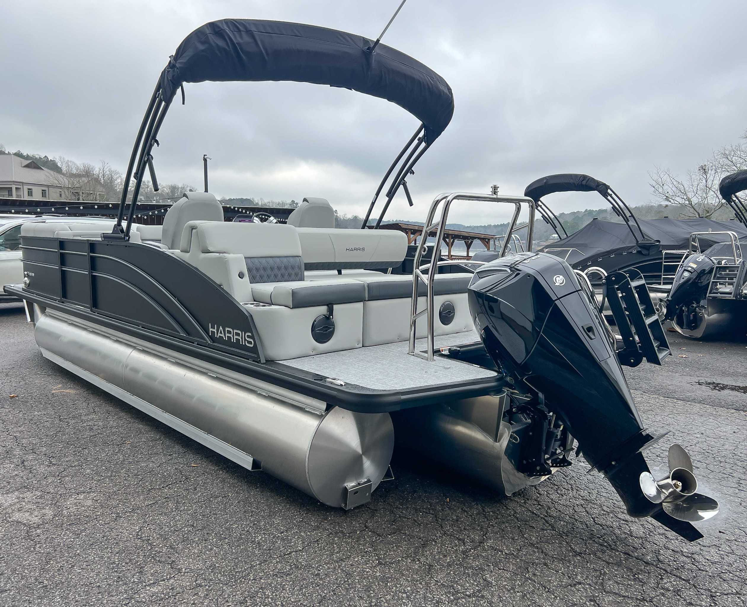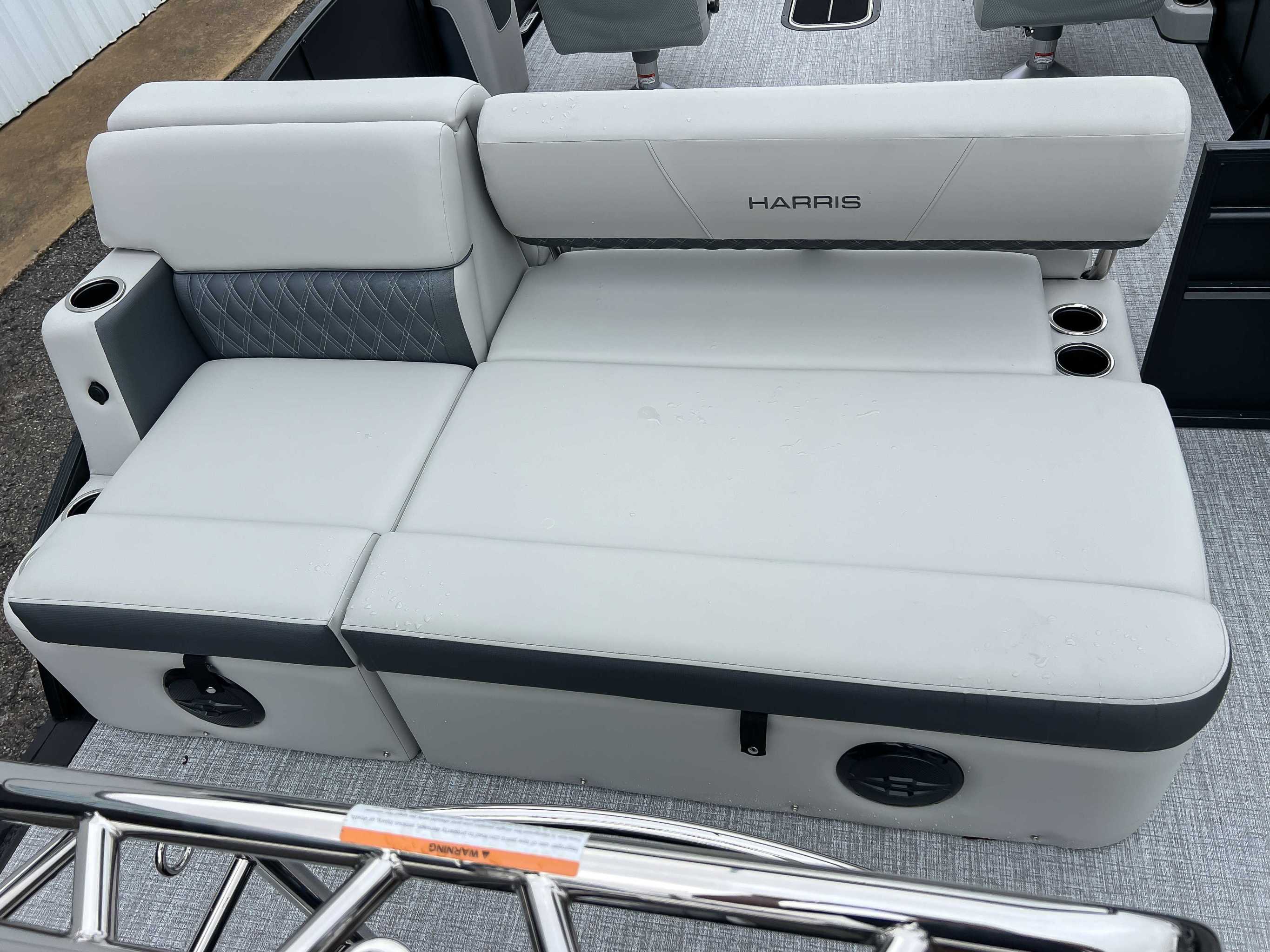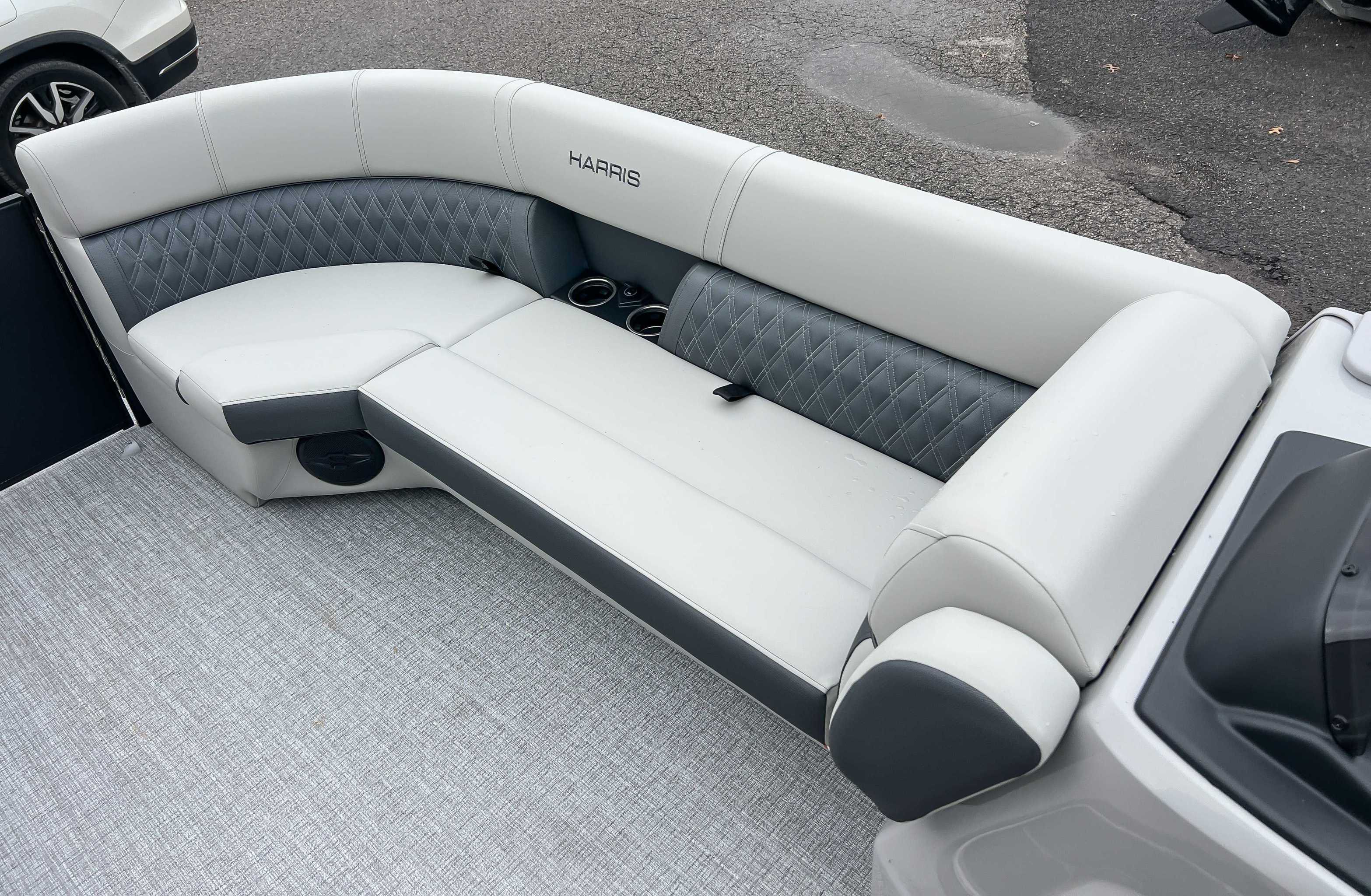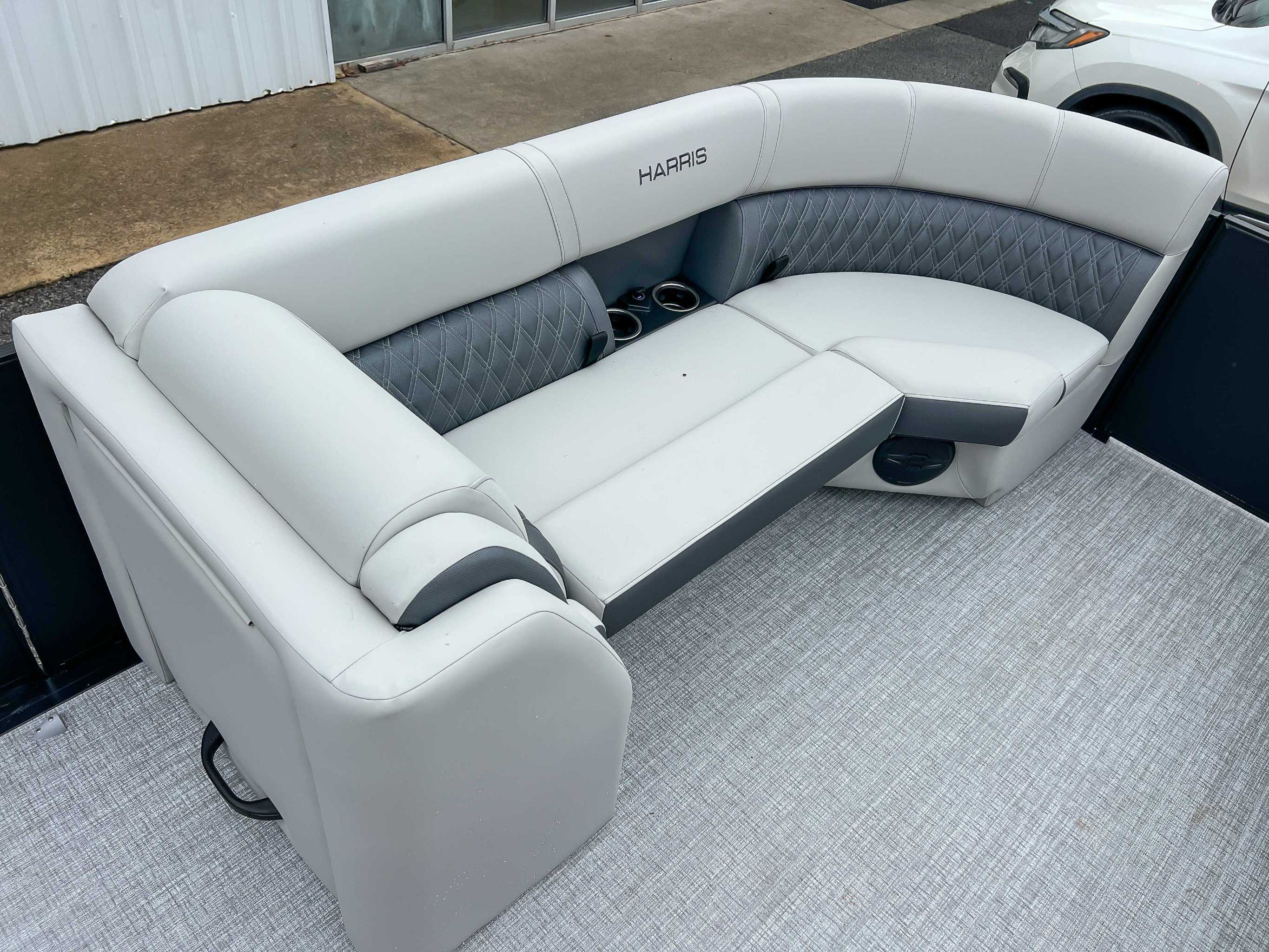 The 2026 Harris Cruiser pontoon is ideal for families and adventurers seeking a blend of performance, comfort, and durability. Key features include the signature RPM Technology chassis for a smooth, stable ride and better fuel efficiency, plush soft-touch seating, and versatile layouts like the single rear-facing lounger (SL) or dual helm (DH). Amenities such as a power Bimini top, integrated swim ladder, and available entertainment upgrades (Wetsounds audio, RGB lighting) elevate the experience. With rob