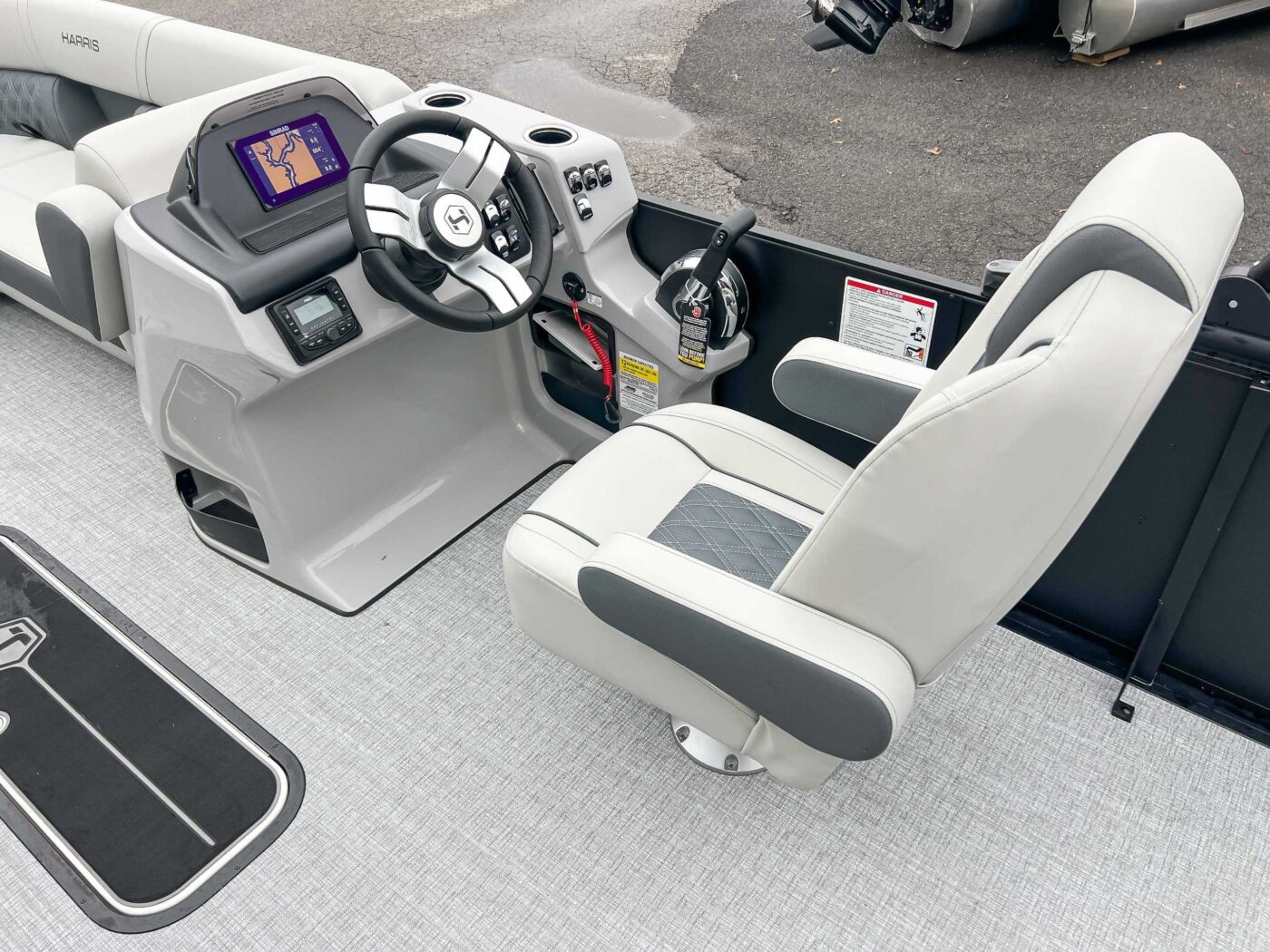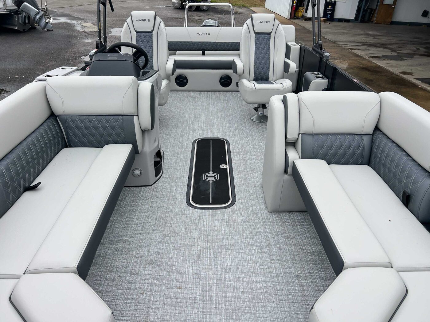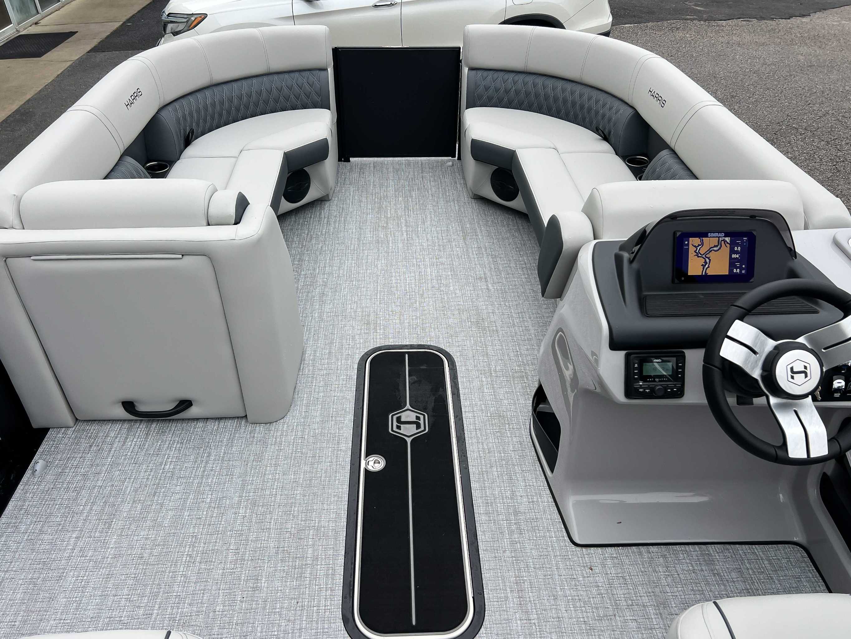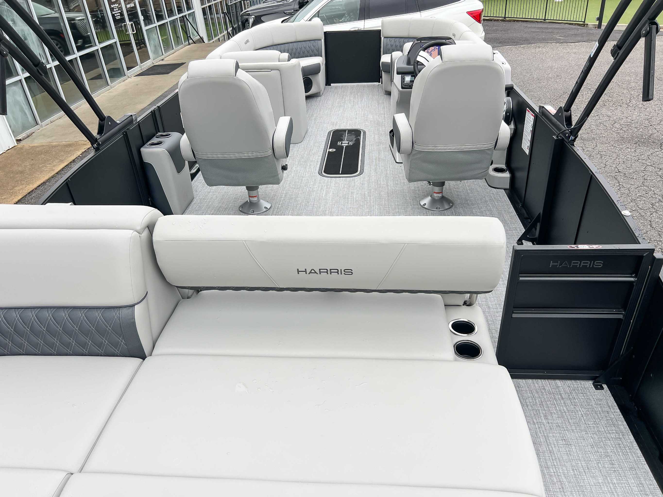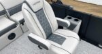 The 2026 Harris Cruiser pontoon is ideal for families and adventurers seeking a blend of performance, comfort, and durability. Key features include the signature RPM Technology chassis for a smooth, stable ride and better fuel efficiency, plush soft-touch seating, and versatile layouts like the single rear-facing lounger (SL) or dual helm (DH). Amenities such as a power Bimini top, integrated swim ladder, and available entertainment upgrades (Wetsounds audio, RGB lighting) elevate the experience. With rob