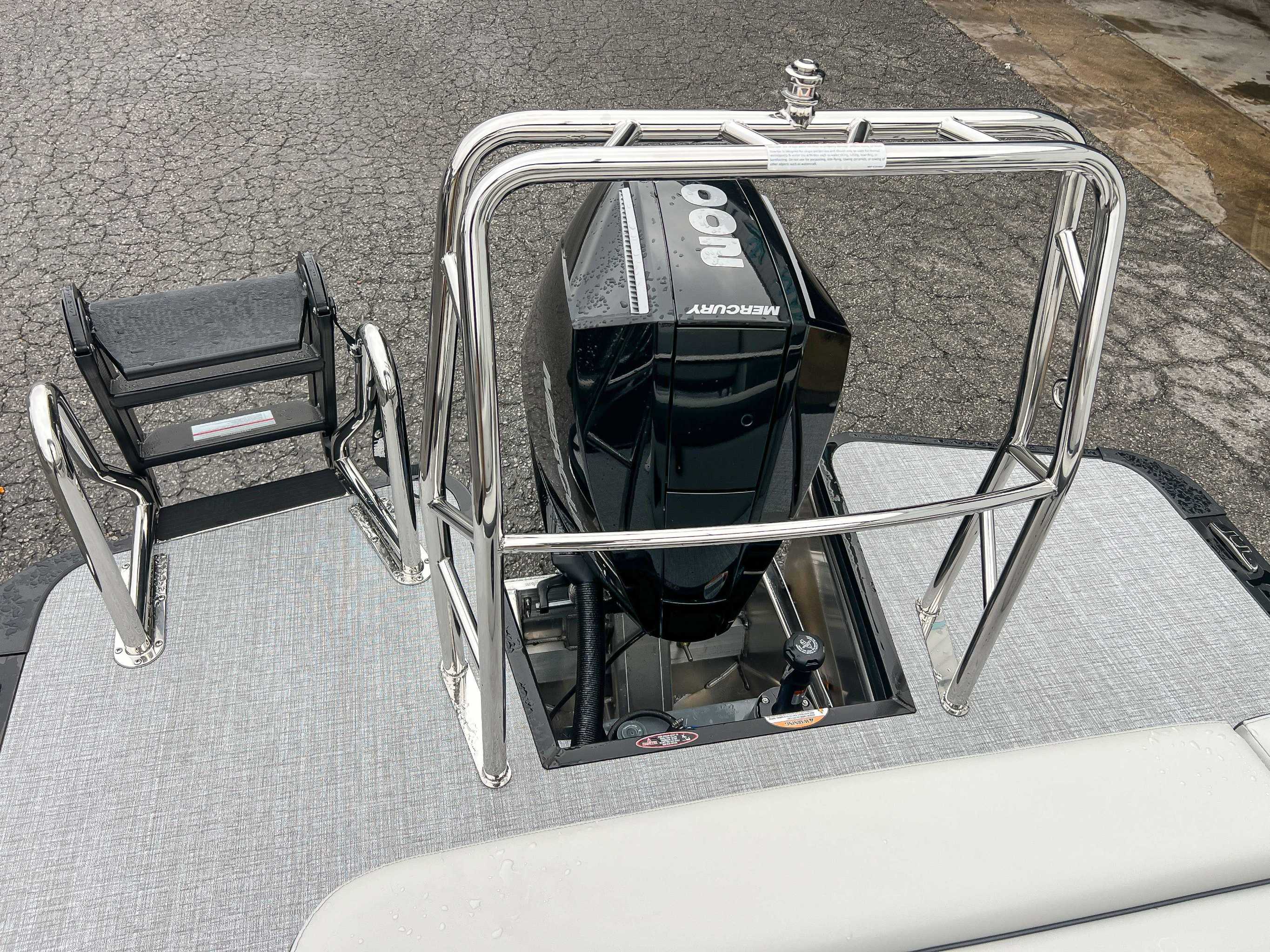 Standard Silver: silver fence rails, rubrail, ladder and bimini frame